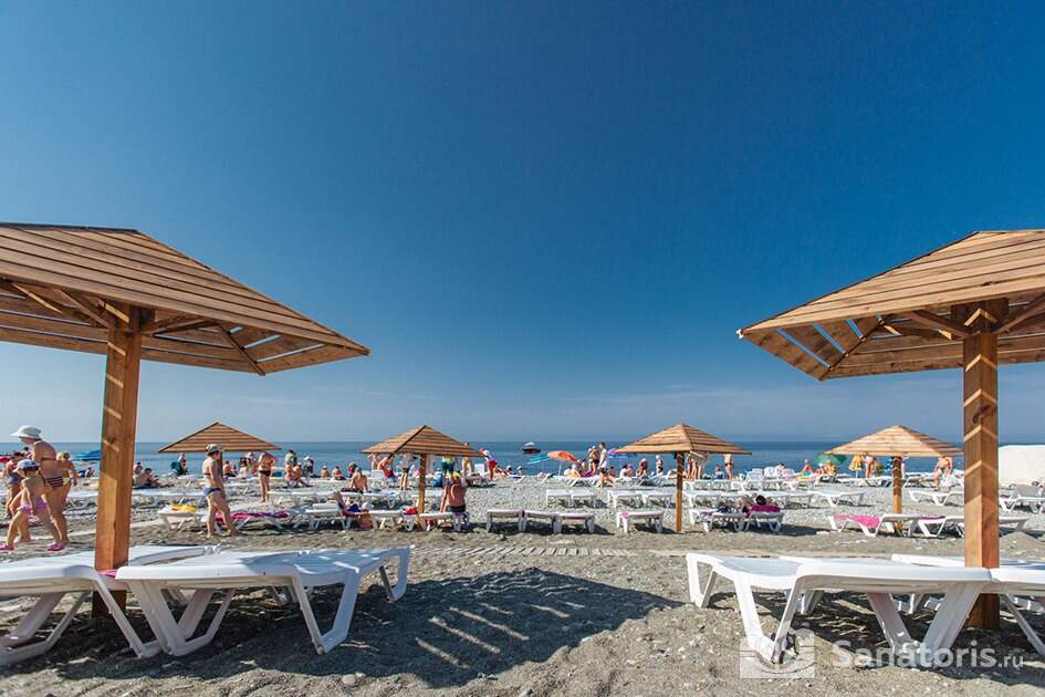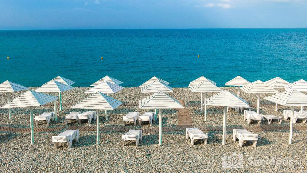 Чистый пляж расположен в 200 метрах от гостиничного комплекса. Здесь есть современные кабинки для переодевания, шезлонги, пляжные навесы.
