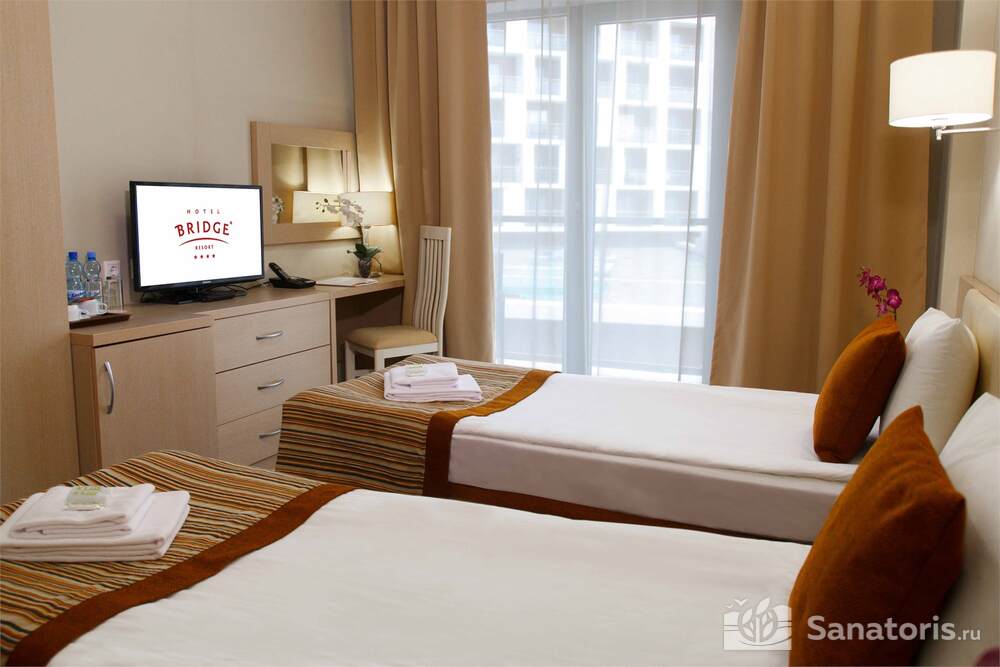 Гостиничный комплекс «Bridge Family» представляет собою восьмиэтажное здание с бесшумными лифтами. Гости проживают в комфортабельных апартаментах на два и четыре спальных места. Все комнаты выполнены в классическом стиле. Интерьер максимально лаконичный, цвета мягкие и светлые. В каждом номере есть отдельный туалет, душевая кабинка, сплит-система, бытовая техника и другие удобства.