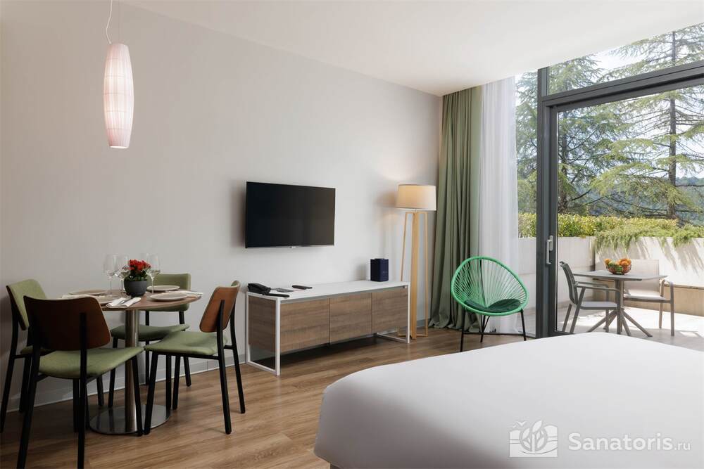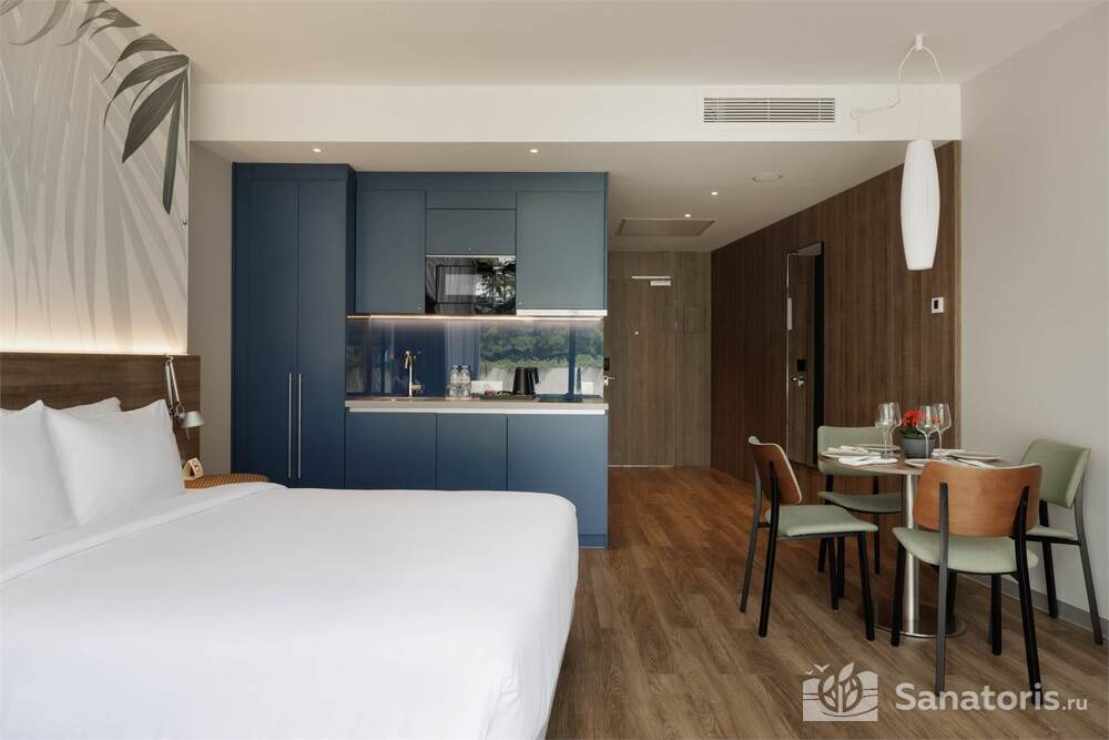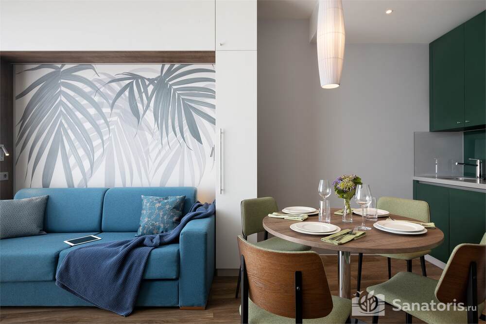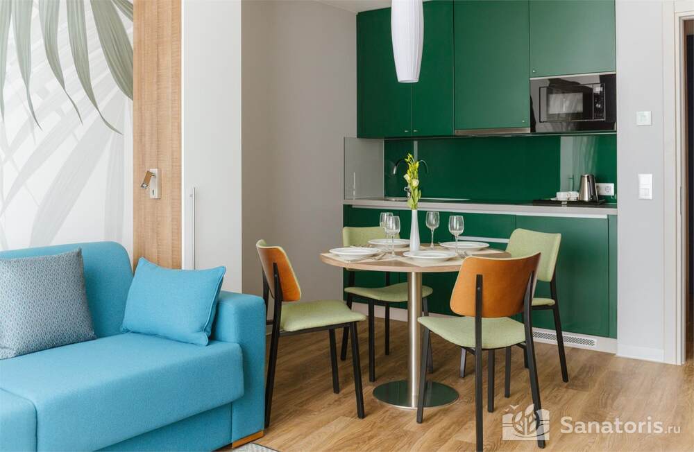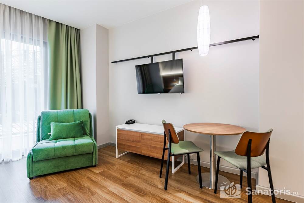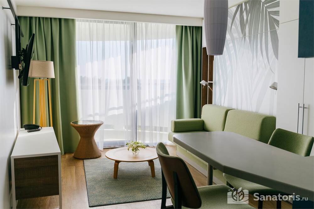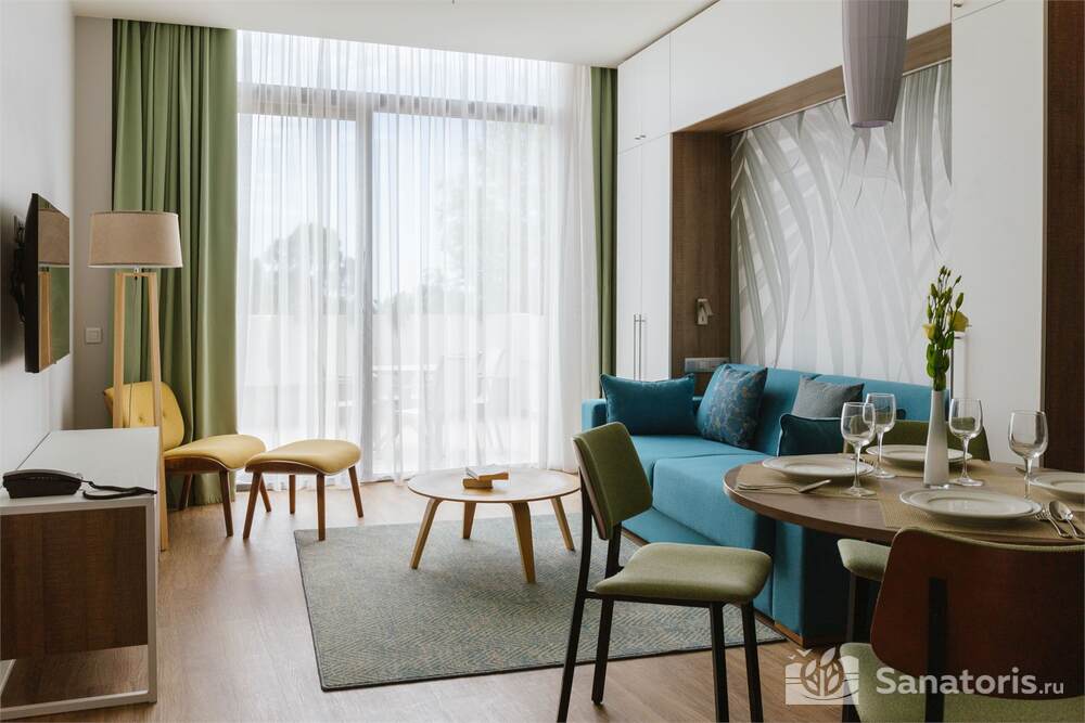 Оздоровительный комплекс полностью отвечает европейским стандартам гостиничного обслуживания. Дизайном интерьера занималась компания «Sundukovy Sisters».
