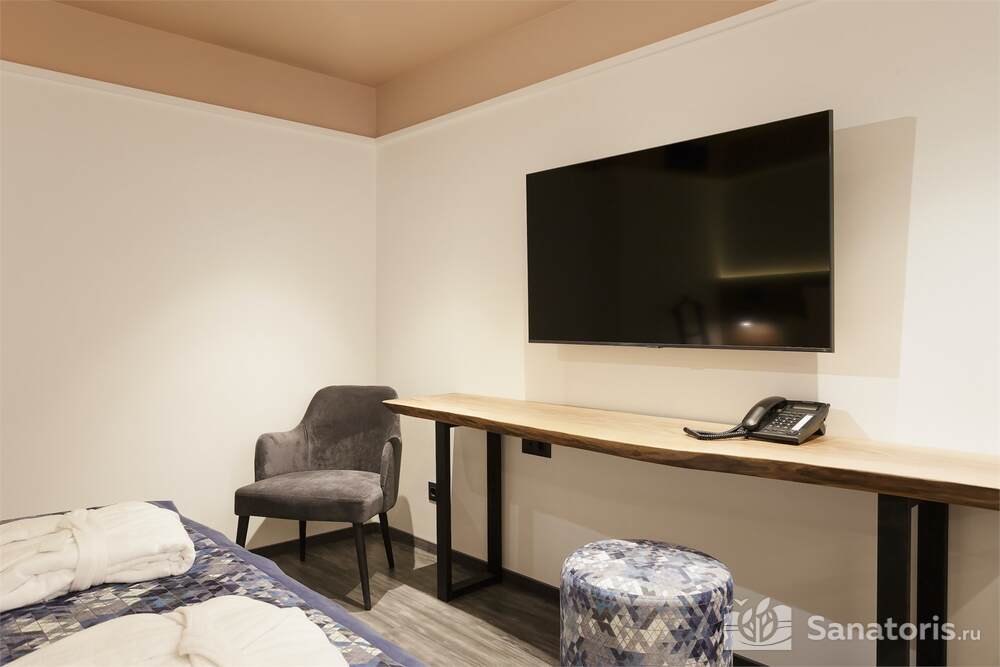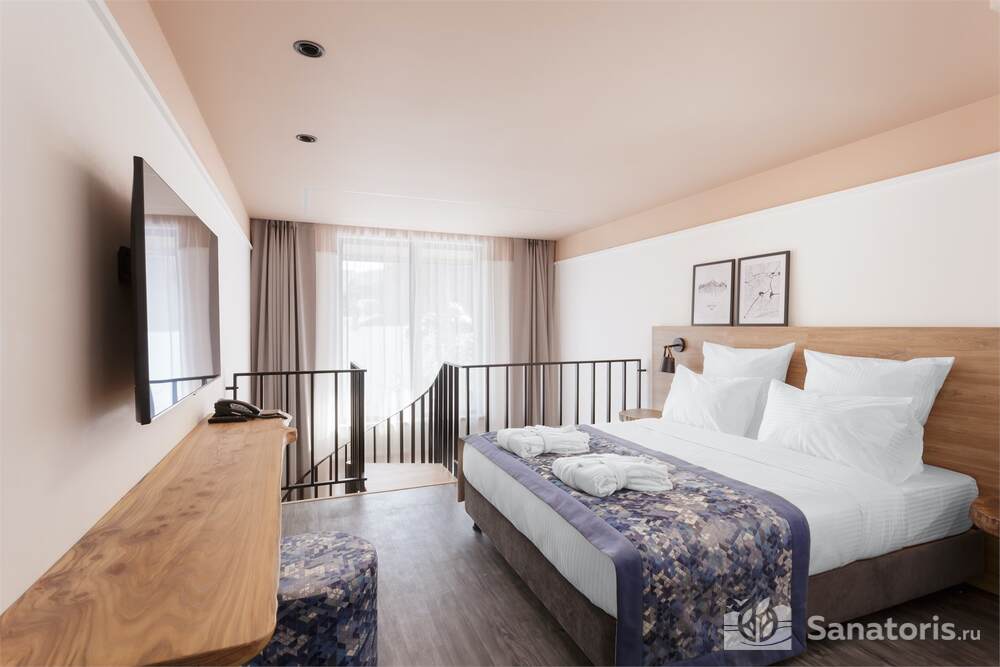 В отеле можно забронировать уютные двухместные номера. Первый этаж благоустроен балконами и зонами отдыха. На втором этаже находится хаммам, сауна, открытый круглогодичный бассейн с подогревом, тренажерный зал. В здании для удобства установлен лифт.