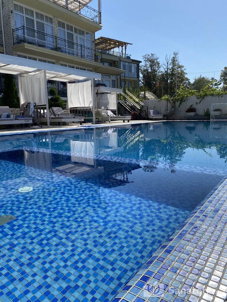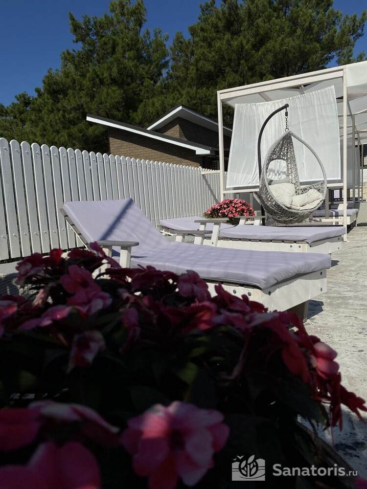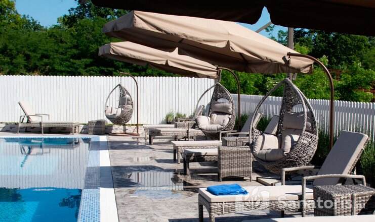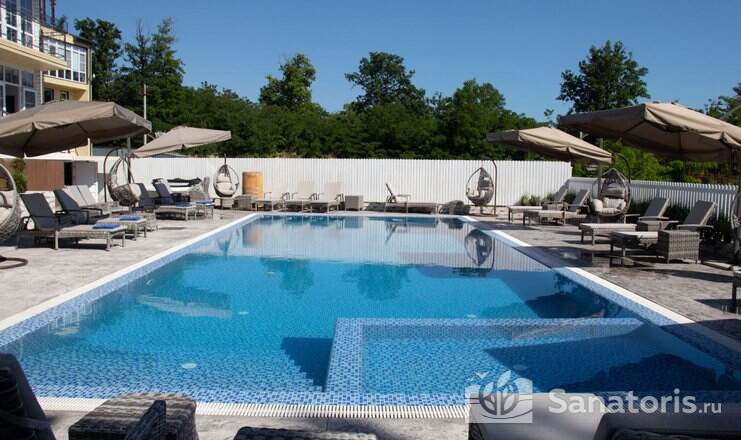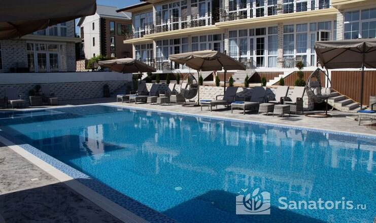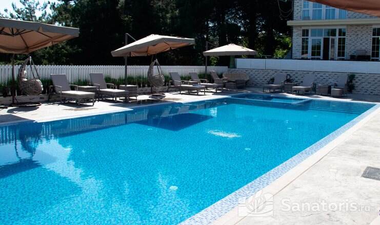В гостинице есть кафе, финская сауна, просторный бассейн с выделенной зоной для детей. Возле бассейна есть зона отдыха. Здесь установлены плетеные кресла, лежаки, столики, подвесные качели. Гости отеля могут насладиться прохладительными напитками, понежиться под мягкими солнечными лучами.