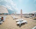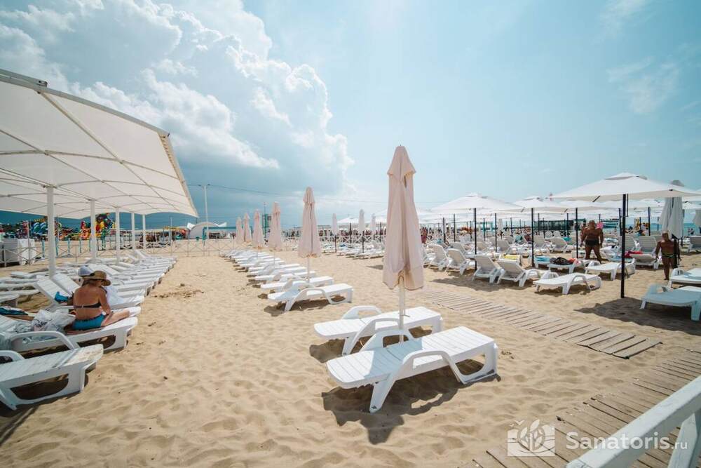 Оздоровительный комплекс располагает собственной пляжной зоной. Расстояние до пляжа составляет 250 метров. Здесь есть раздевалки, туалеты, шезлонги, навесы. Так же работает бар с прохладительными напитками.