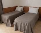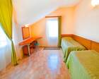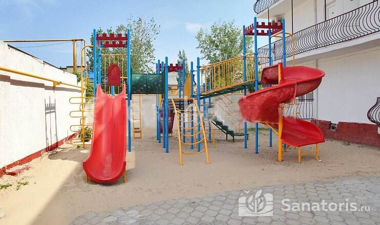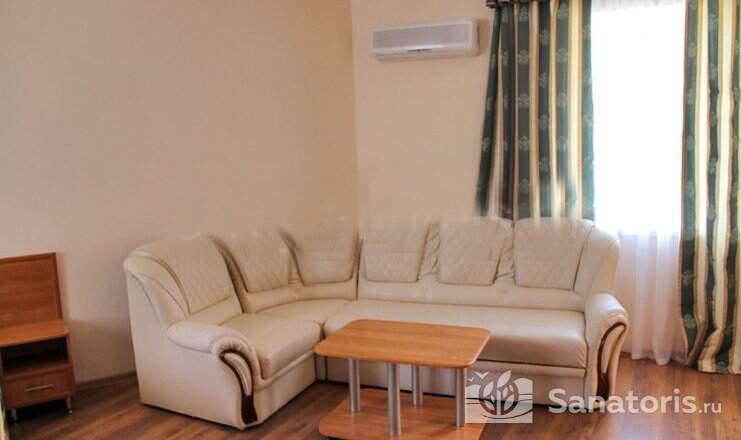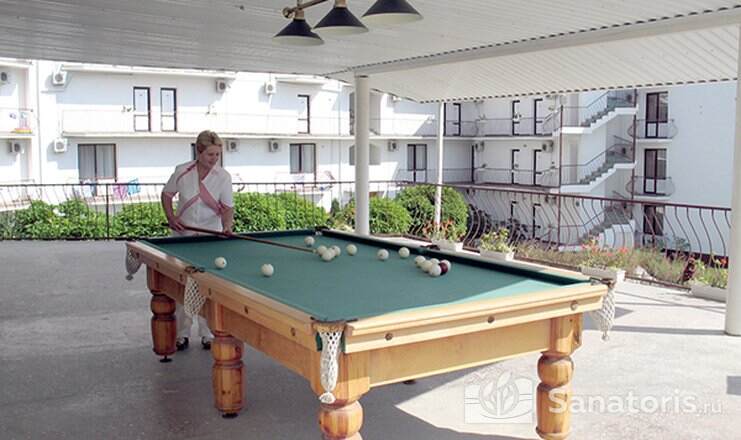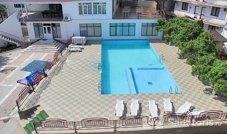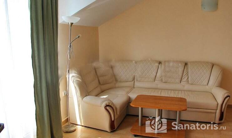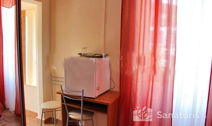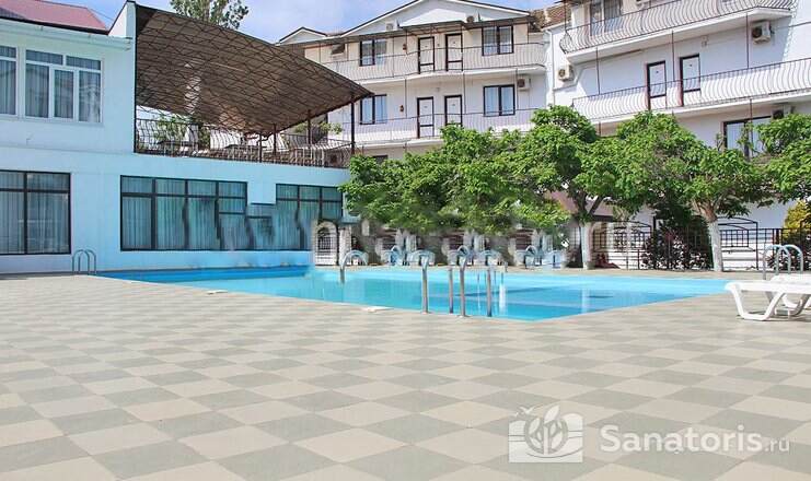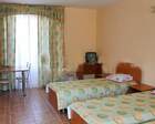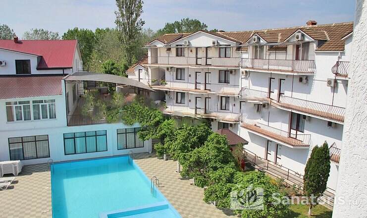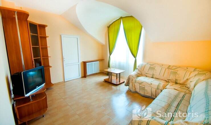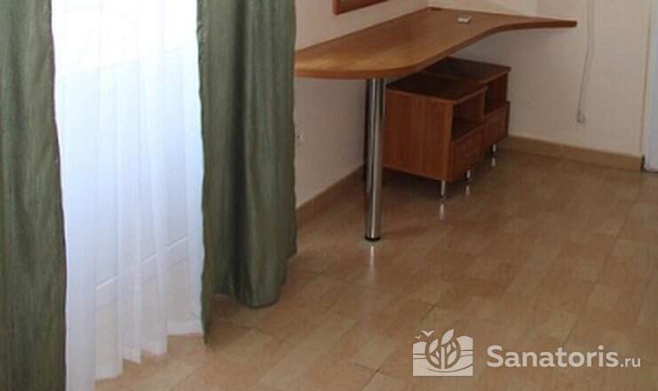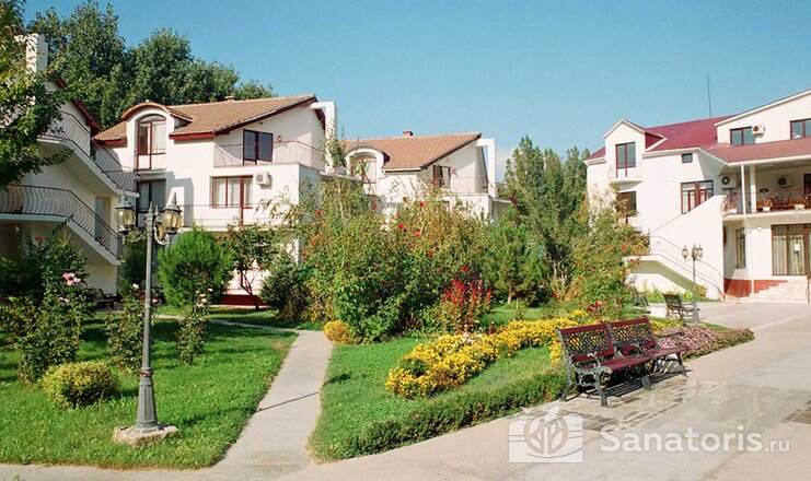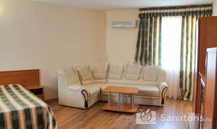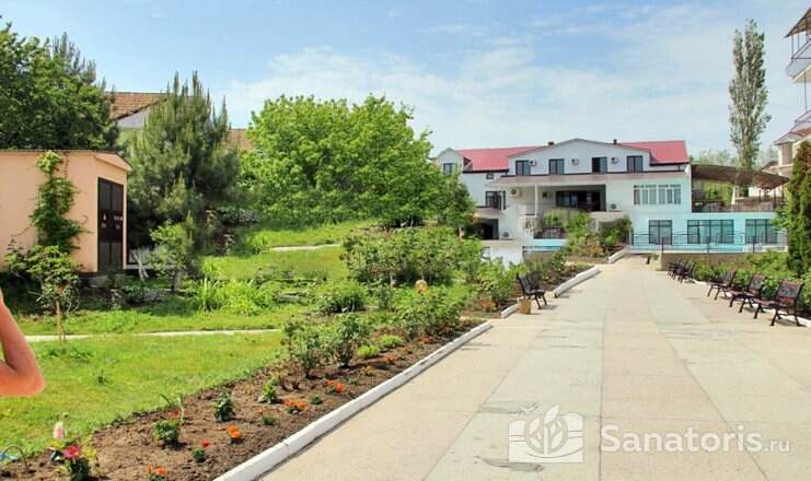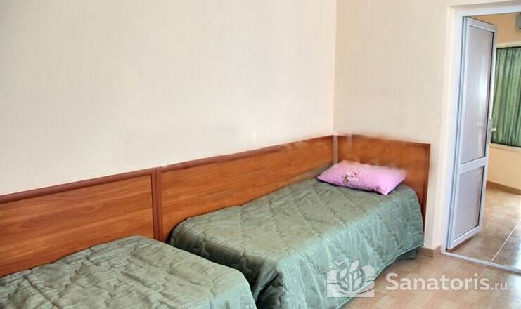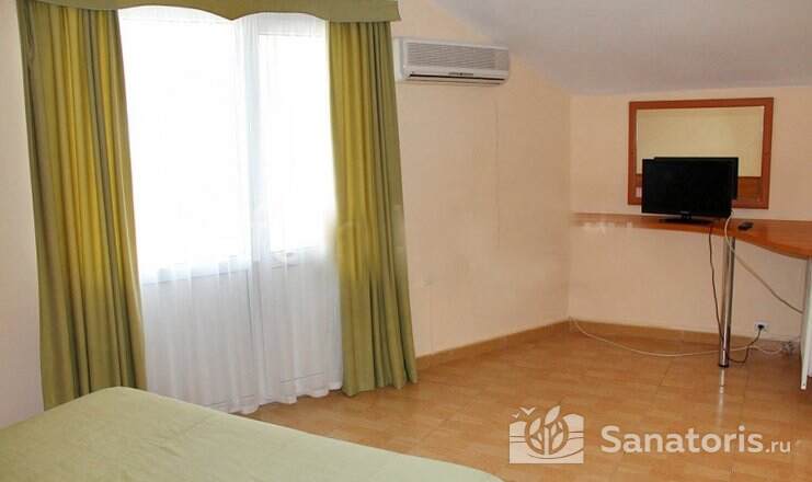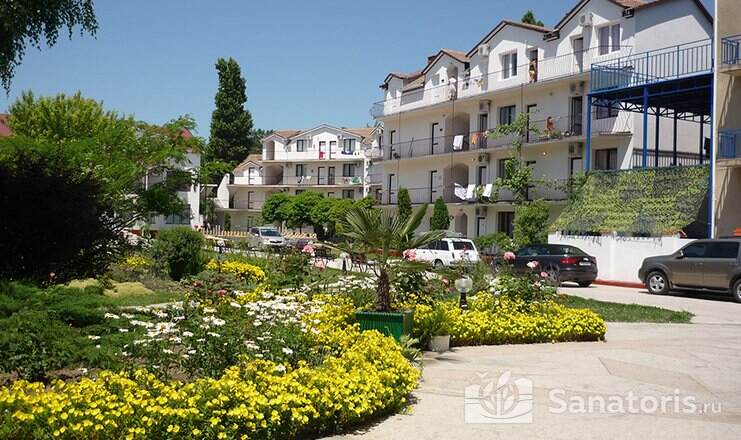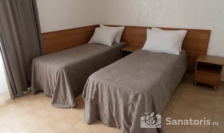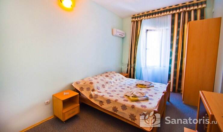 На территории пансионата находятся белоснежные здания в 3 и 4 этажа, окруженные живописными цветниками. Жилой фонд одновременно может принять до 300 гостей, на выбор которым предоставляются 2 и 3 местные номера в классическом стиле. Каждый из них укомплектован собственной ванной комнатой, а также современной техникой, включая ТВ, холодильник и фен. Большие окна в комнатах гарантируют обилие естественного света и открывают захватывающие виды на окружающие пейзажи.
