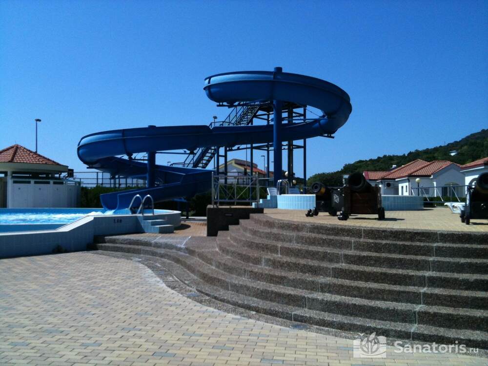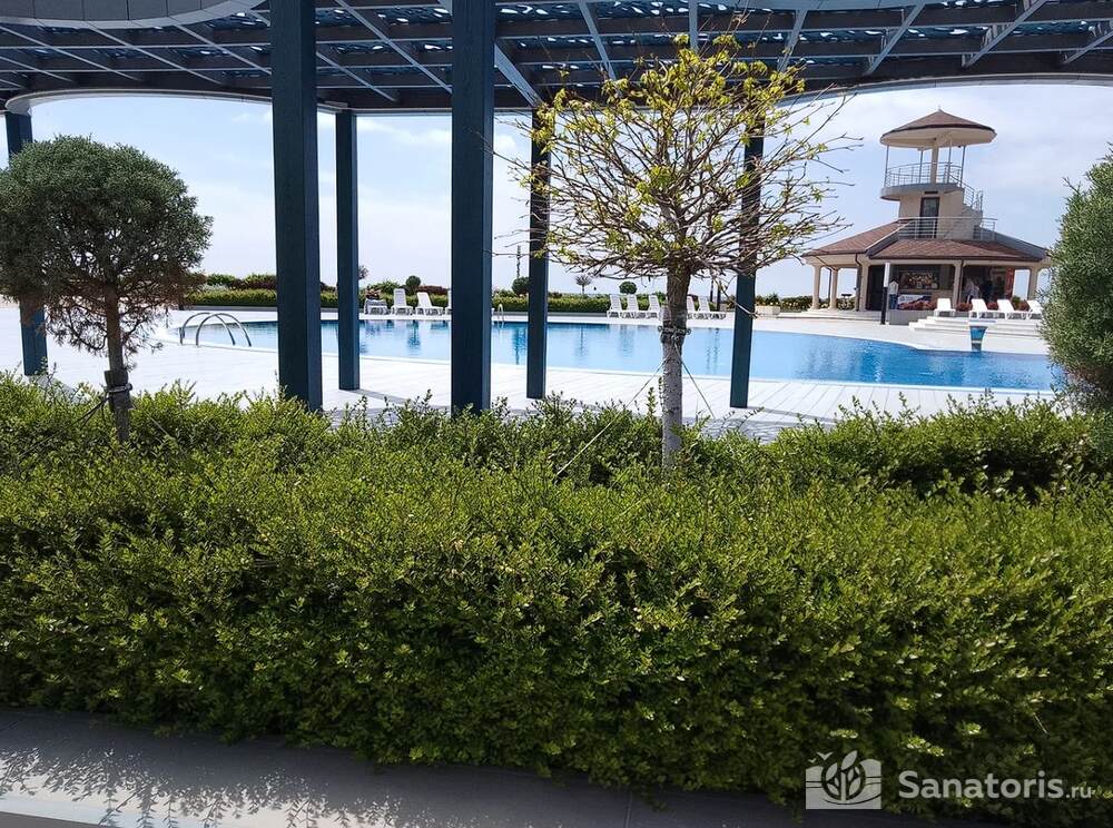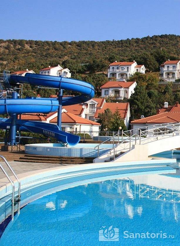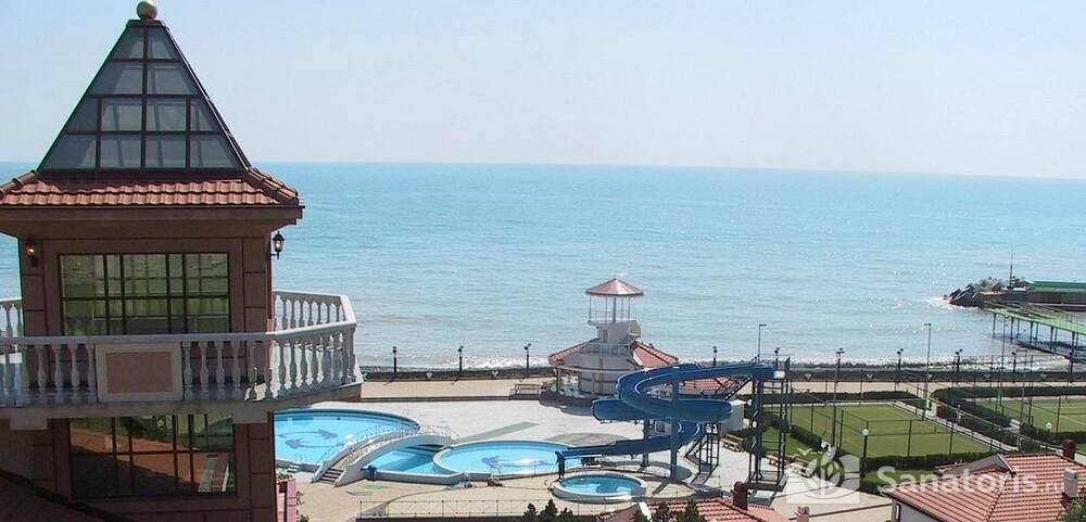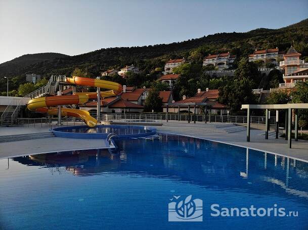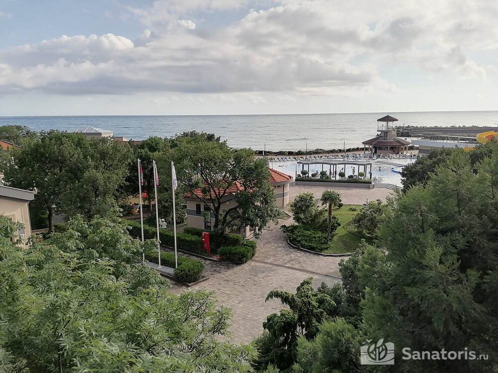 Санаторный комплекс занимает более 15 гектаров и включает в себя три современных спальных корпуса, инновационный медицинский центр, спортивный комплекс, 2 бассейна, наполненных морской водой (открытый и крытый), рестораны и кафе. Территория охраняется. Жилой фонд представлен огромным количеством номеров разной категории комфортабельности, есть также коттеджи, расположенные в сосновом бору. Каждый номер оборудован современной мебелью, кондиционерами, телевизорами, мини-баром и бесплатным Wi-Fi.
