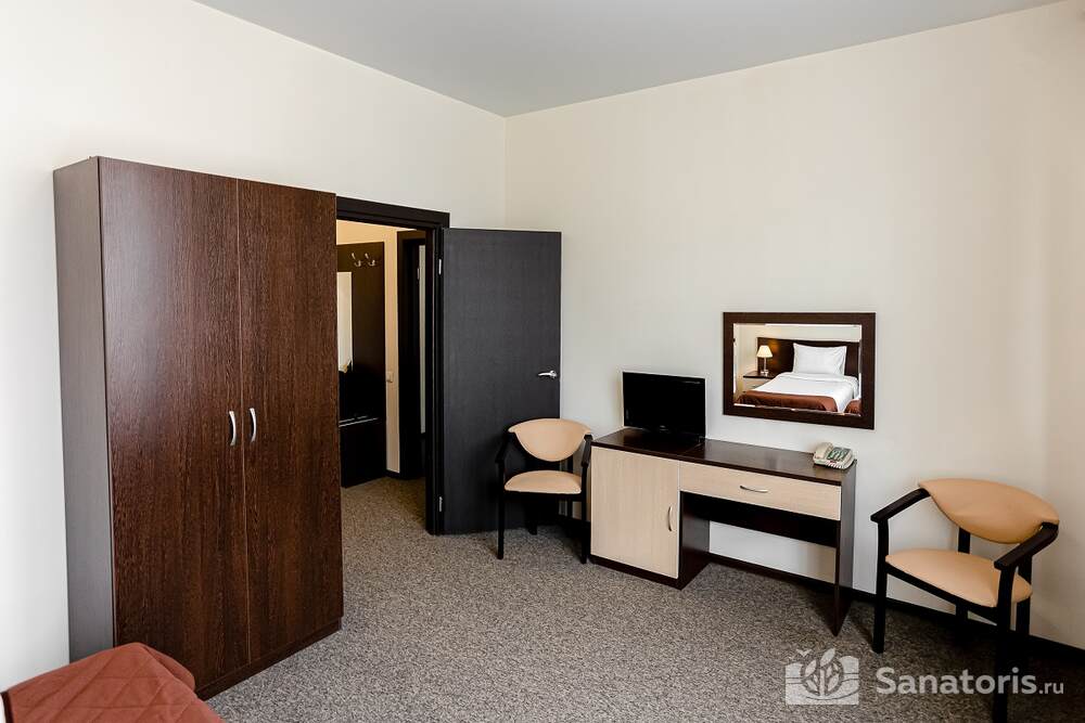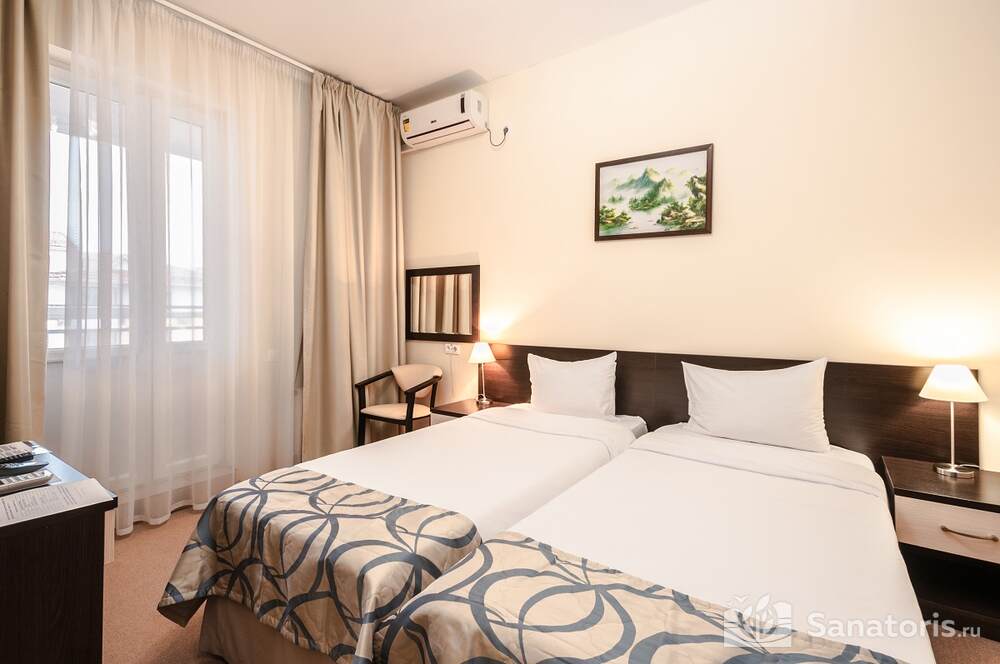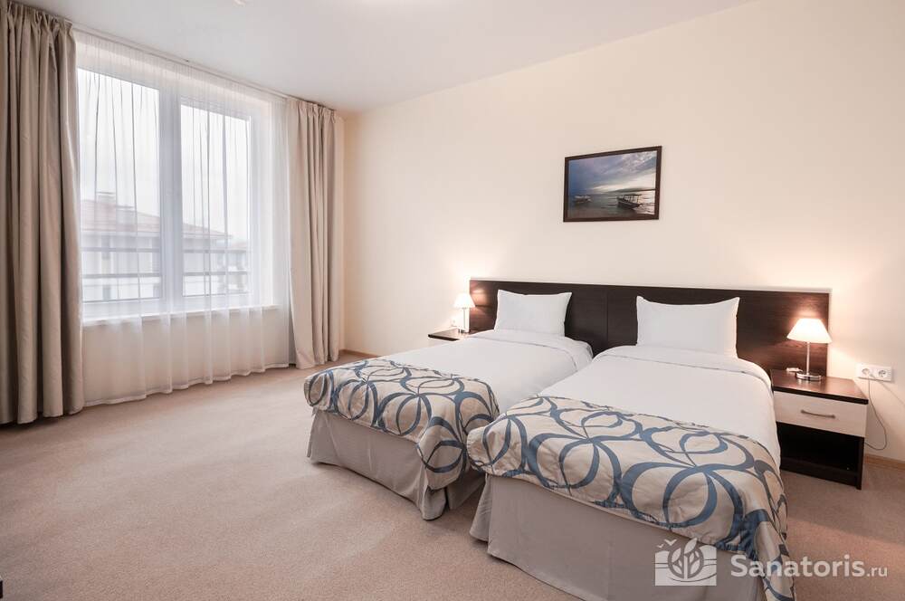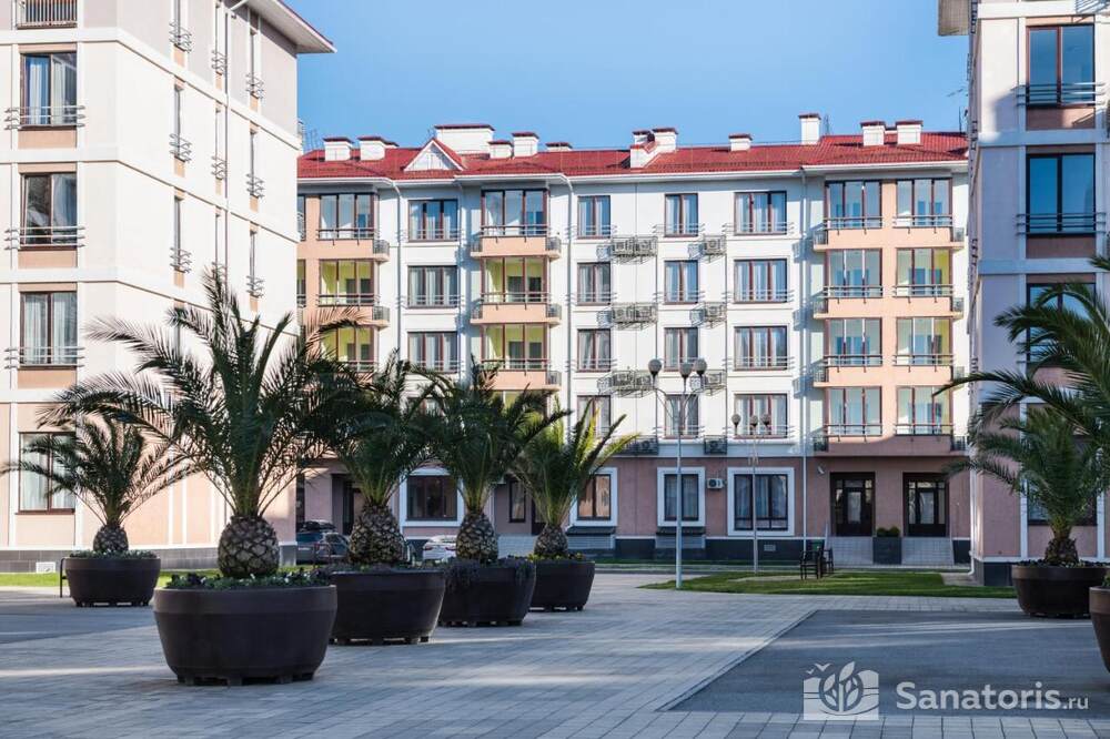 На большой территории курорта предусмотрено 11 жилых корпусов. Каждый из них имеет пять этажей. Во всех сооружениях работает лифт. Всего около 1000 номеров разной вместительности и уровня комфортабельности. В каждом номере есть санузел, душевая кабинка, сплит-система, современная мебель бытовая техника. Панорамные окна открывают красивый вид на Черное море, величественные горы, парк и город.