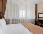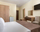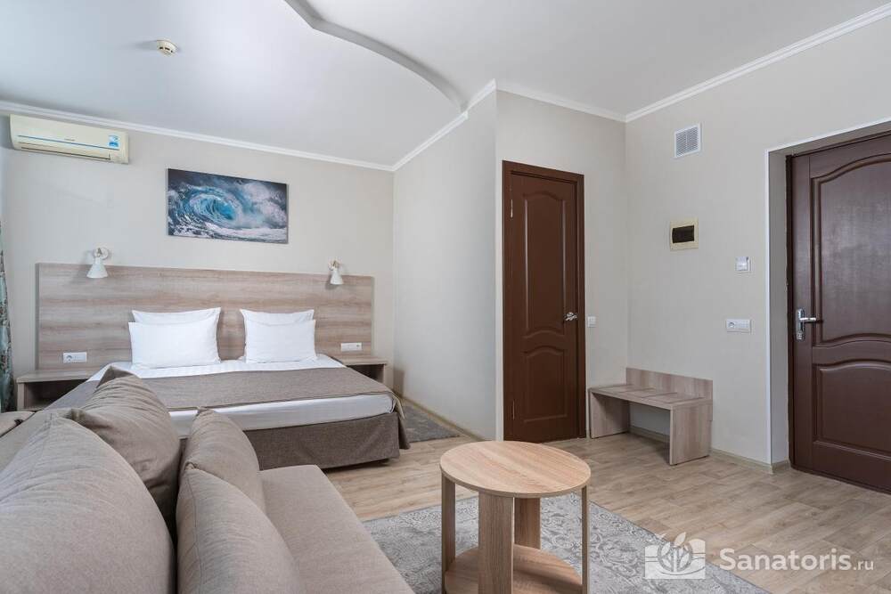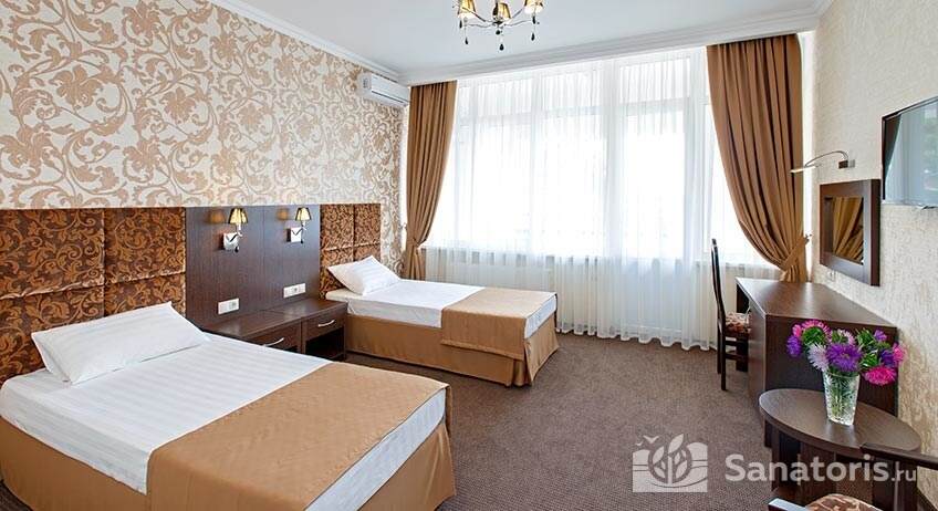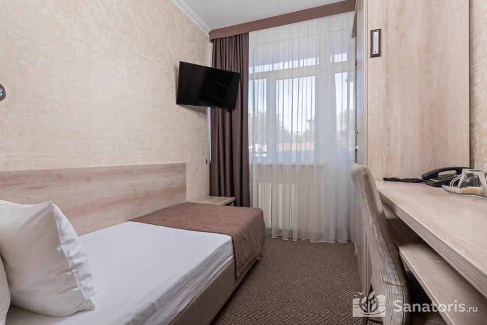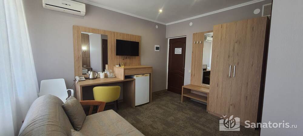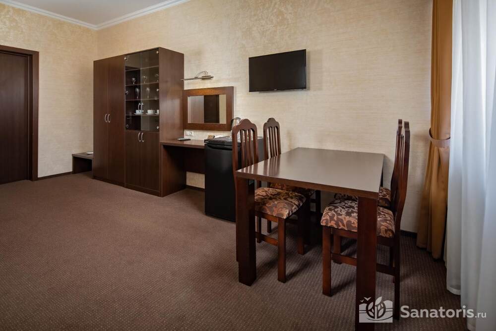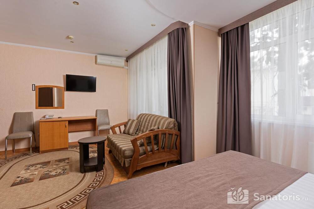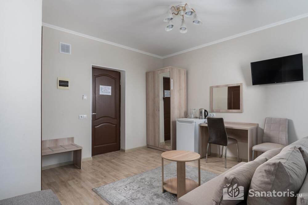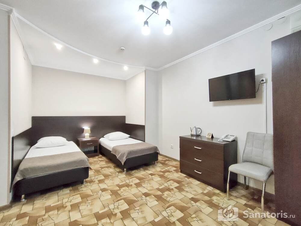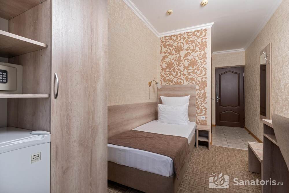 - Удобство в номере — в распоряжение предоставляется стандартный набор мебели: односпальные или двуспальные кровати, шкаф, стол и стулья. В некоторых номерах присутствует балкон. Также в комнате имеется холодильник, телевизор и чайная посуда.