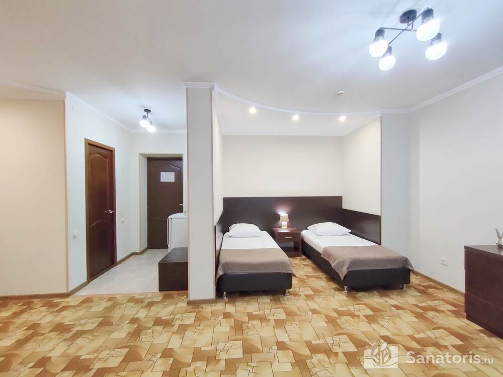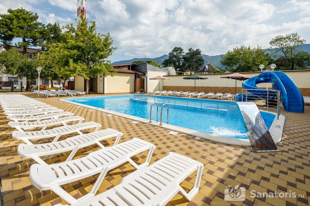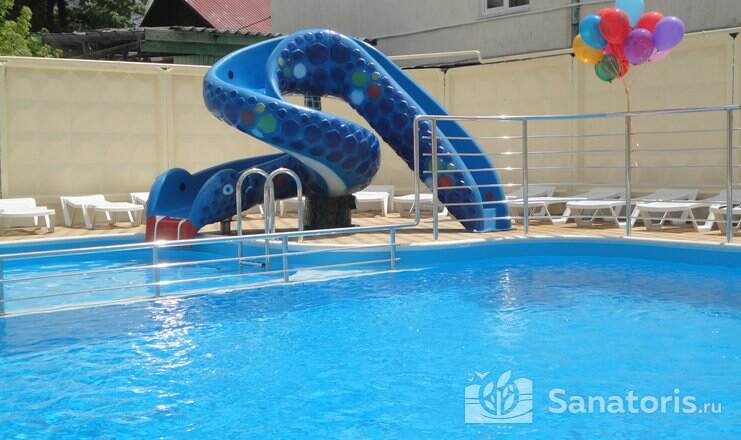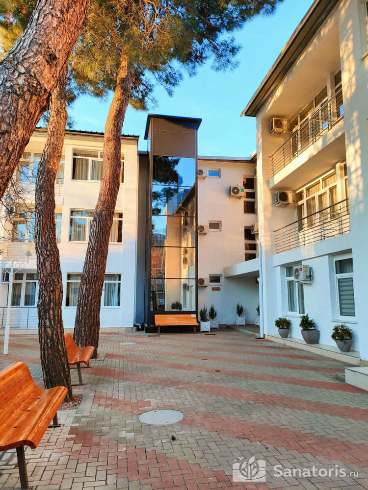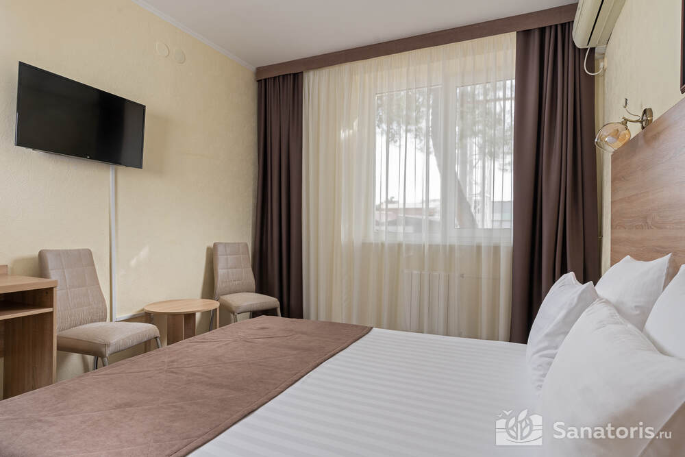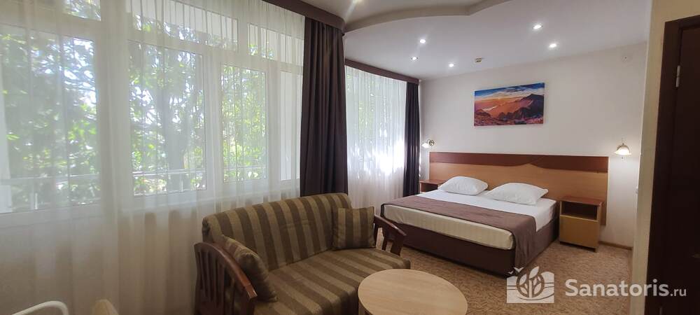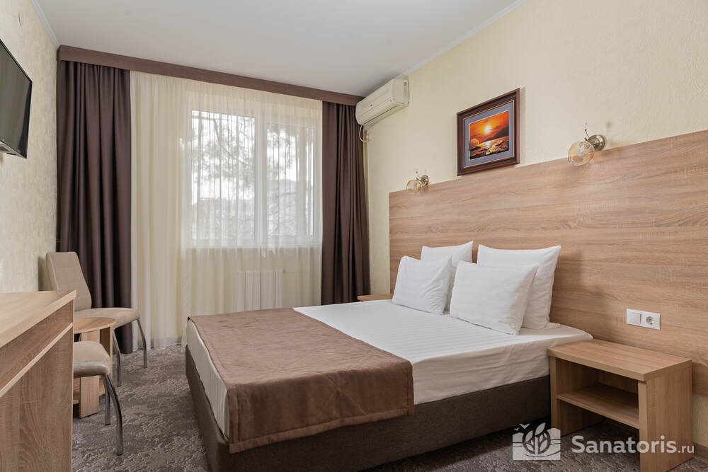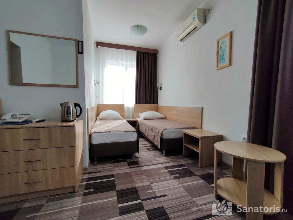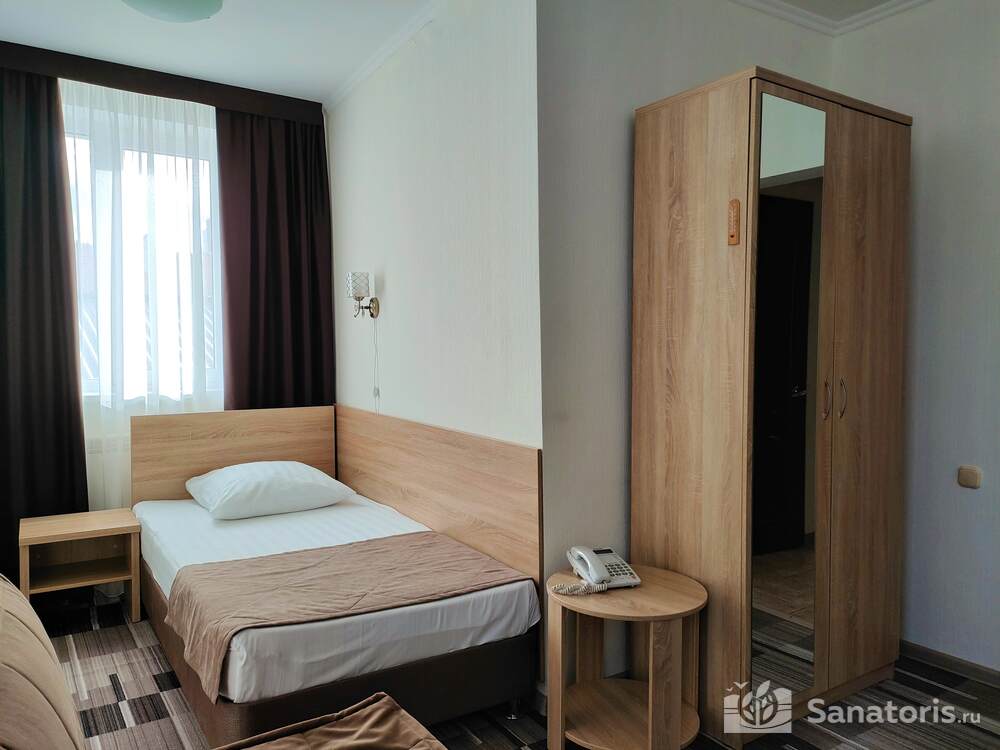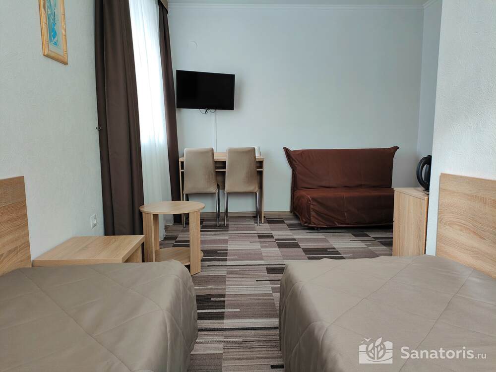 - Большую вместимость комплекса и широкий выбор номеров — постояльцам предоставляется выбор из одно-, двух- и трехместных номеров, находящихся в двух, трехэтажных корпусах, в каждом имеется лифт. Суммарно вместимость пансионата составляет 175 мест.