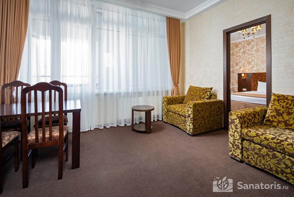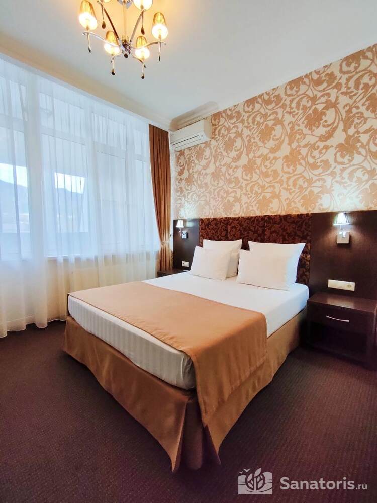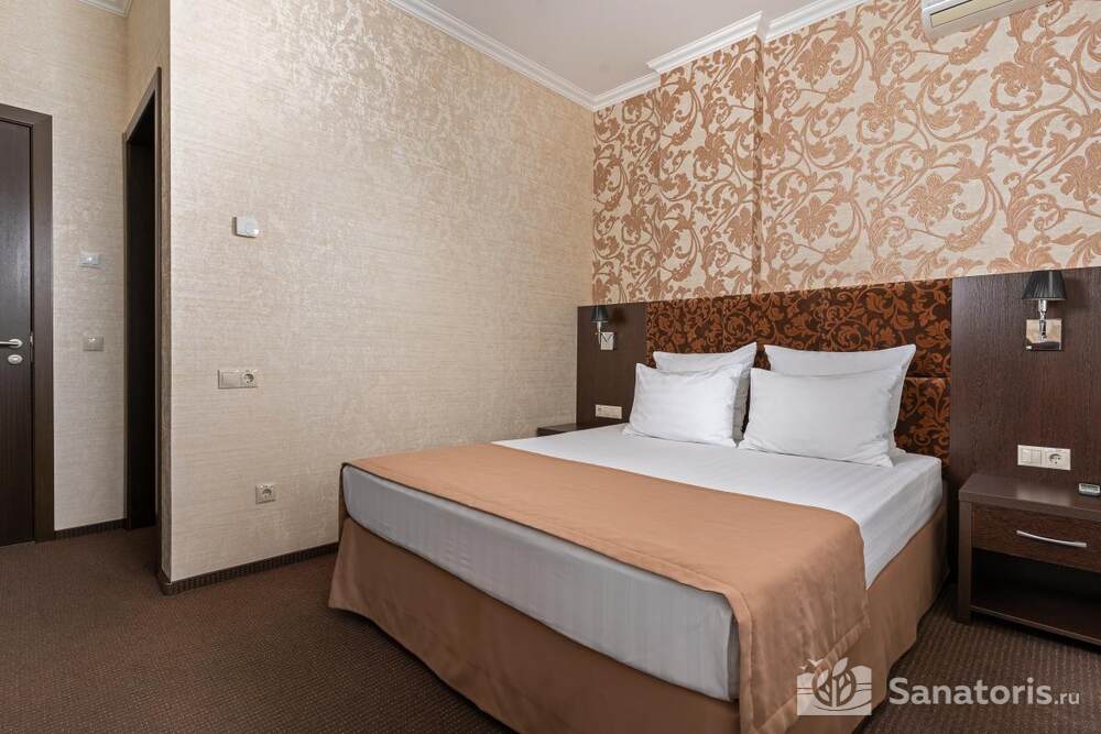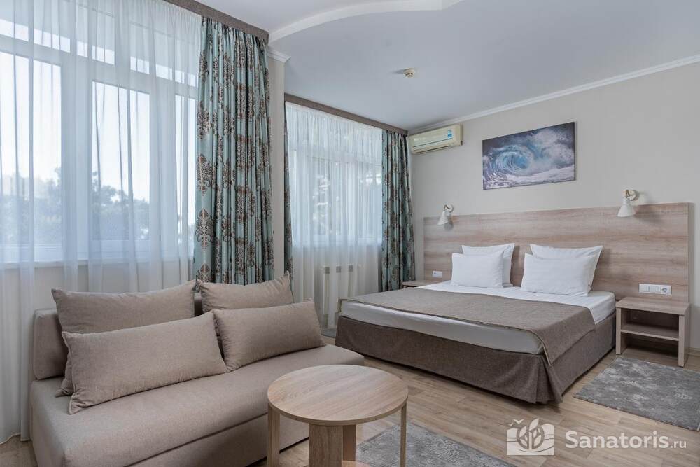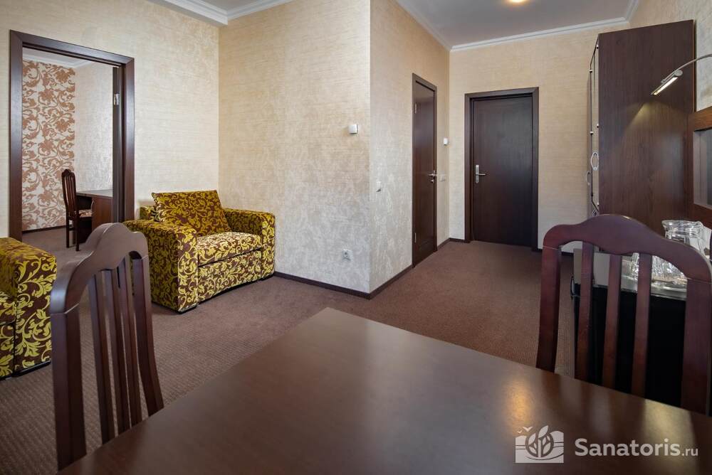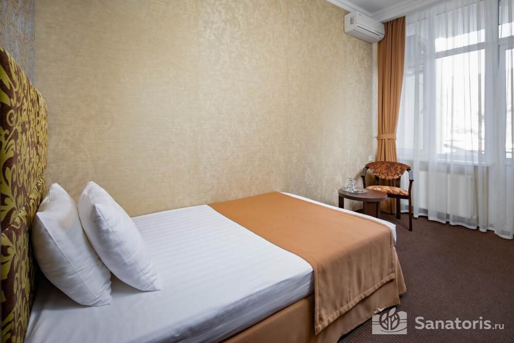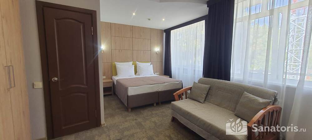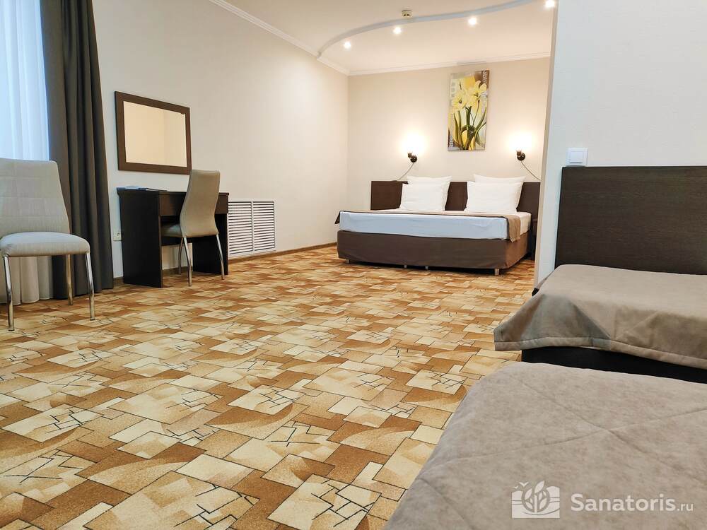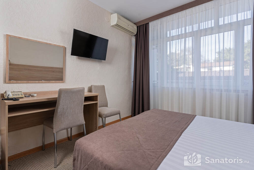 - Большую вместимость комплекса и широкий выбор номеров — постояльцам предоставляется выбор из одно-, двух- и трехместных номеров, находящихся в двух, трехэтажных корпусах, в каждом имеется лифт. Суммарно вместимость пансионата составляет 175 мест.