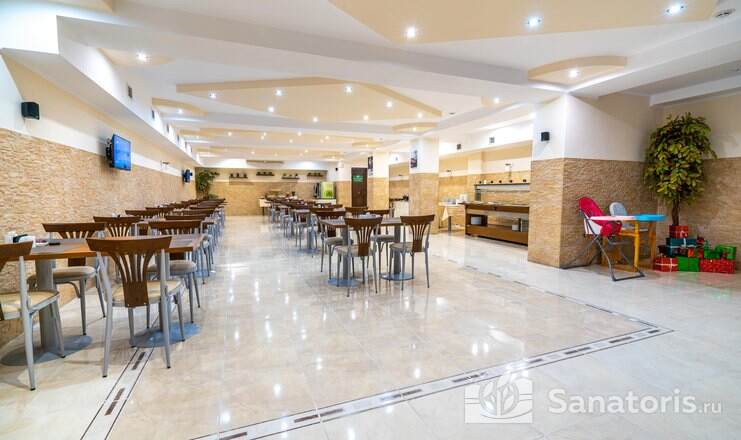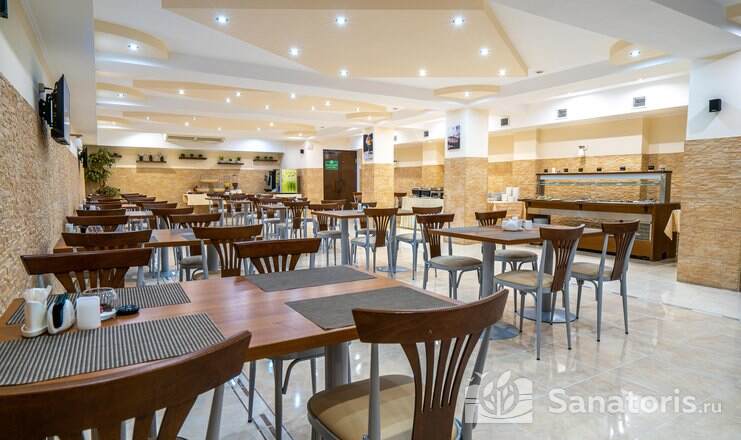 На территории гостиницы работает шикарный ресторан. Гостям предлагают вкусные блюда из натуральных продуктов. Так же есть напитки на любой вкус. Гости отеля могут заказать еду прямо в номер.