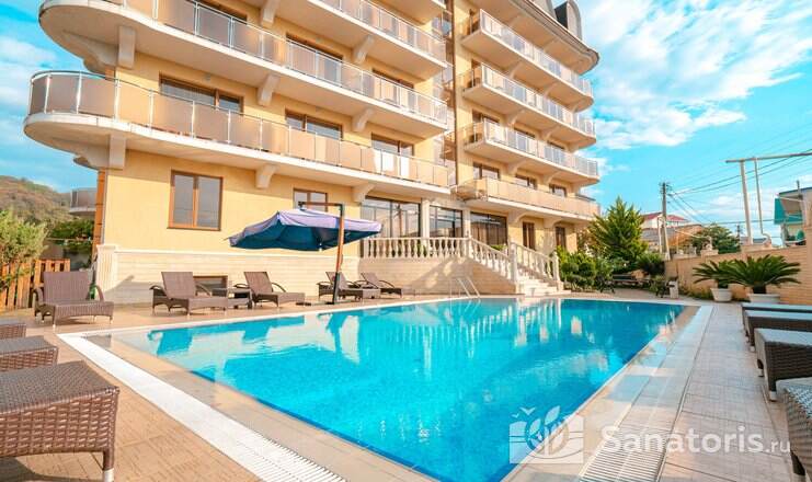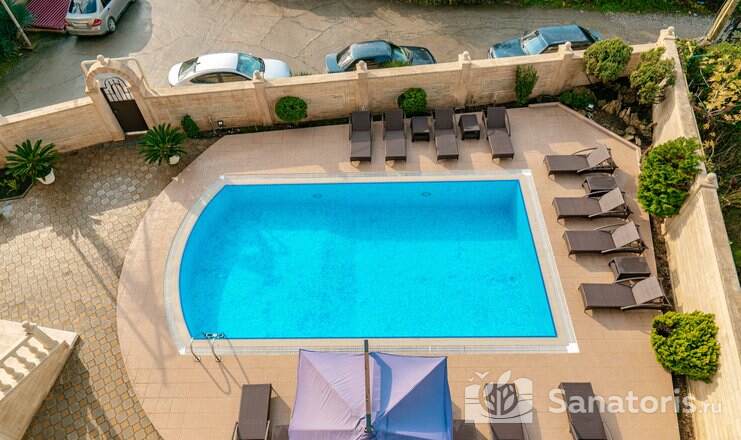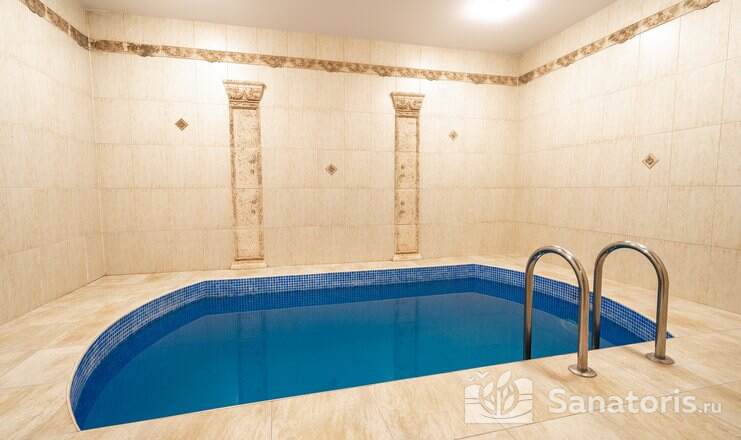 Работает просторный бассейн. Рядом с ним оборудована зона отдыха с лежаками и навесами. Так же в отеле есть финская сауна, зал с современными тренажерами.