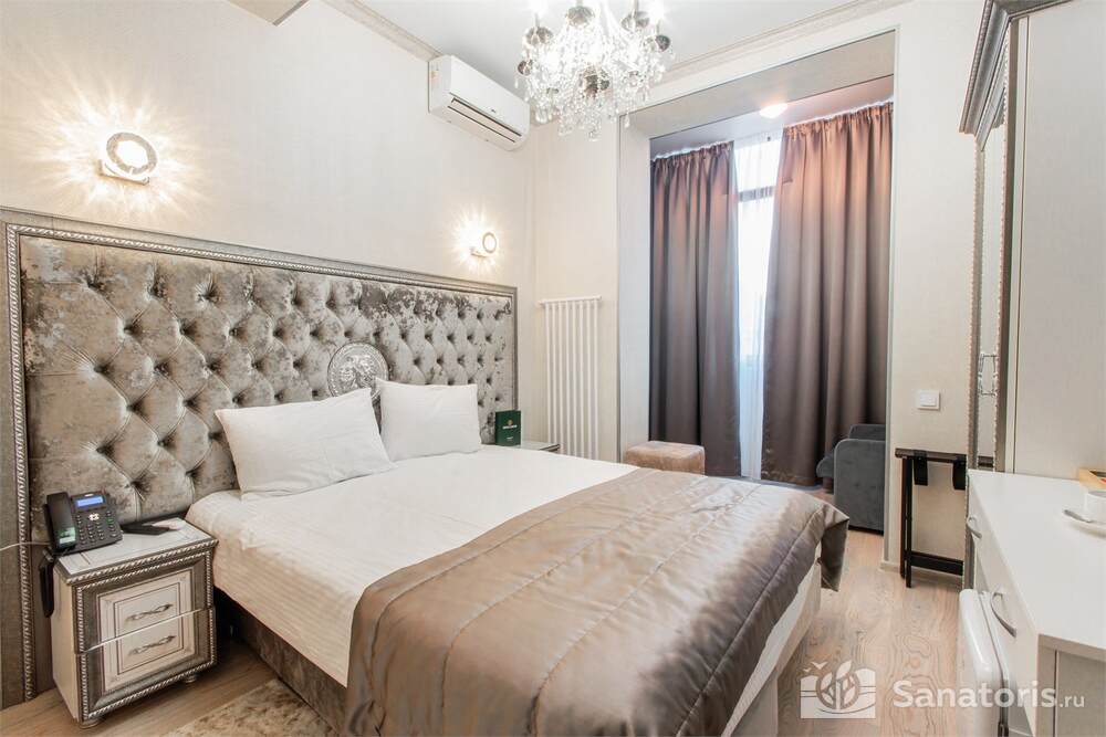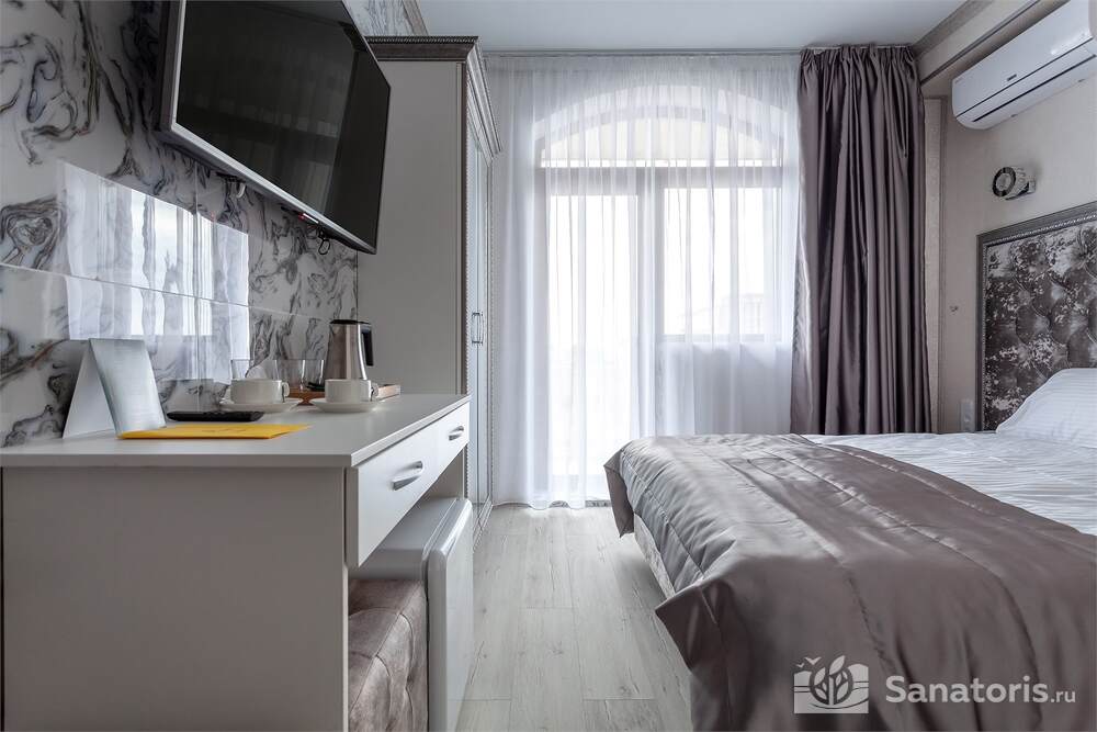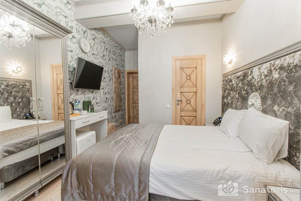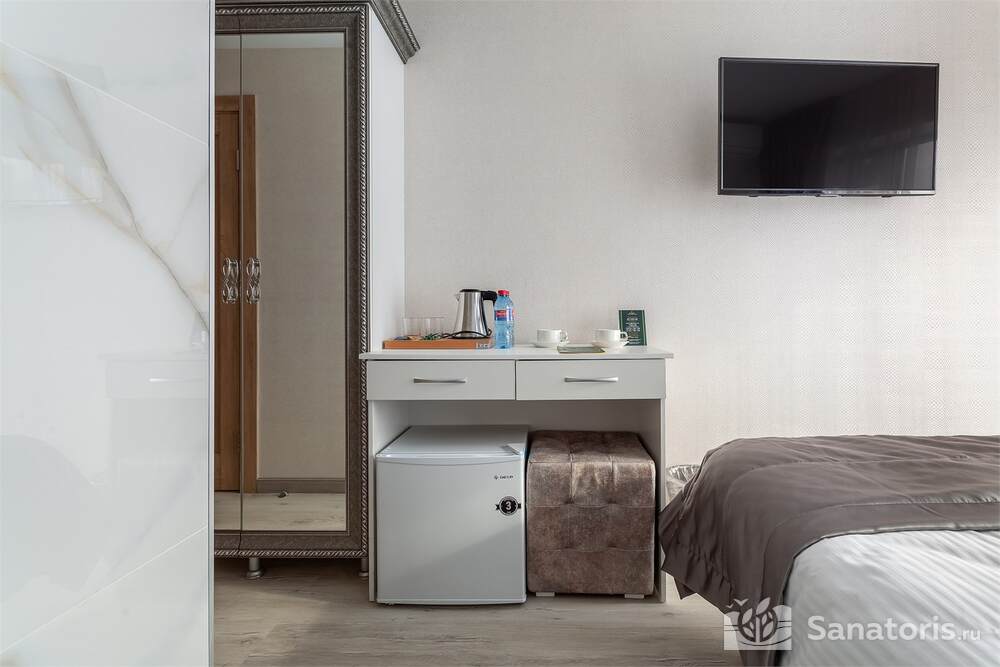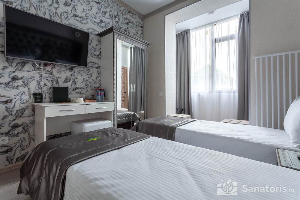 Номера выполнены в классическом стиле. Преобладают пастельные оттенки. Во всех апартаментах есть туалет, ванная комната, сплит-система, спутниковое телевидение, холодильник, современная мебель и бытовая техника.