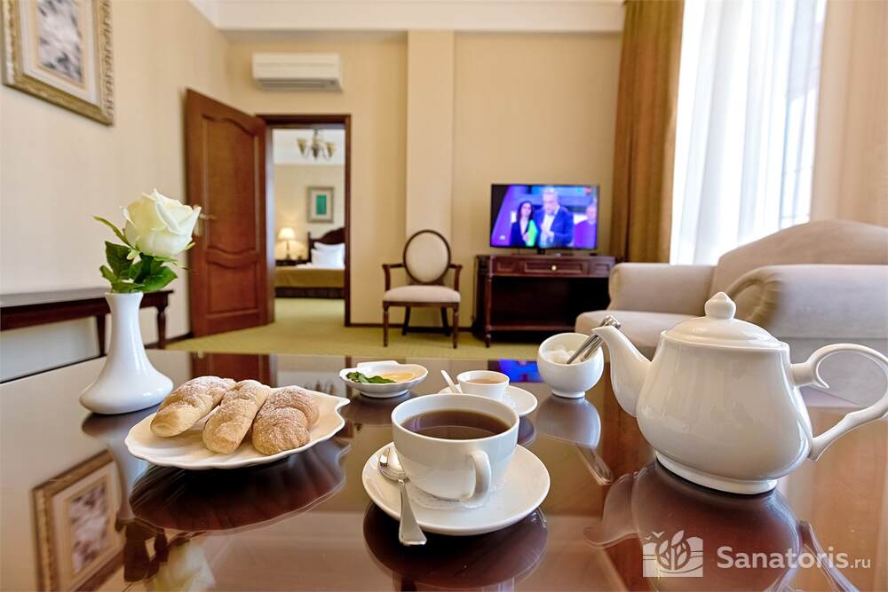 В стоимость проживания входят завтраки. Их подают в шикарном ресторане. Гостям предлагают попробовать европейскую, национальную кухню. Блюда готовят квалифицированные повара. В работе они используют экологически чистые, свежие продукты.