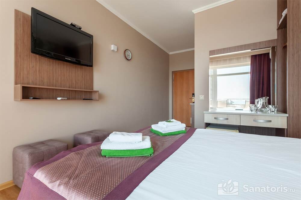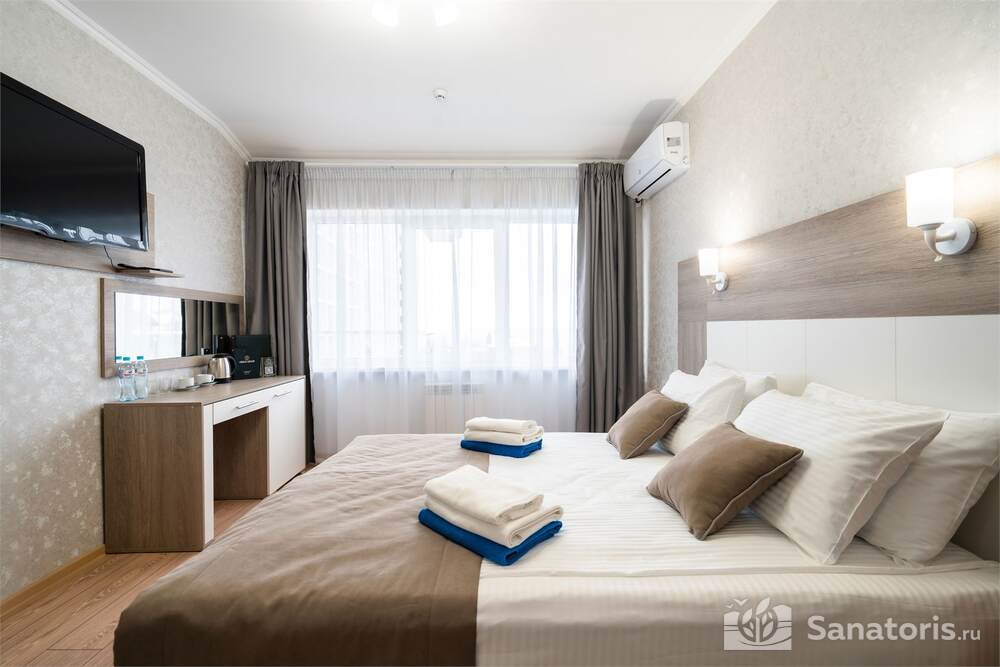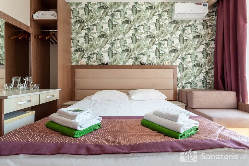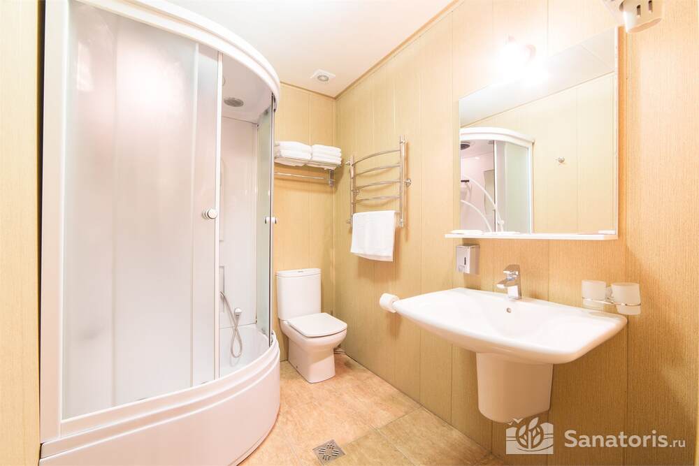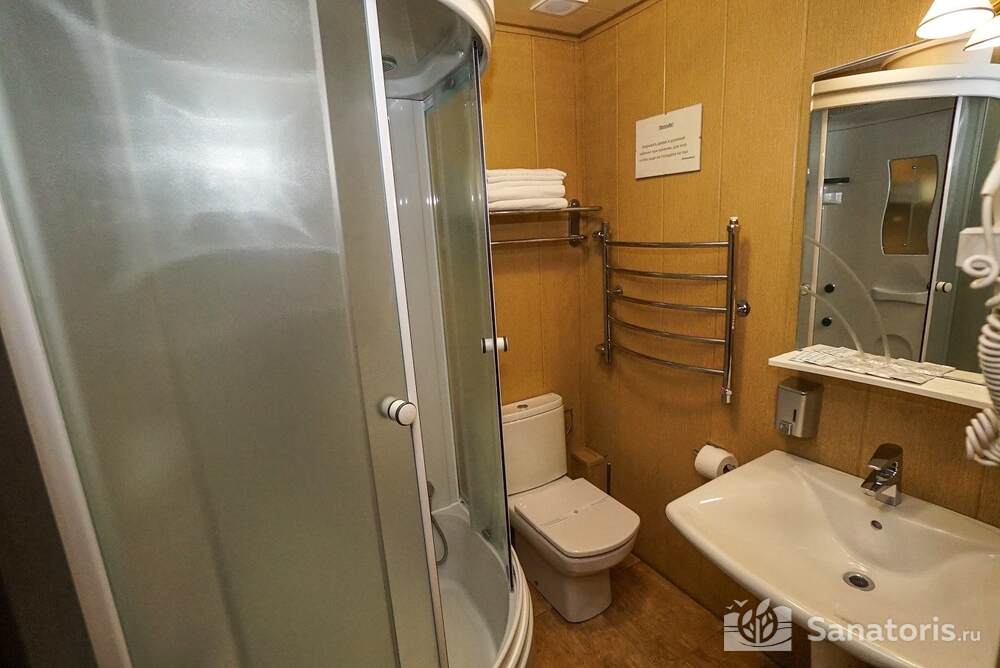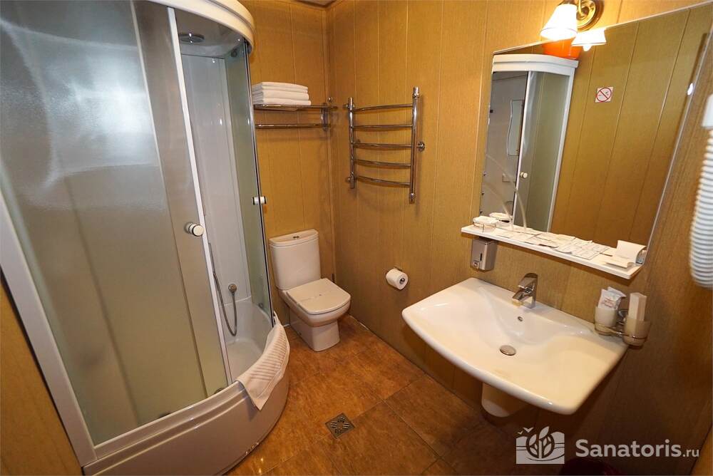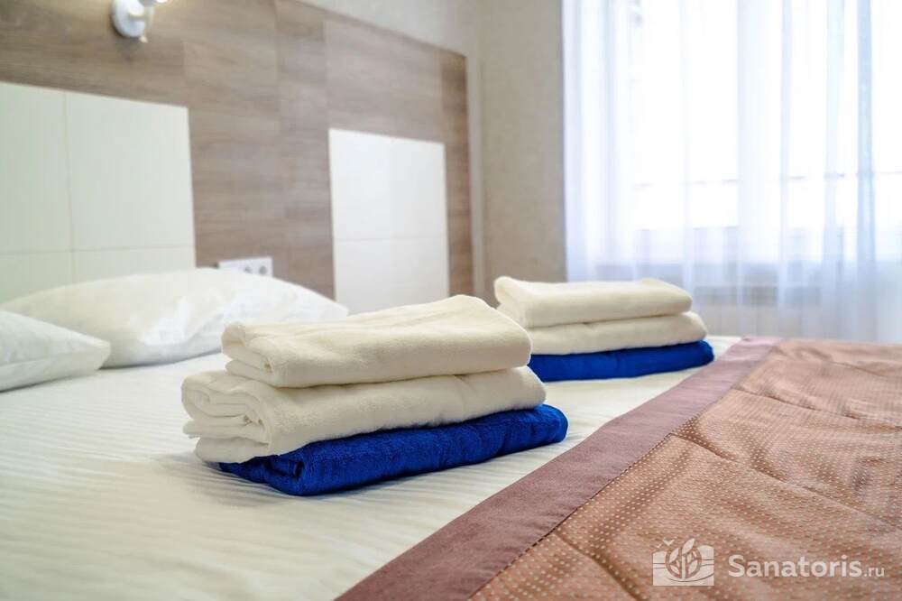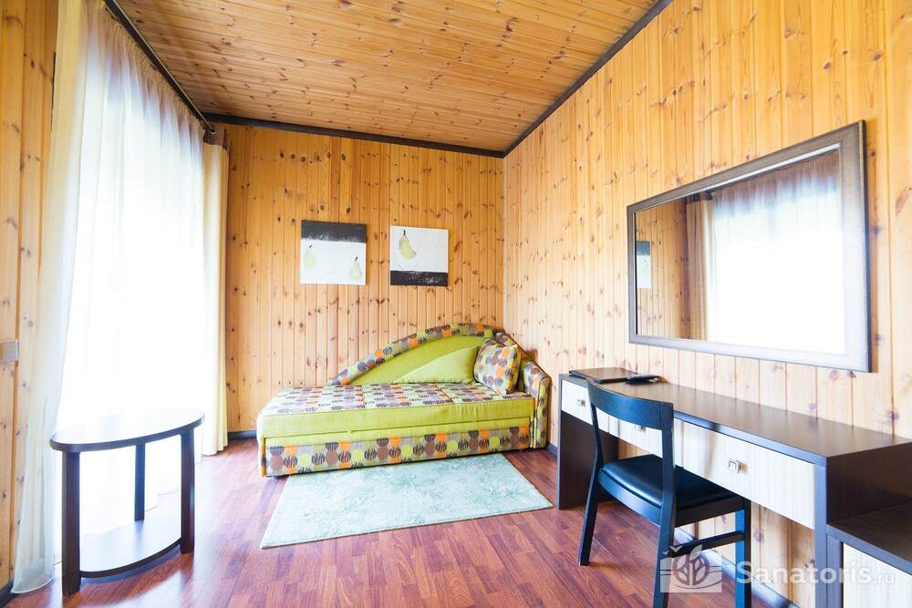 Всего в обоих корпусах одновременно могут проживать около 200 человек. Можно выбрать номера различных категорий. Они обладают всем необходимым для удобного проживания: