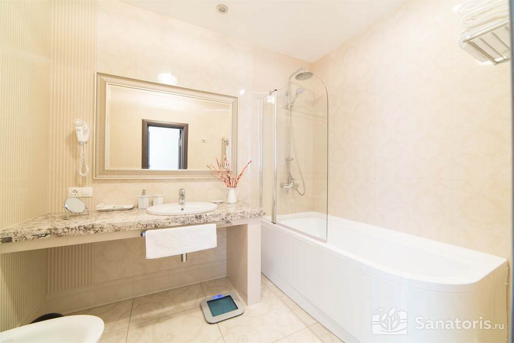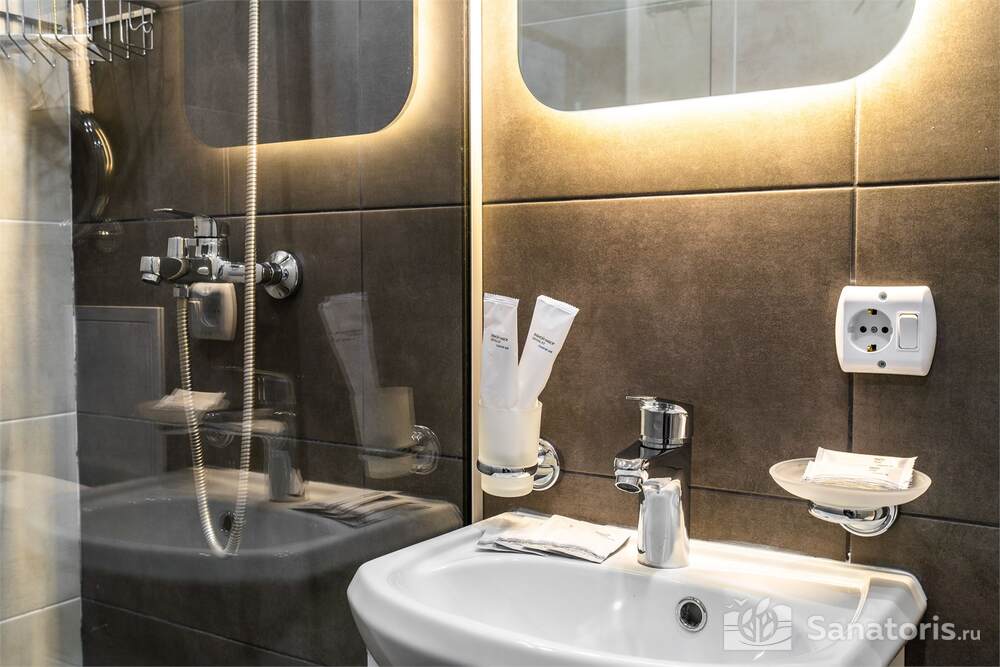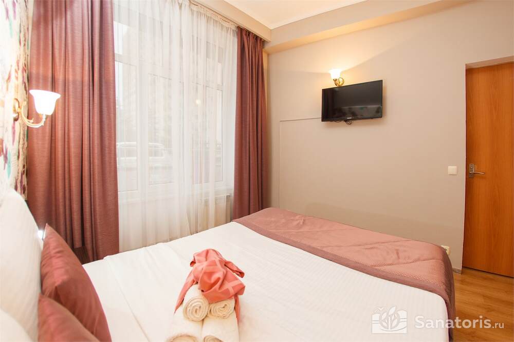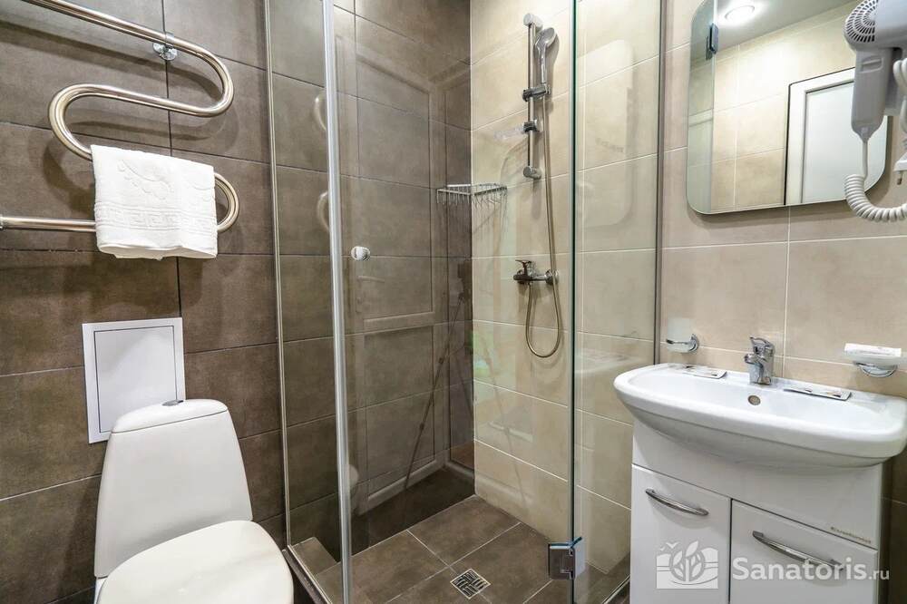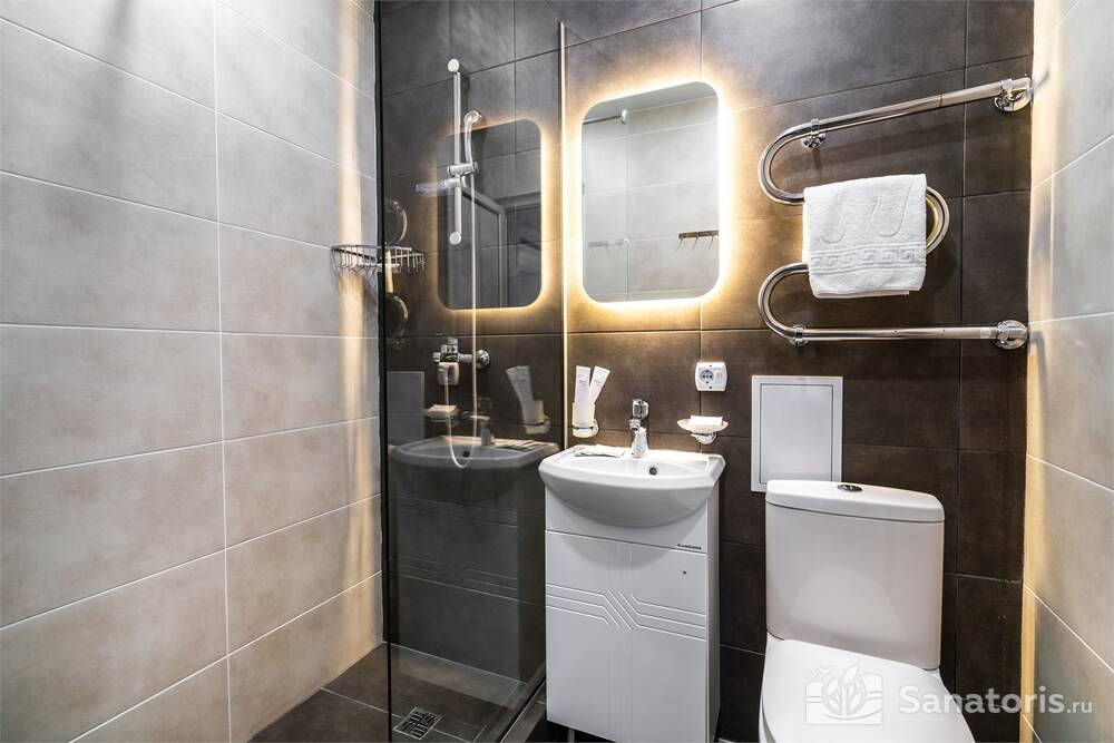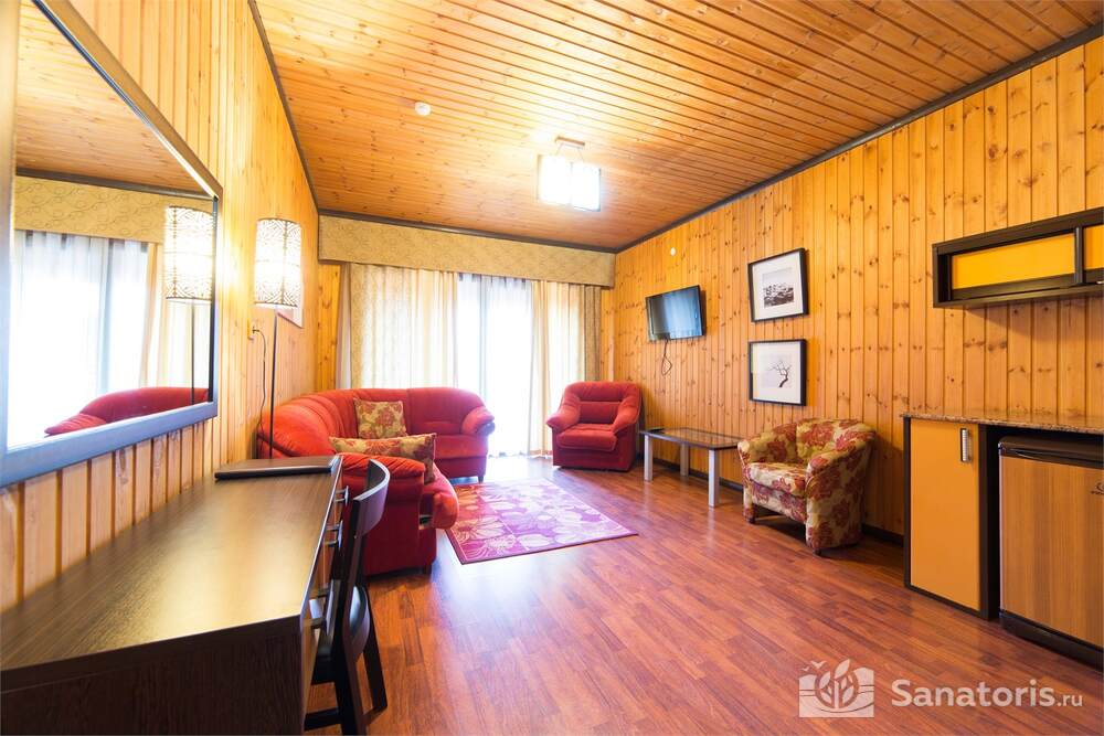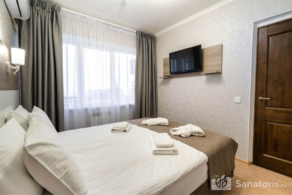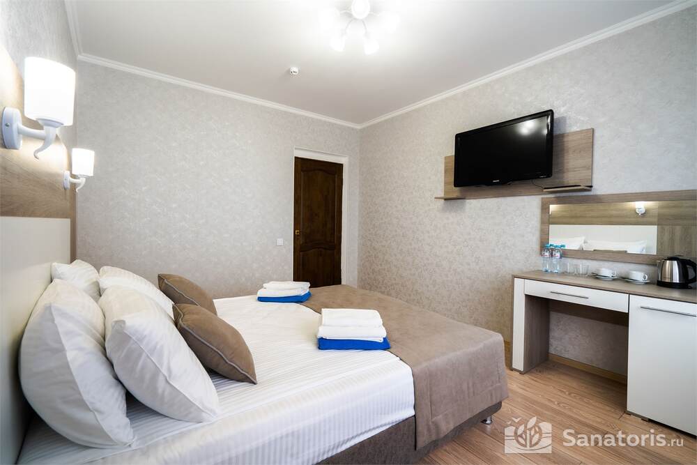 Всего в обоих корпусах одновременно могут проживать около 200 человек. Можно выбрать номера различных категорий. Они обладают всем необходимым для удобного проживания:
