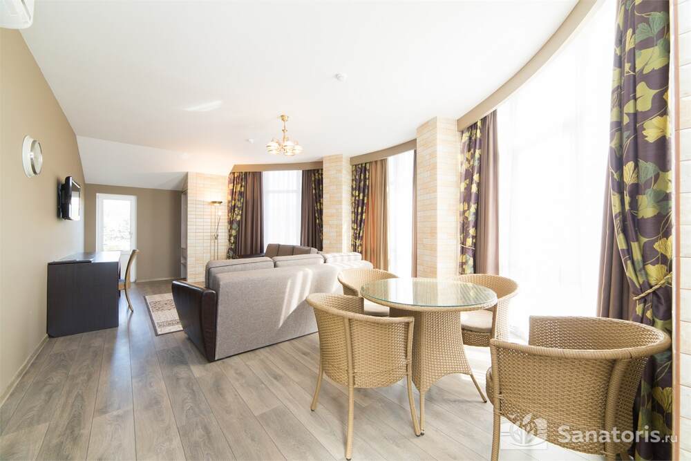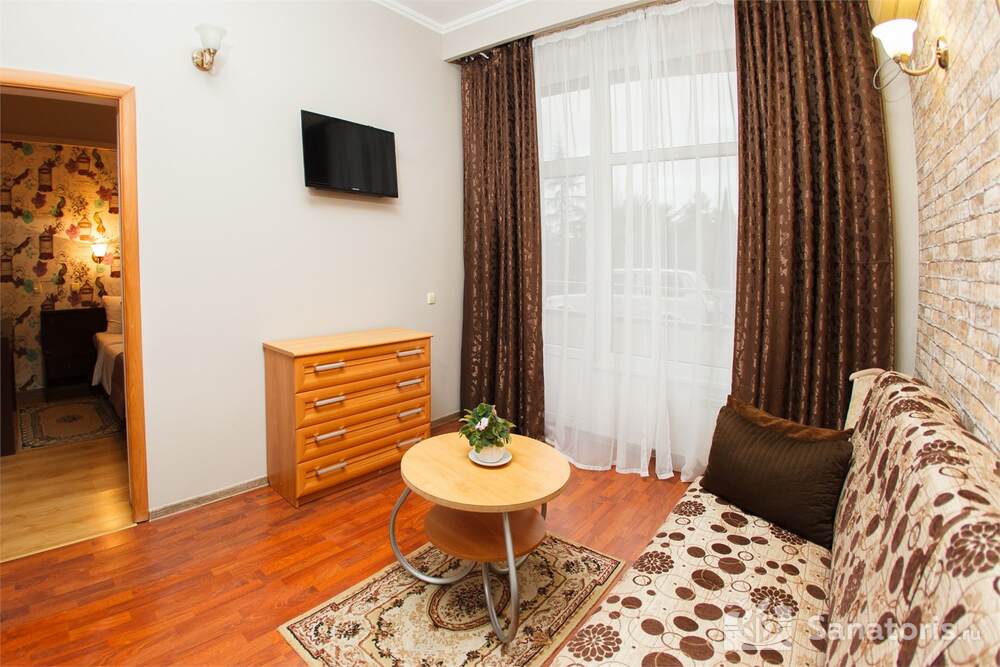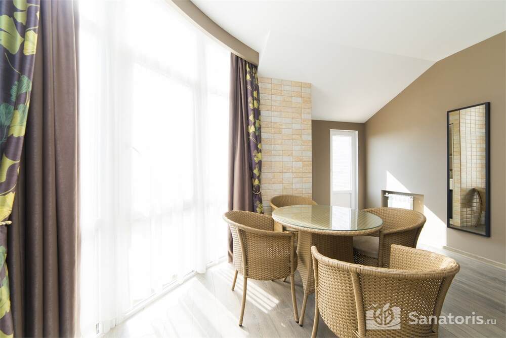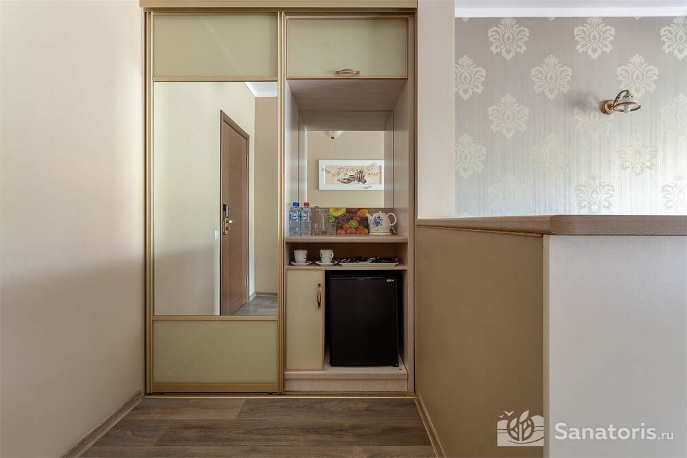 - Маленькой кухней, в которой можно пообедать (не во всех номерах).