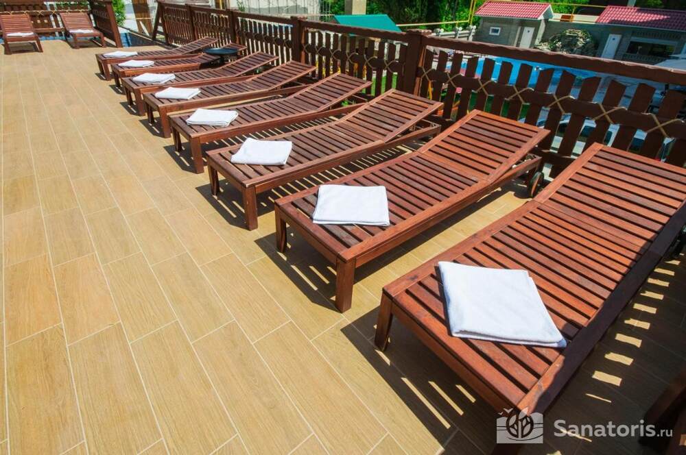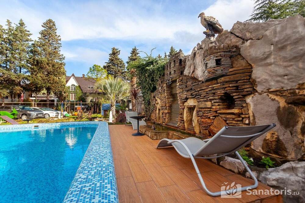 Гости питаются в изысканном ресторане с летней террасой. Так же есть бар. На территории имеется бассейн с подогревом и зоной отдыха с лежаками и навесами.