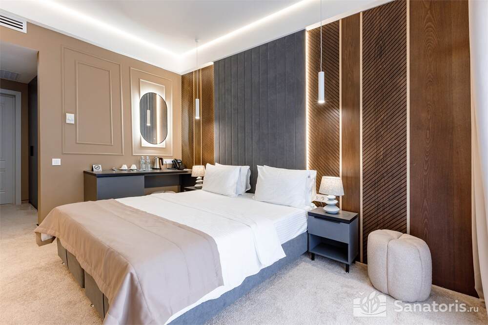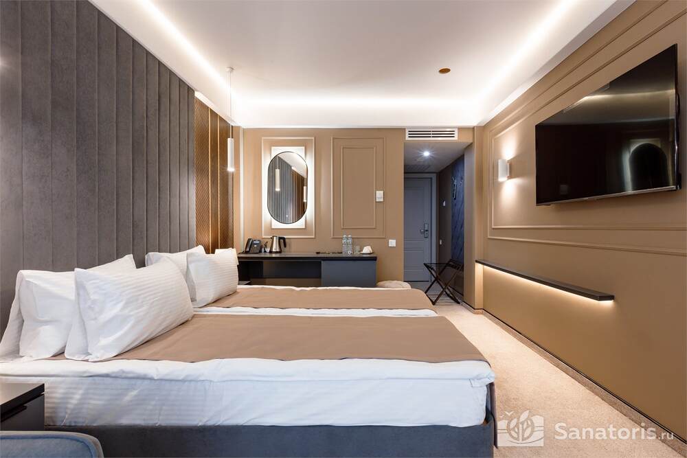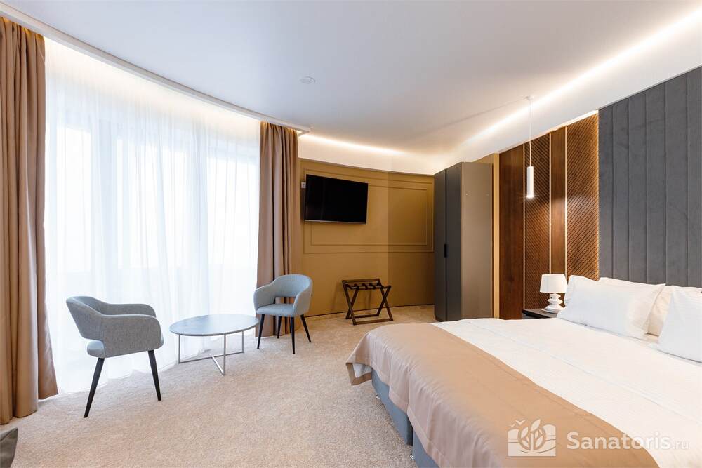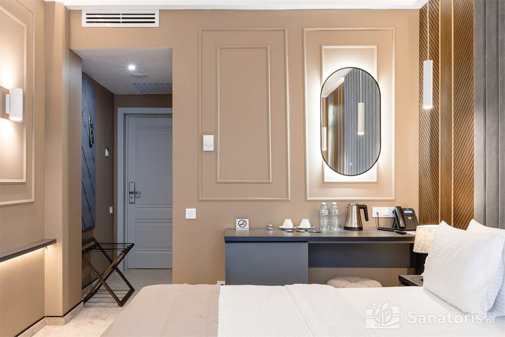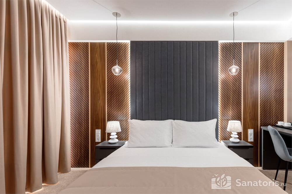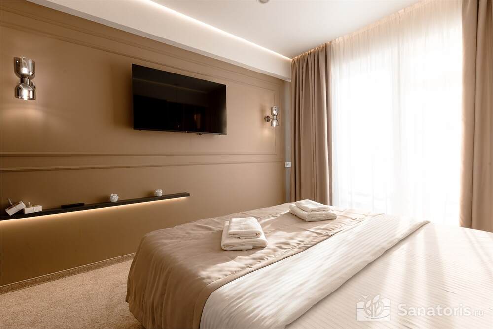Номерной фонд отеля представлен преимущественно двухместными апартаментами различной степени комфортности: от стандарта до люкса. Каждый номер оснащен: