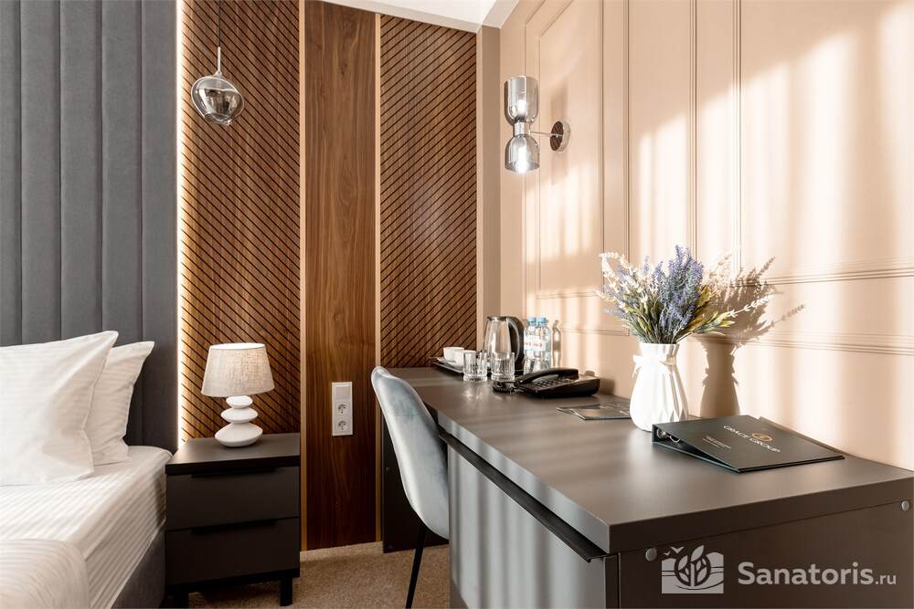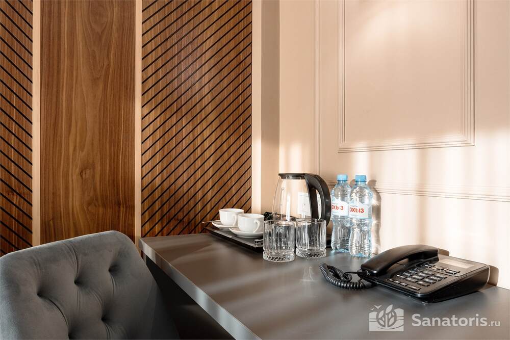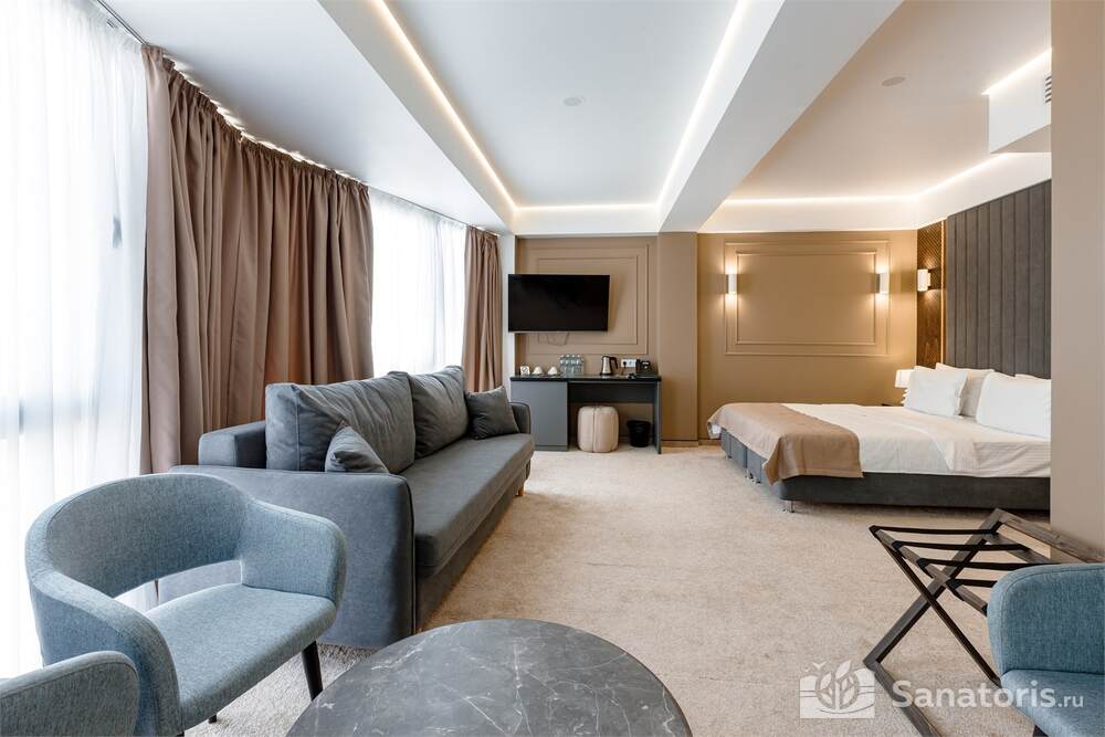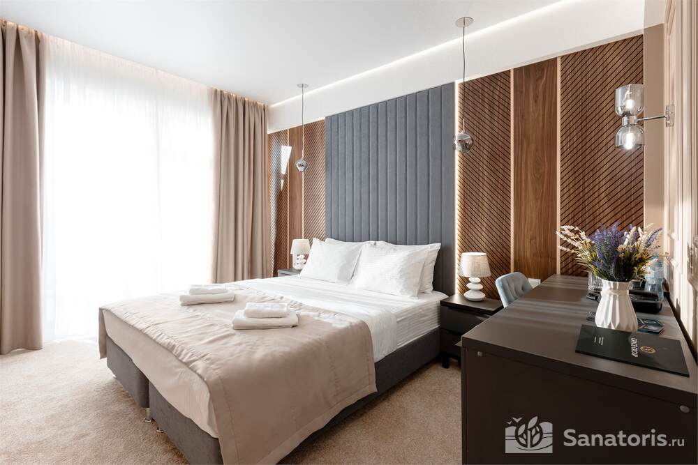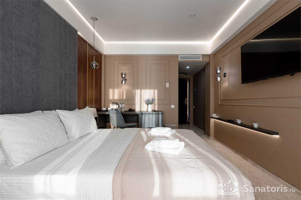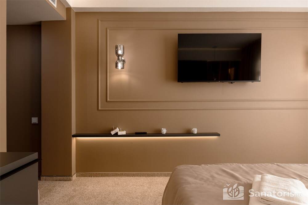 Номерной фонд отеля представлен преимущественно двухместными апартаментами различной степени комфортности: от стандарта до люкса. Каждый номер оснащен: