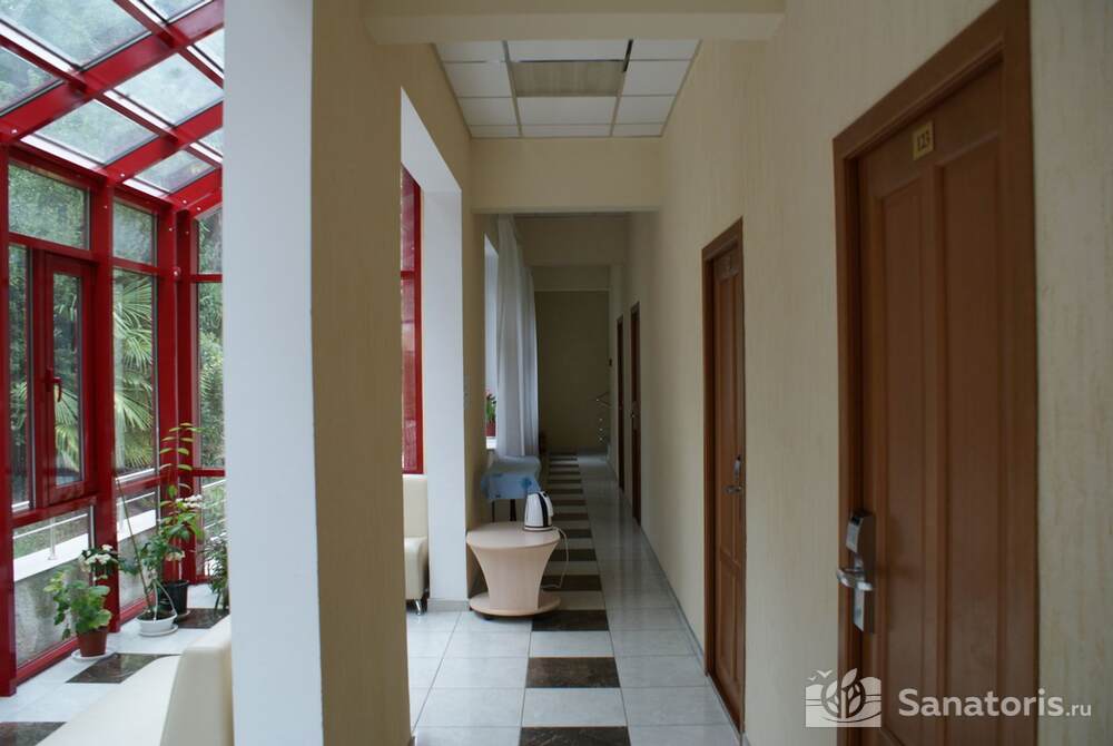 Санаторий «Хоста» расположен в экологически чистой зоне живописного горного ущелья. Территория здравницы распростерлась на 6,46 Га с преобладающей зеленой субтропической растительностью. Помимо комплекса коттеджей здесь сосредоточены лечебные корпуса, зал для занятий йогой и физкультурой, спортивная открытая арена и столовая.