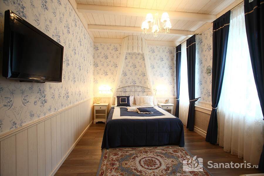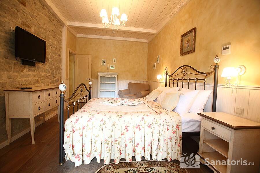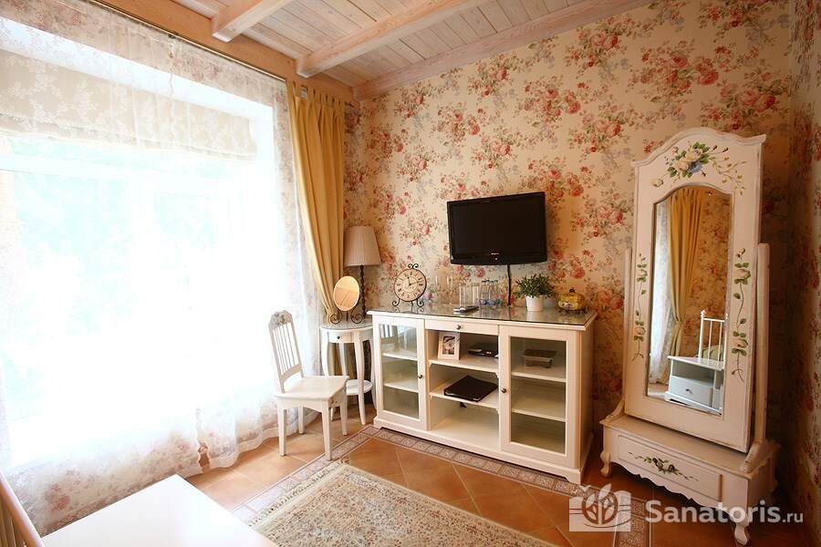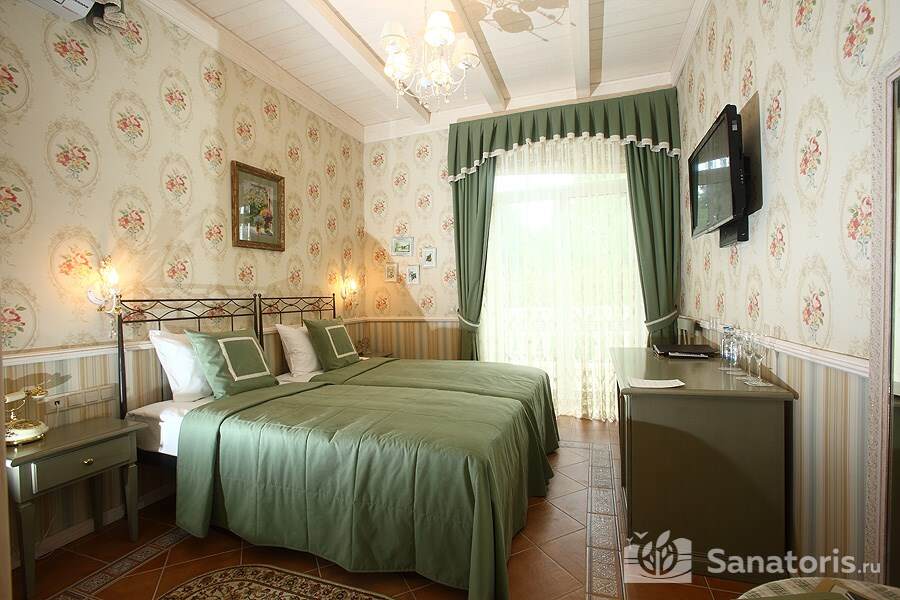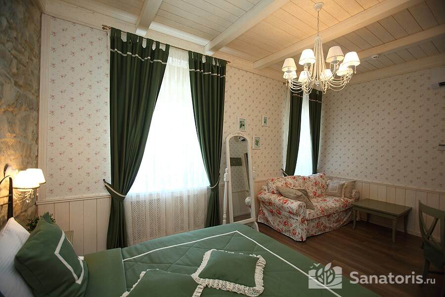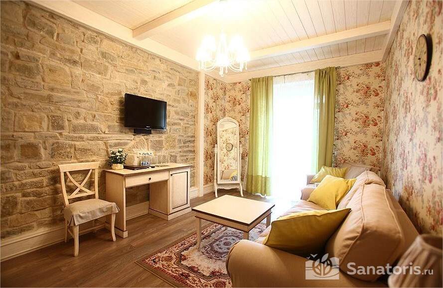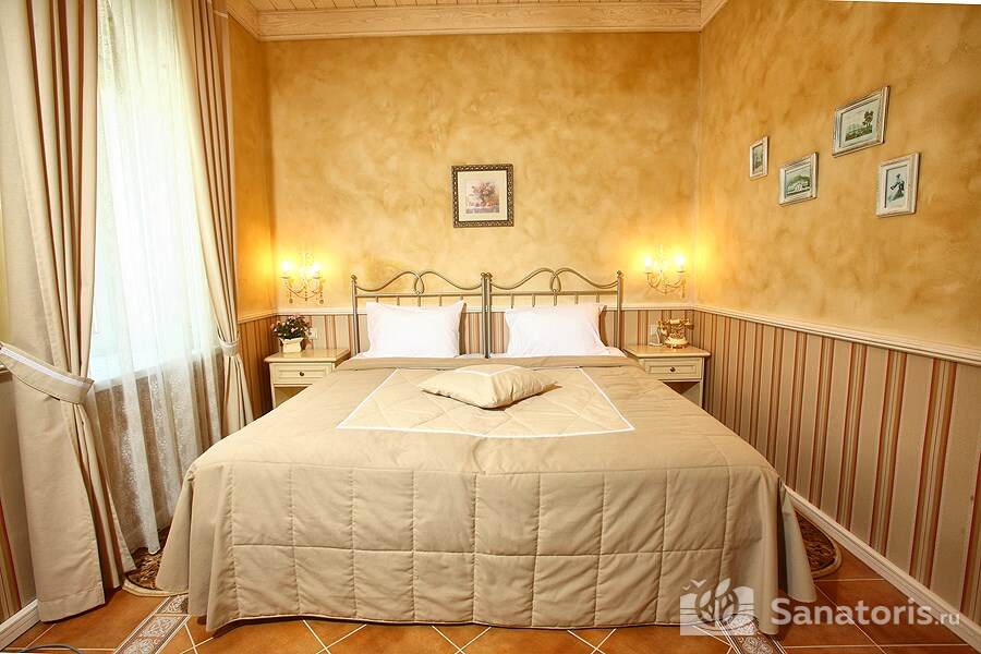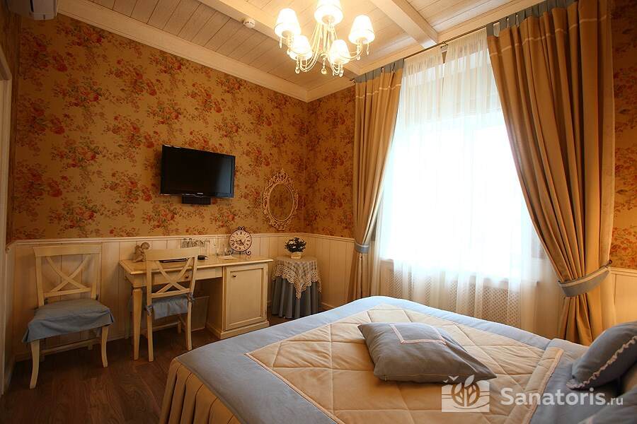 Двухэтажная гостиница выполнена в духе сталинских времен. Всего здесь сорок комфортных номеров. Одновременно в отеле может проживать 90 постояльцев. Внутри здания в и апартаментах присутствует элегантный интерьер. Уникальный декор и мебель соответствуют стилю «Прованс».