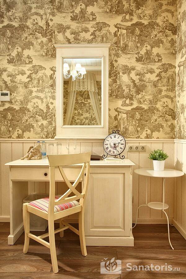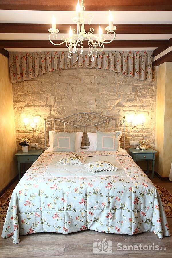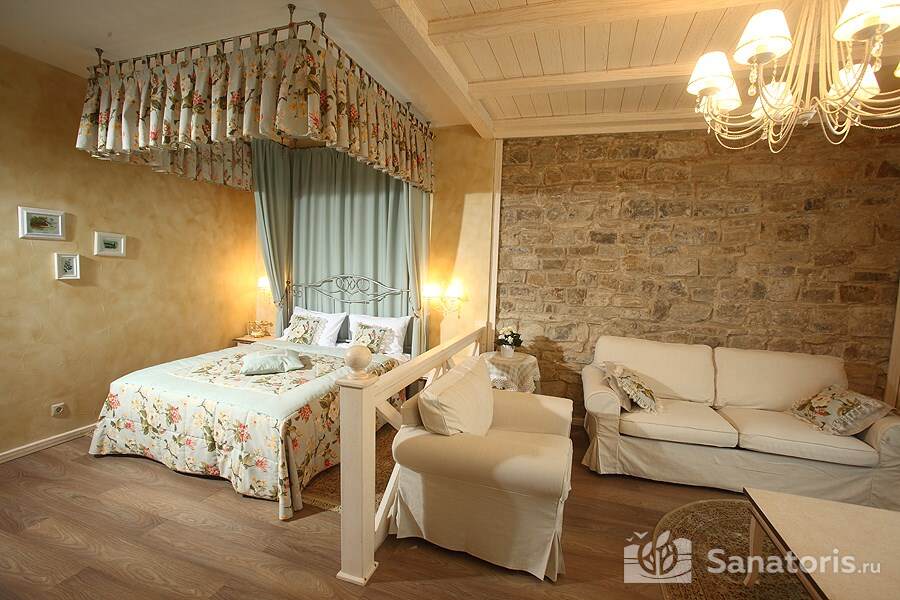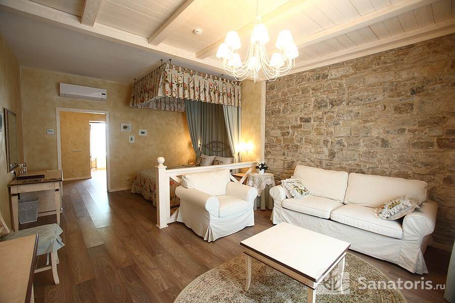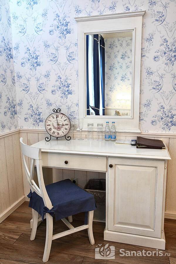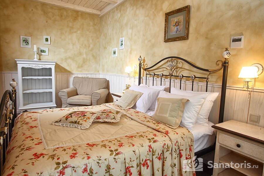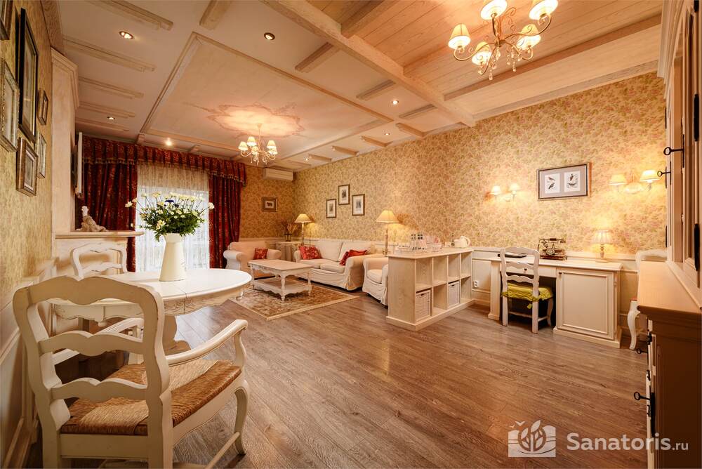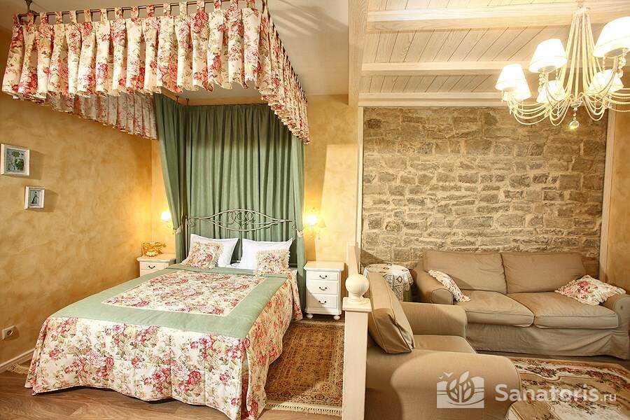 Двухэтажная гостиница выполнена в духе сталинских времен. Всего здесь сорок комфортных номеров. Одновременно в отеле может проживать 90 постояльцев. Внутри здания в и апартаментах присутствует элегантный интерьер. Уникальный декор и мебель соответствуют стилю «Прованс».