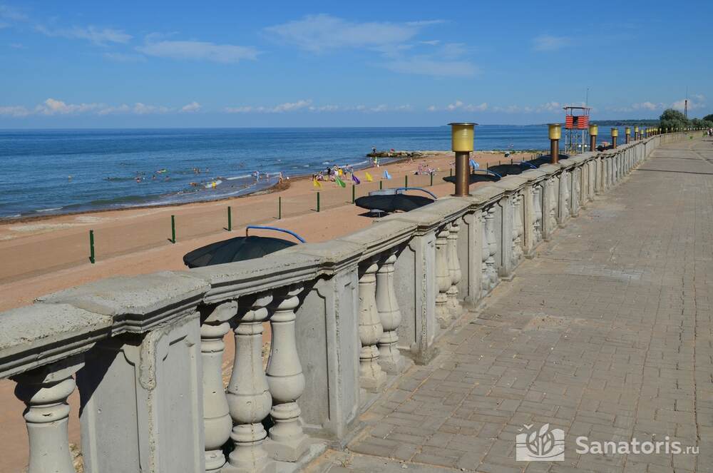 Всего в нескольких метрах от санатория находится чистый пляж. Здесь туристы могут найти себе развлечение по душе. Есть лежаки, зонты и раздевалки. Работает пункт проката.