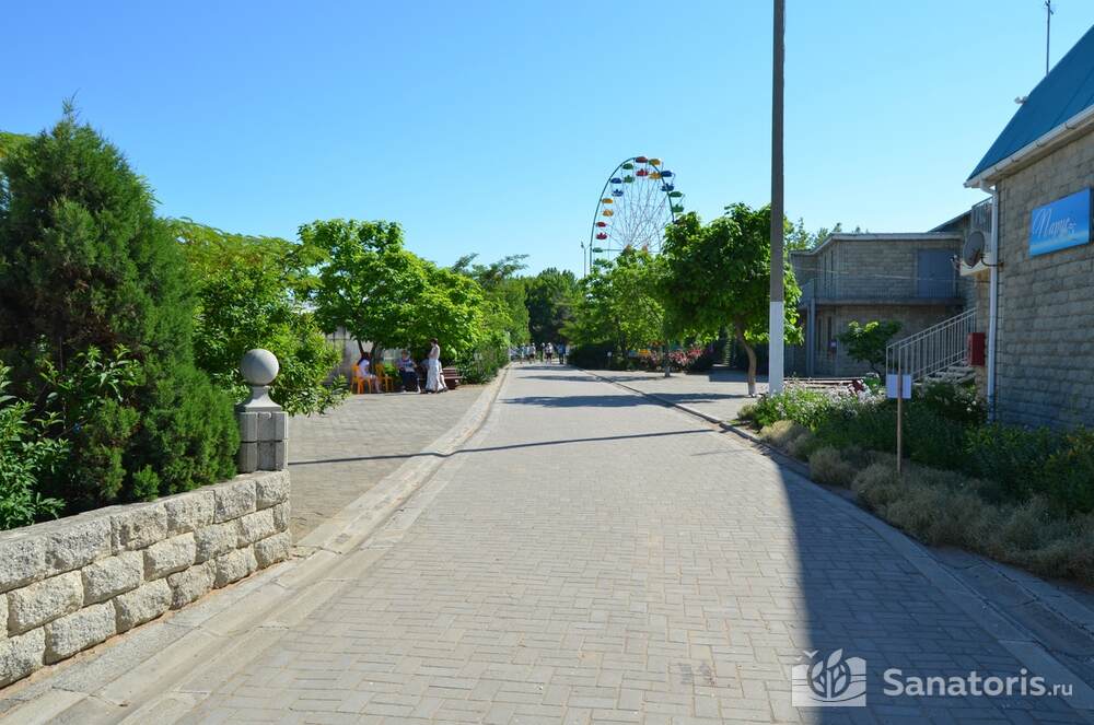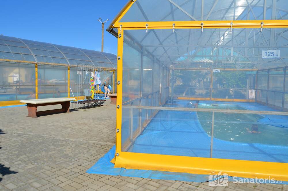Рядом со спальными корпусами расположен живописный сад. Для детей оборудована площадка с качелями и песочницами, батуты, аттракционы. Летом детишек развлекает профессиональная команда аниматоров. При необходимости администрация предоставляет в номер стульчик для кормления и кроватку. Для маленьких гостей в столовой предусмотрено детское меню.