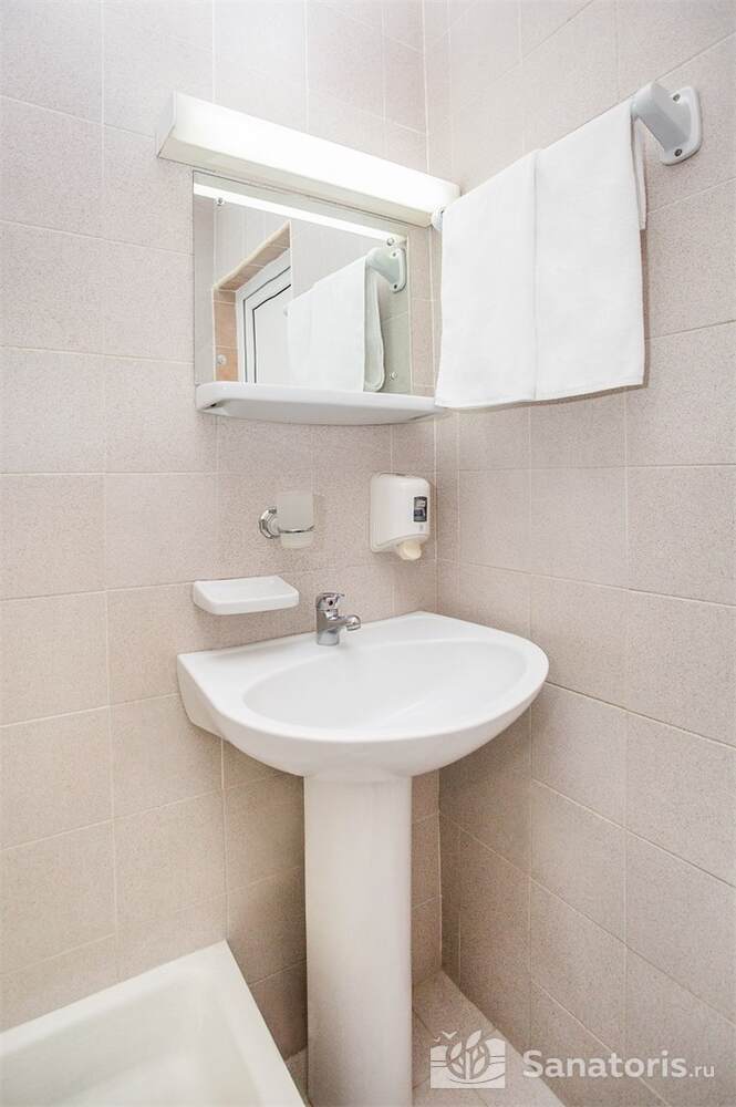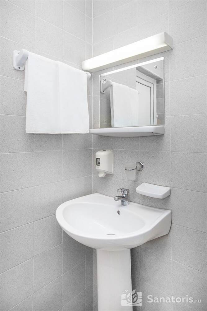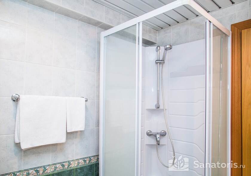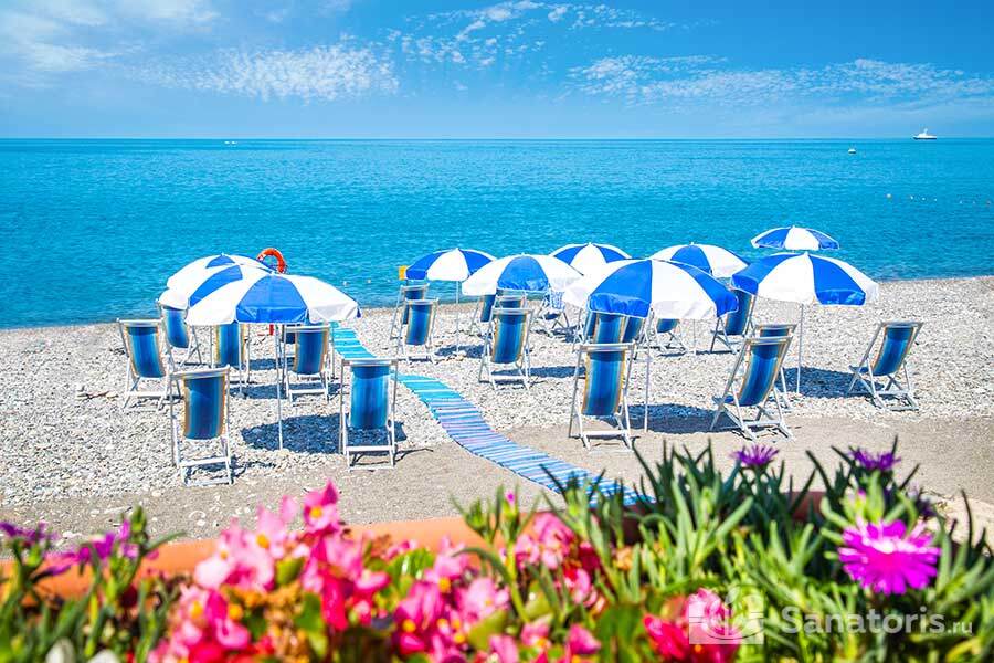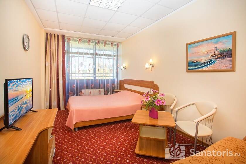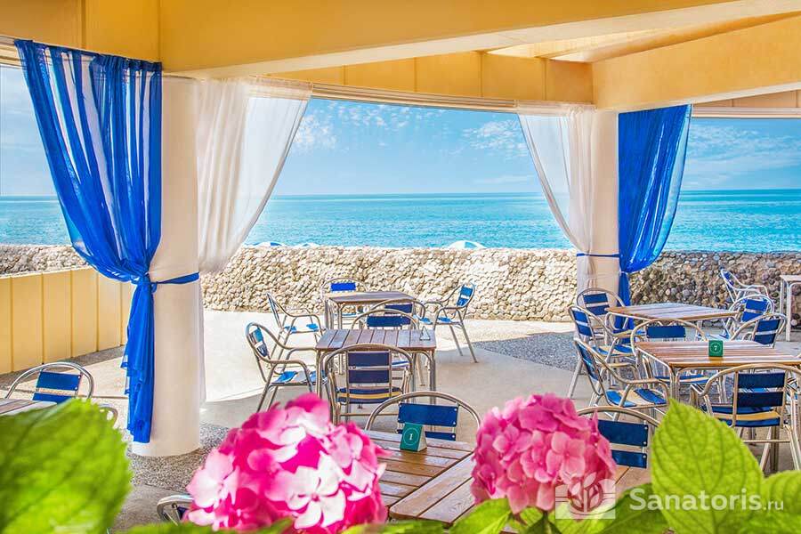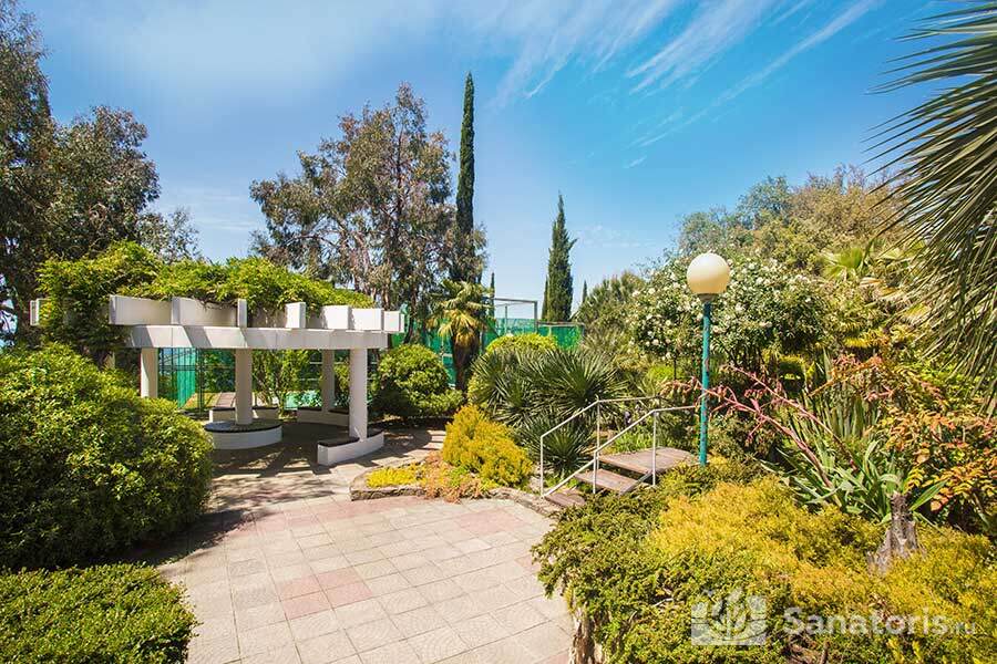 Недалеко от жилых корпусов находится санаторный пляж с галечно-песчаным покрытием. Он благоустроен: есть закрытые кабины для смены одежды, удобные шезлонги и зонты. Работает пункт проката водно-моторного инвентаря.
