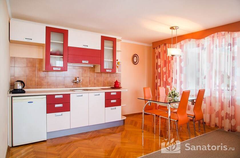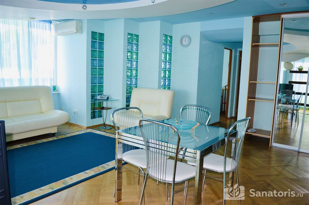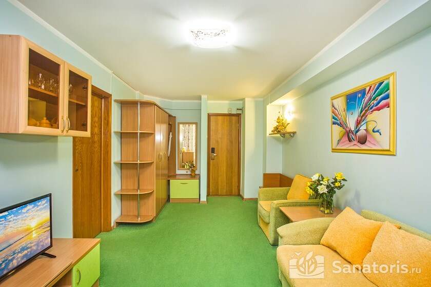 Для размещения отдыхающим предлагаются 2-х местные номера со стандартным и улучшенным набором услуг, а также 2-х или 3-х комнатные апартаменты категории «люкс». После проведения масштабной реконструкции все помещения жилого комплекса стали более комфортными и уютными. В номерах имеются балконы с панорамным видом на окрестности, установлены необходимые бытовые приборы и дверные электронные замки. Просторная и ухоженная территория вокруг зданий отличается современной дизайнерской планировкой и озеленением. Выделено место для парковки автотранспорта, работает общедоступная беспроводная сеть Wi-Fi.