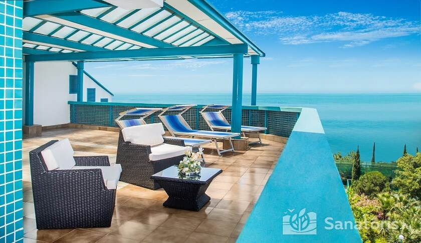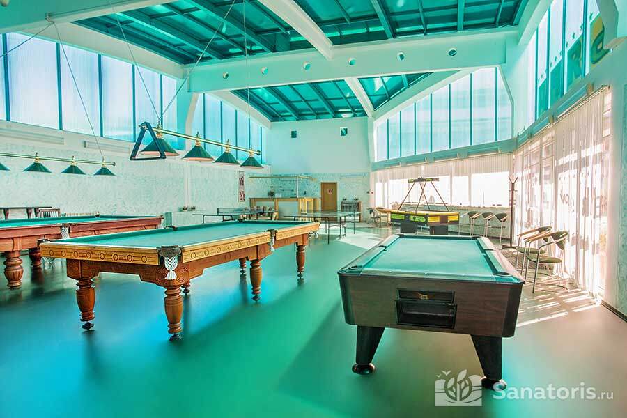 В одном из помещений в холодное время года работает бассейн с морской водой. Для активного отдыха и занятий спортом устроены спортивный и тренажерный залы, теннисный корт, бильярдная. Вечером в кинозале можно посмотреть интересный фильм или весело провести время на дискотеке. Для приверженцев интеллектуального отдыха работает библиотека. Недалеко от санатория находится аквапарк «АкваЛоо» с множеством аттракционов.