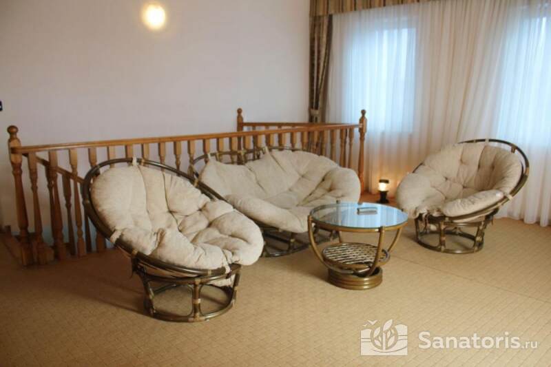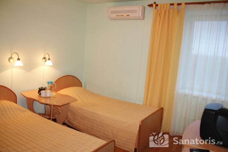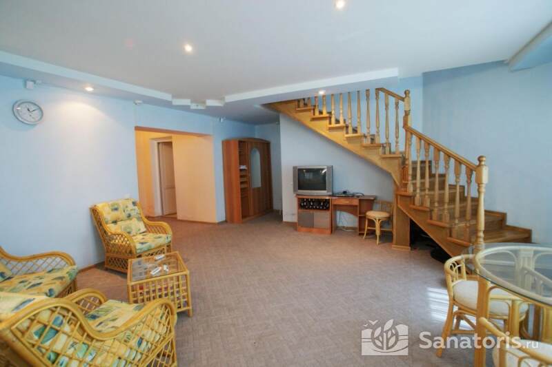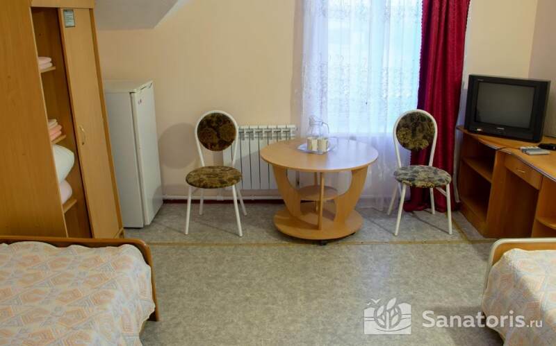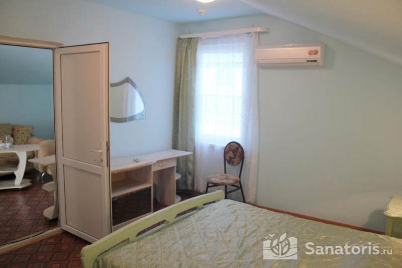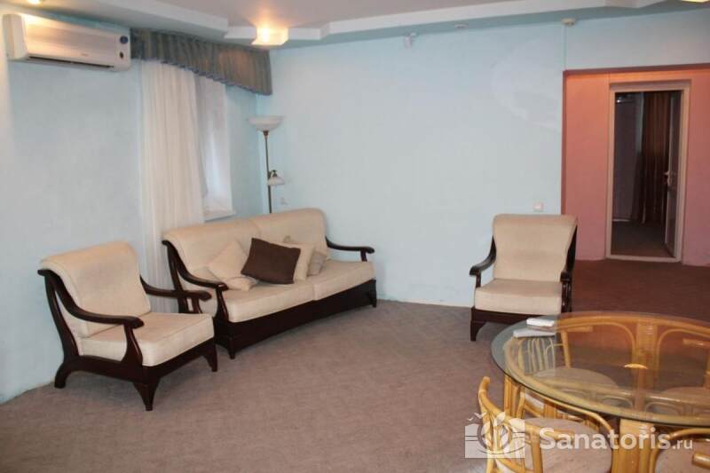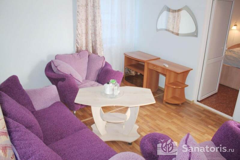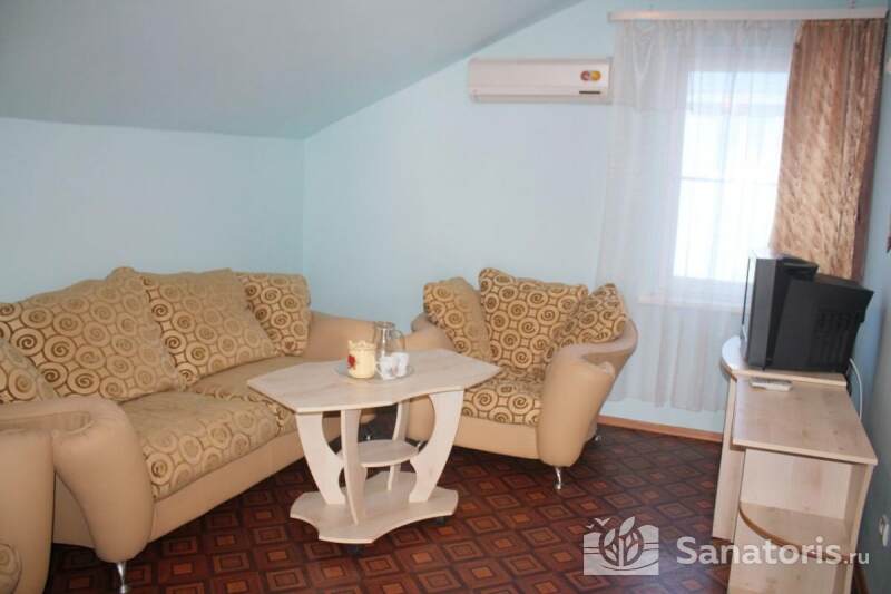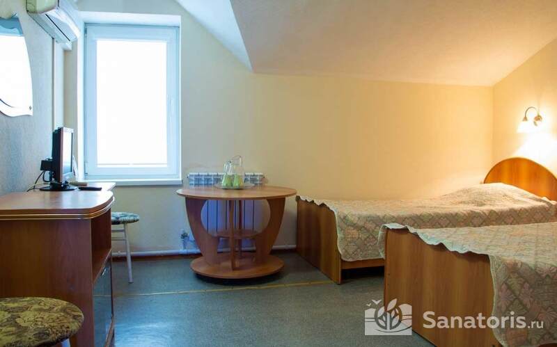 Проживание гостей осуществляется в шикарных апартаментах, которые идеально подходят для проживания семей с детьми, а так же романтических пар. В летний период санаторий открывает около ста комфортабельных апартаментов разной вместительности. Все они находятся в современных коттеджах, которые обустроены всего в ста метрах от песчаного пляжа. В каждом номере есть кондиционер, спутниковое телевидение, ванная комната, санузел и другие удобства для комфортного проживания. Спокойный интерьер и современная мебель сделают отдых максимально комфортным.