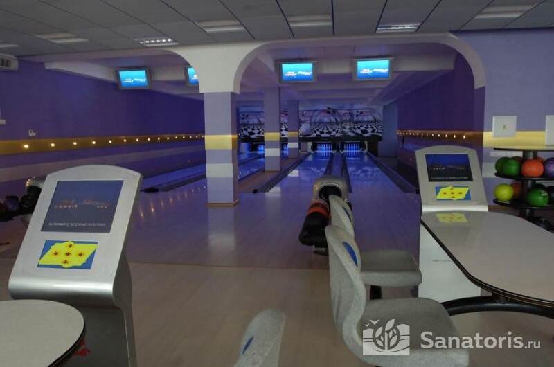 Для проведения досуга на территории санатория имеется развлекательный центр в шесть этажей. Здесь постояльцы смогут незабываемо отдохнуть и приятно провести время. В центре досуга имеется боулинг, бильярдная комната, шикарный ресторан, гостиная с камином, панорамный закрытый бассейн, комната для детей, зал с тренажерами, спа-салон, солярий.