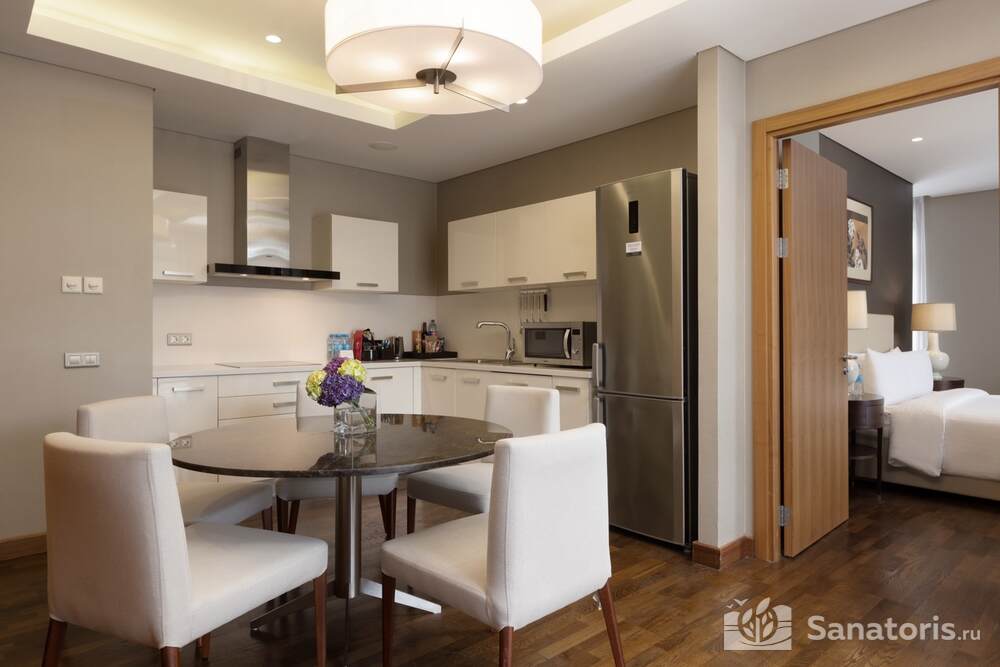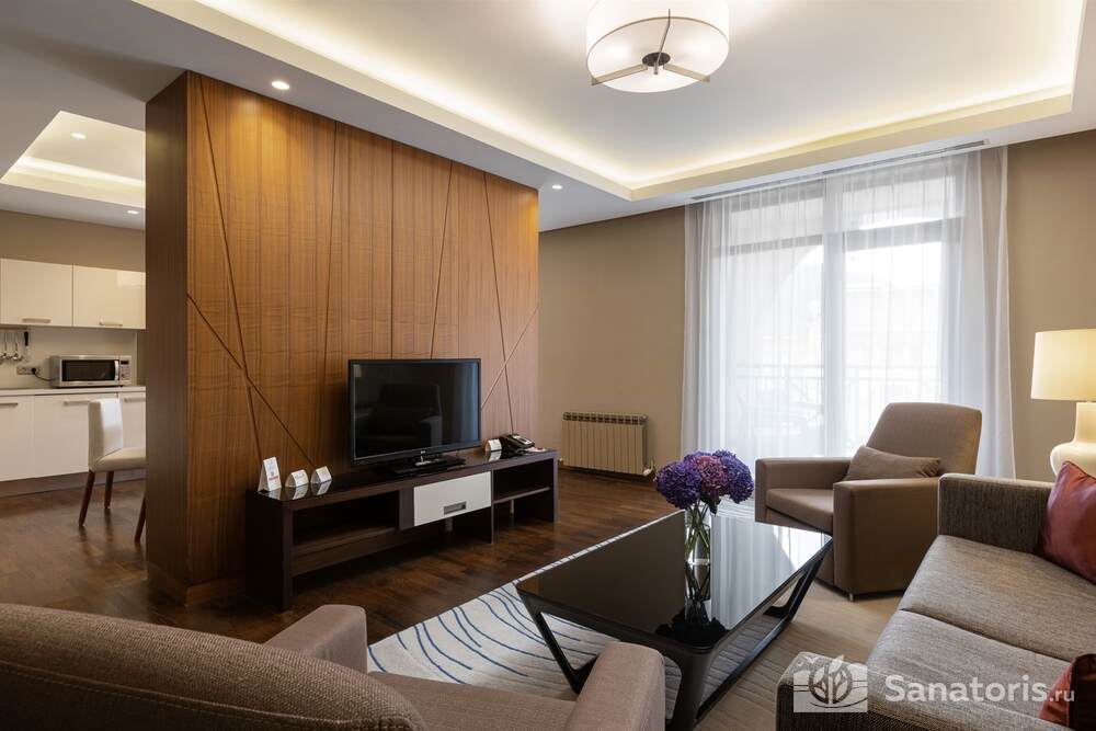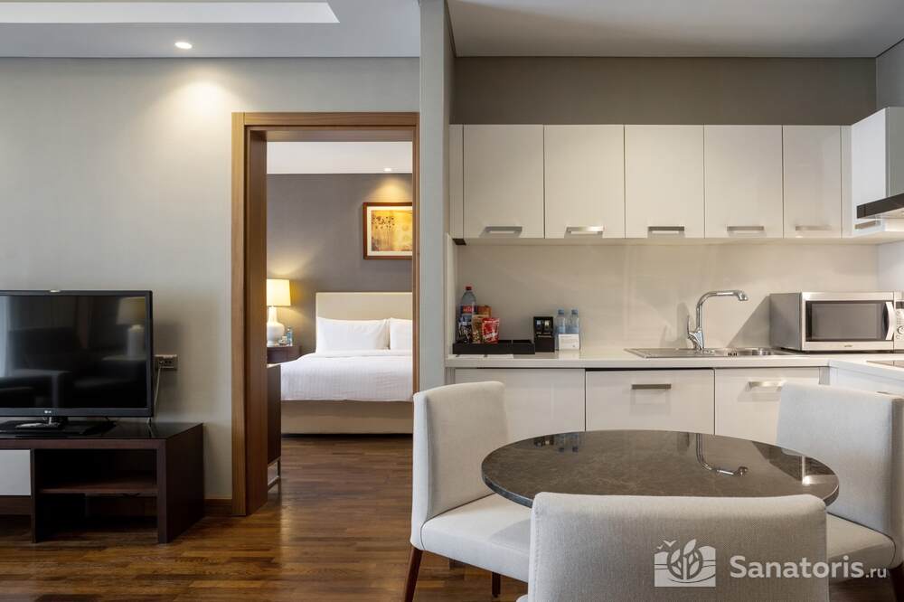 Просторные и светлые апартаменты отлично оснащены. Здесь есть все необходимые удобства. В каждом номере есть балкон с мебелью для отдыха. В ванной комнате туристов ждут мягкие халаты, удобные тапочки и косметические принадлежности.