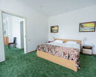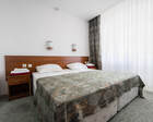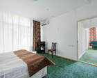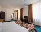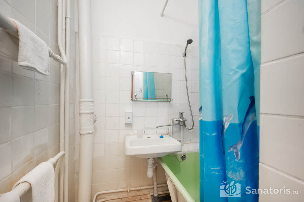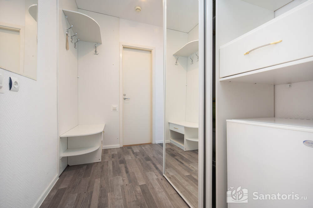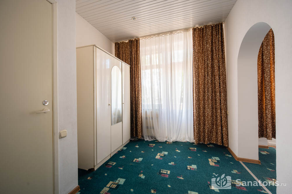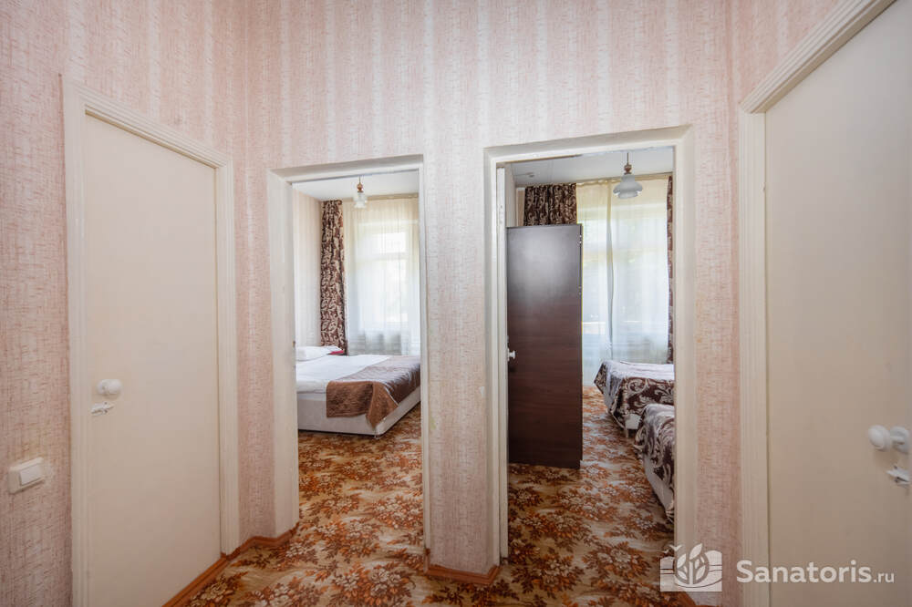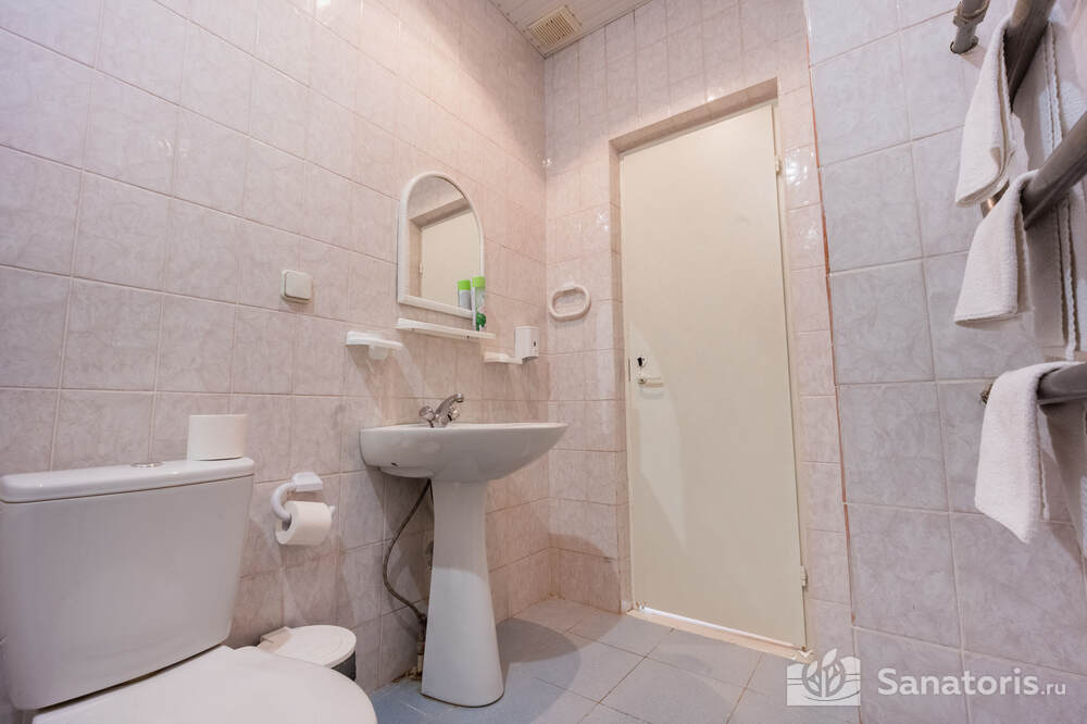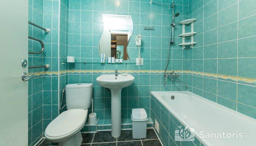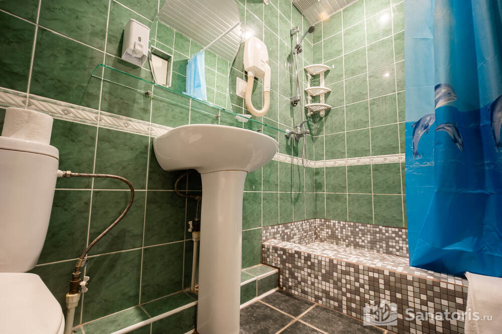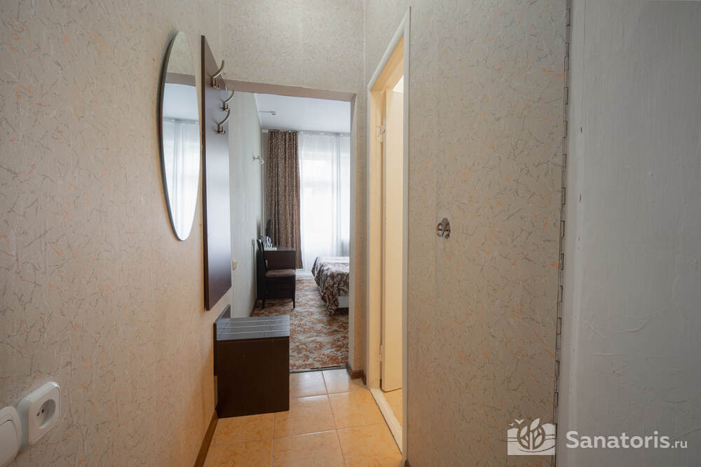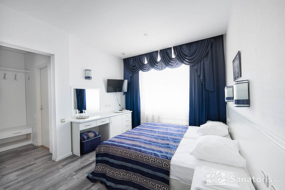 - Хорошо продуманная инфраструктура. Архитектурная часть санатория состоит из одного административного и двух жилых корпусов. На выбор посетителям представлены номера нескольких типов («люкса», «эконом» и пр.). В каждом из них предусмотрен санузел, душевая, ванная и полный набор бытовых приборов (телевизор, холодильник, кондиционер). На всей территории комплекса доступен бесплатный вай-фай.