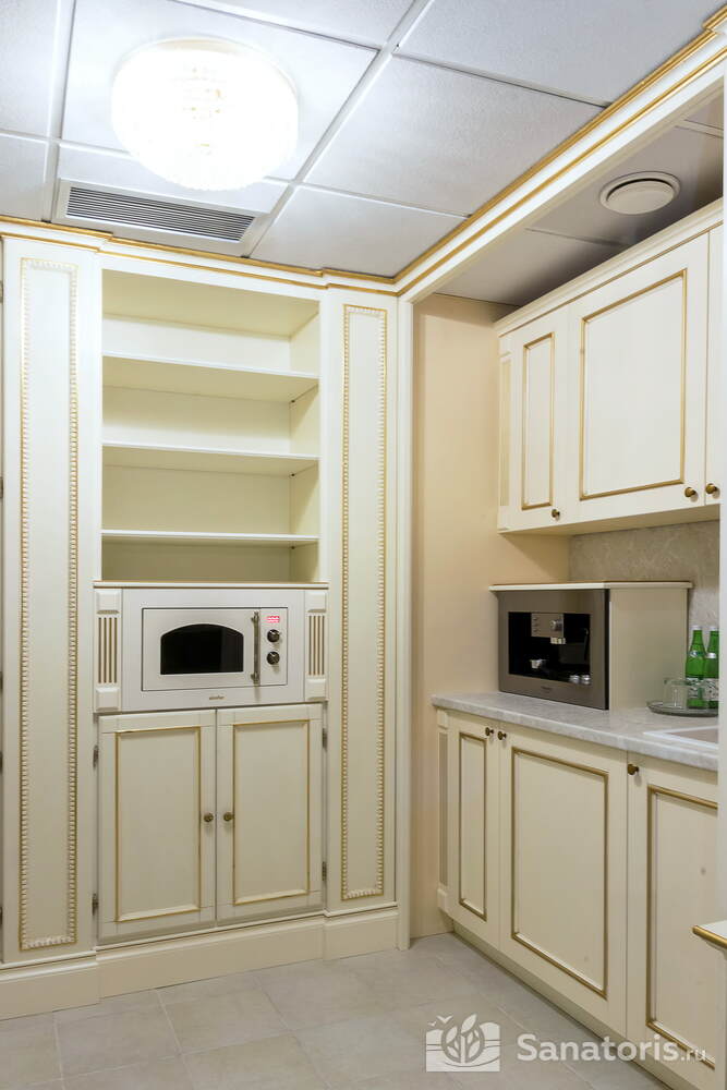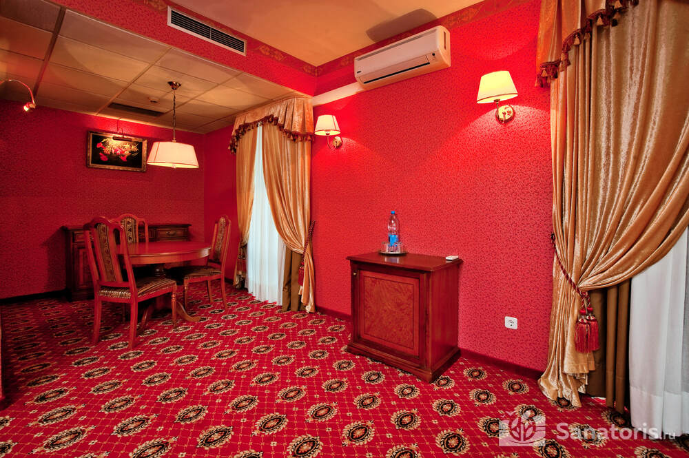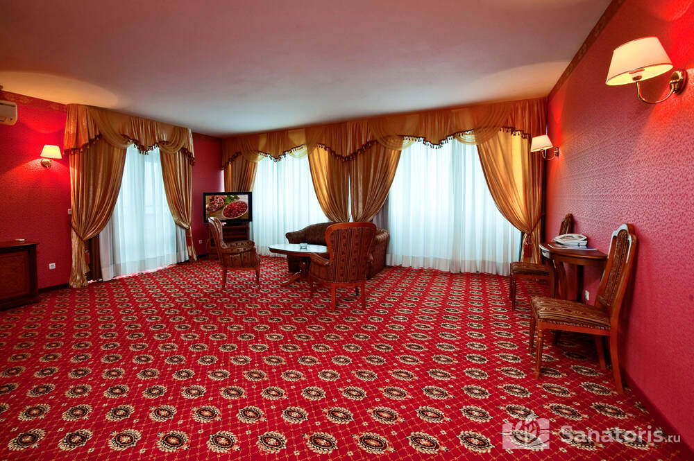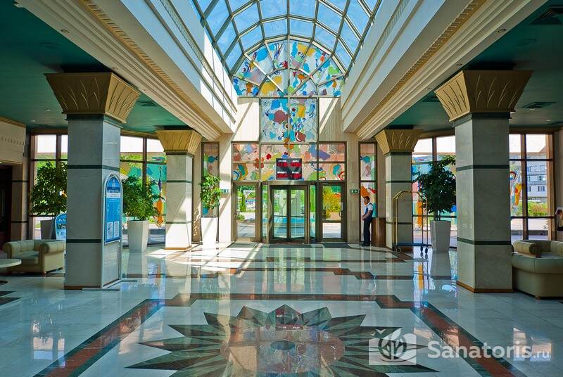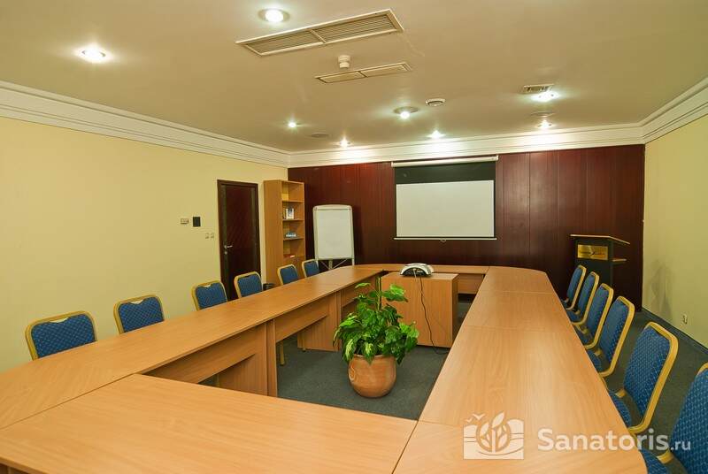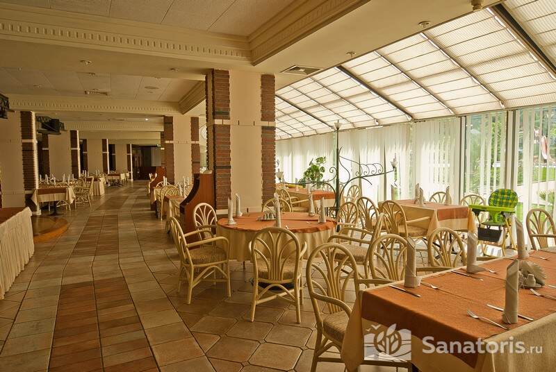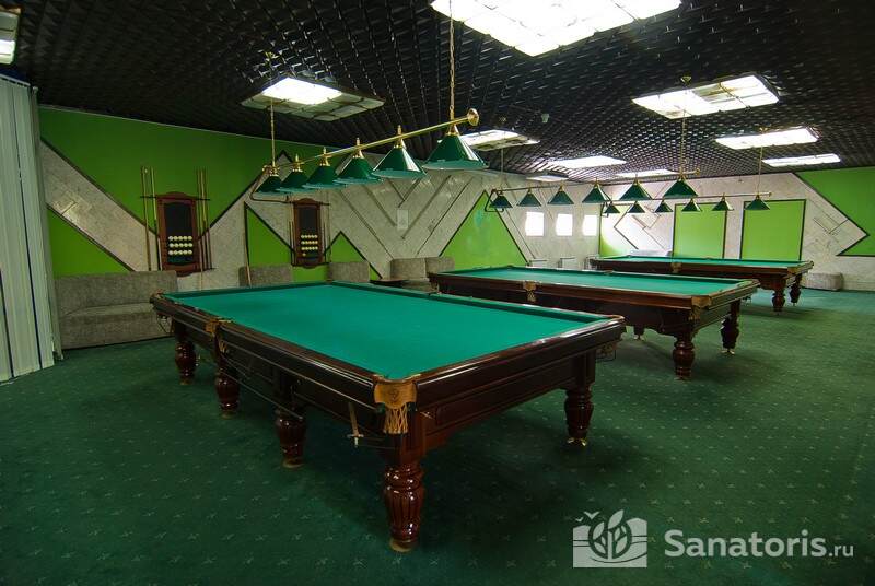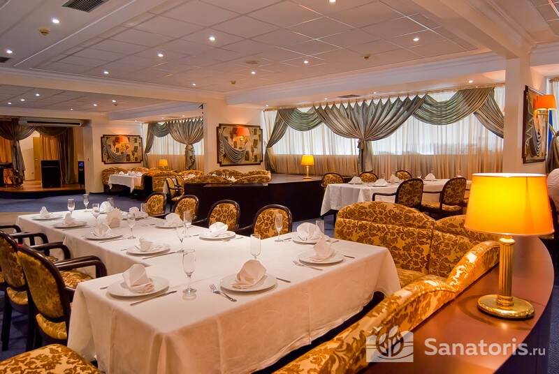 Отдельно стоит здание, где располагается три столовых зала. Причем один из них предлагает питание премиального сегмента, а еще один зал специализируется на диетических блюдах. А при необходимости желающие могут снять банкетный зал и провести здесь намечающееся торжество. В одном из крыльев столового корпуса находится зал для танцев и просмотра художественных фильмов.