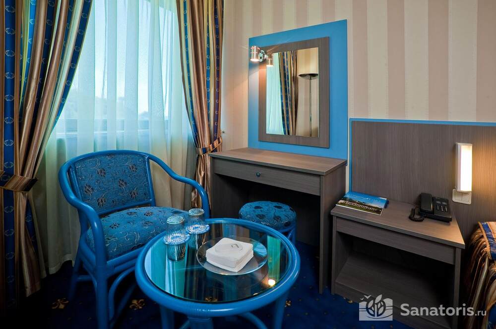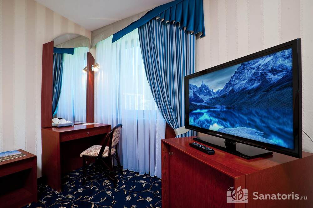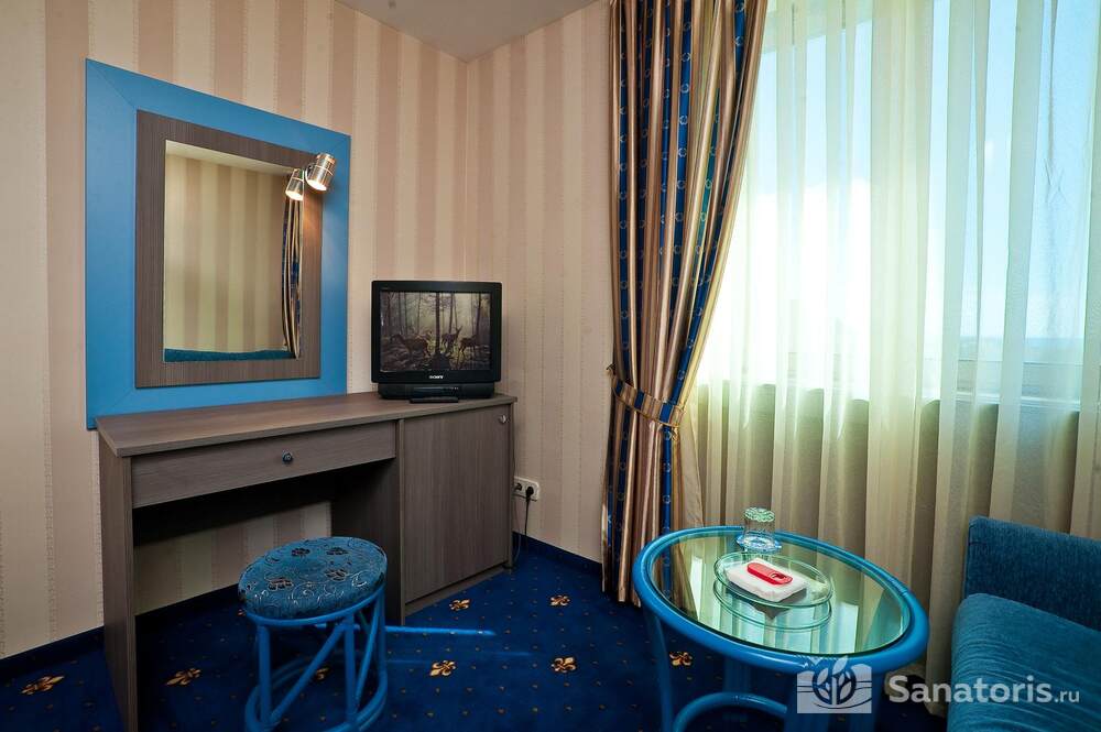 Номера санатория уютные и комфортные. В них есть все необходимое, чтобы отдых прошел по высшему класс. При этом имеется возможность подключения бесплатного интернета.