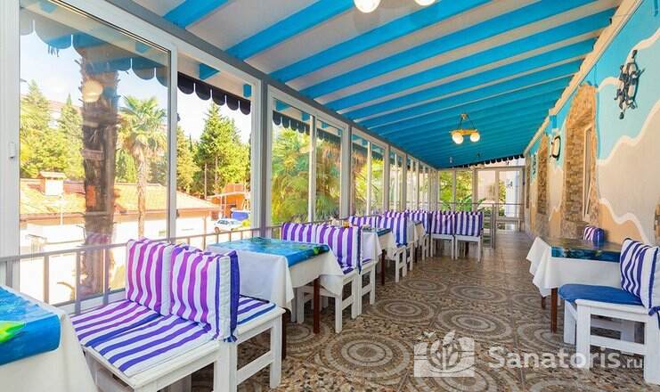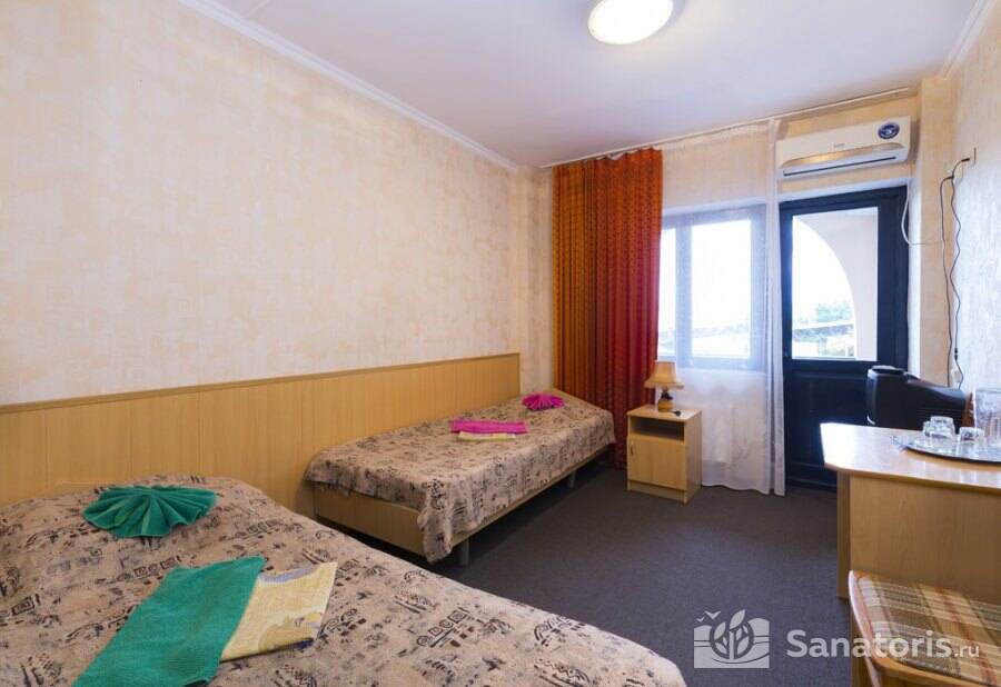 Комфортные номера выполнены в современном дизайне. В каждом из них есть качественная мебель, туалет, душевая кабина, сплит-система, спутниковое телевидение, холодильник, электрический чайник, посуда. Во всех апартаментах присутствует просторный балкон с мебелью. Гости отеля могут отдохнуть на балконе, полюбоваться горным и морским пейзажем, ухоженной территорией комплекса, которая утопает в зелени.