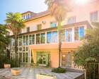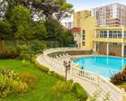 Неподалеку расположен галечный чистый пляж. Для удобства отдыхающих здесь есть все условия: шезлонги, навесы, туалеты, душ, кабинки для переодевания. На пляже работает множество кафе и баров. Можно арендовать лодку, катер или яхту. Пляжные аттракционы понравятся взрослым и детям.