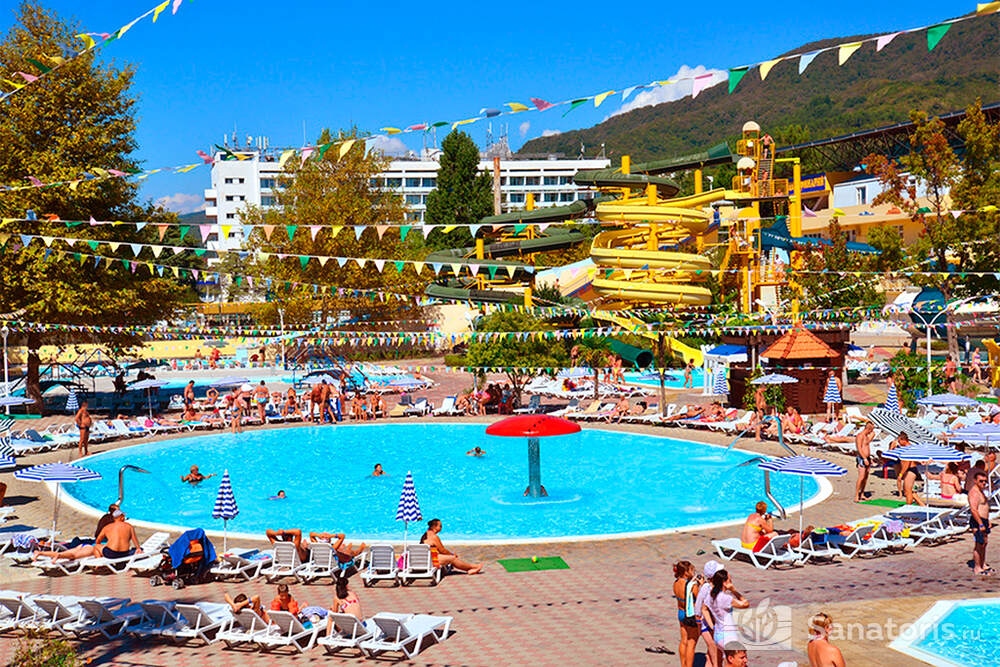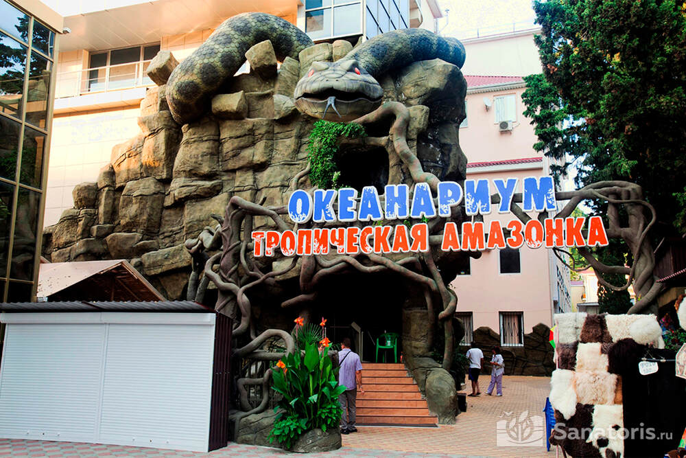 Особое внимание санаторий уделяет детскому досугу. Для юных туристов работает дельфинарий, аквапарк с огромным количеством водных развлечений. Так же есть надувные горки, прокат детских автомобилей и многое другое.