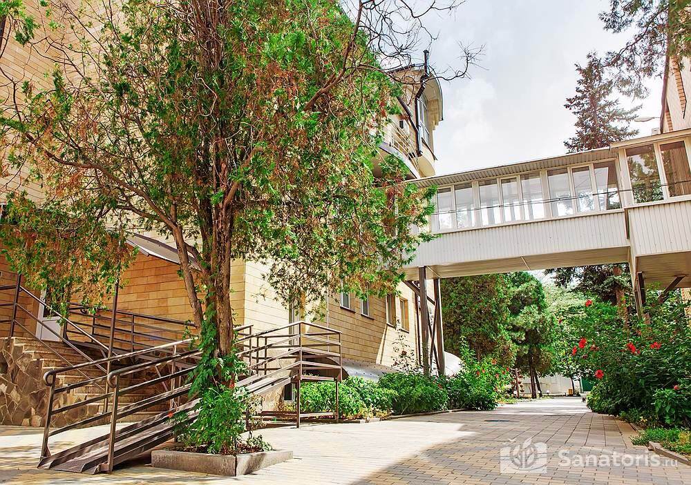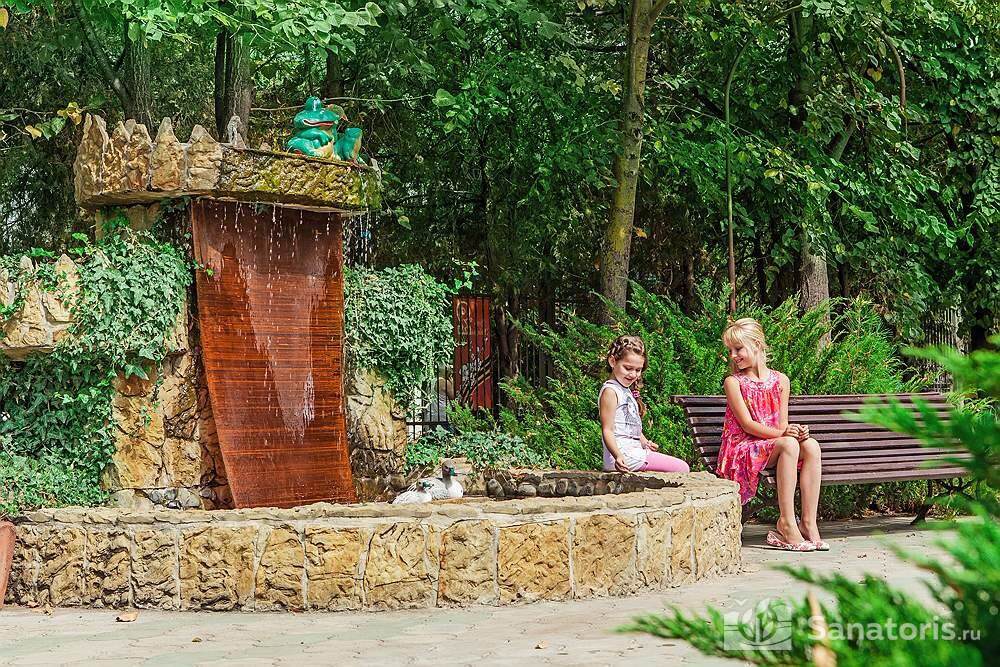 Здравница утопает в зелени. Здесь произрастает много декоративных деревьев, экзотических кустарников и цветов. На территории обустроены уникальные фонтаны, которые создают атмосферу спокойствия уюта.