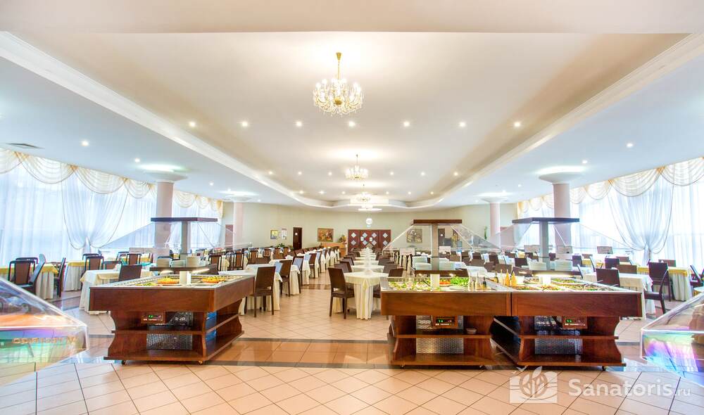 Чтобы лечебные процедуры были результативными, они дополняются правильным и полноценным питанием по системе шведского стола. Блюда готовятся с учетом рекомендаций медиков, все они диетические. Несмотря на это, еда сытная и вкусная. Если захочется, можно посетить травяной бар, где предложат интересные напитки.