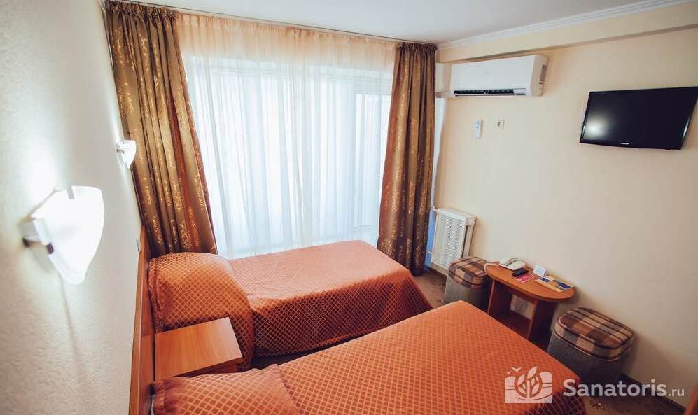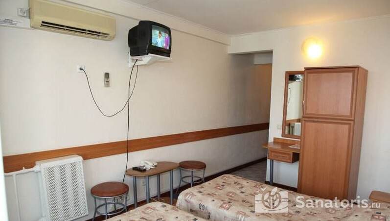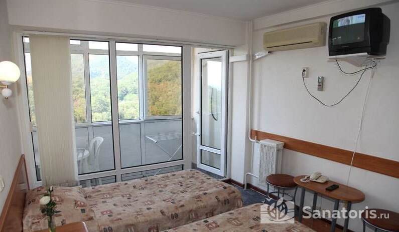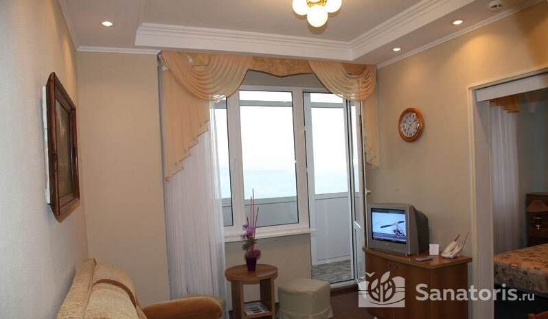 Жилые комнаты санатория с прекрасным видом на горы и морской берег предназначены для одного или двух человек. Также есть двухкомнатные номера и комнаты с повышенным комфортом. Популярностью в санатории пользуются семейные номера с двумя смежными спальнями. У каждого номера есть собственный балкон и кондиционер, также имеется холодильник и телевизор.