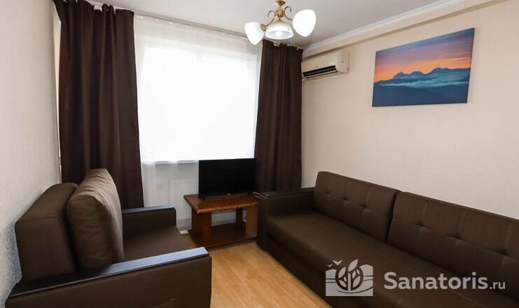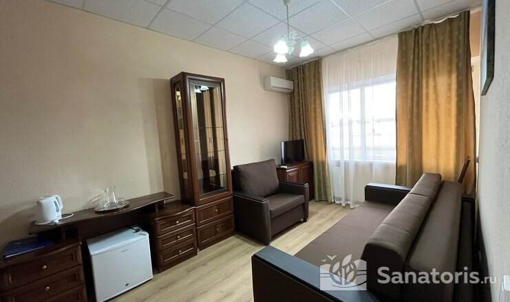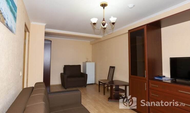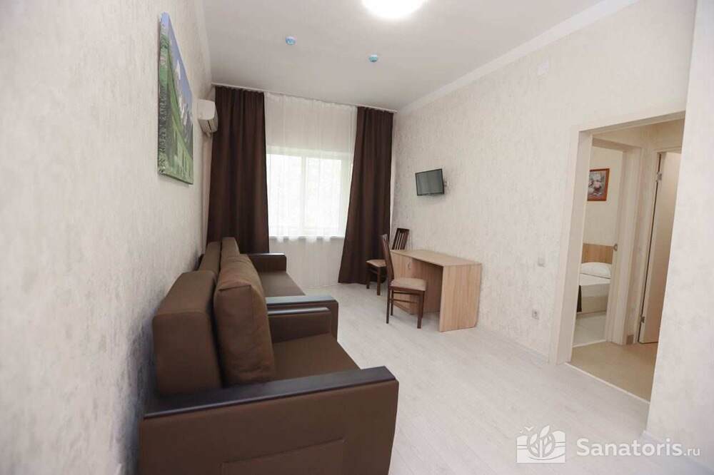 Одновременно санаторий может принять триста гостей. Для их проживания предусмотрены разные номера. Есть однокомнатные номера с удобствами на блок. Двухкомнатные апартаменты предусматривают наличие удобств прямо в номере. Во всех номерах присутствует сплит-система, холодильник и кабельное телевидение.