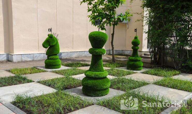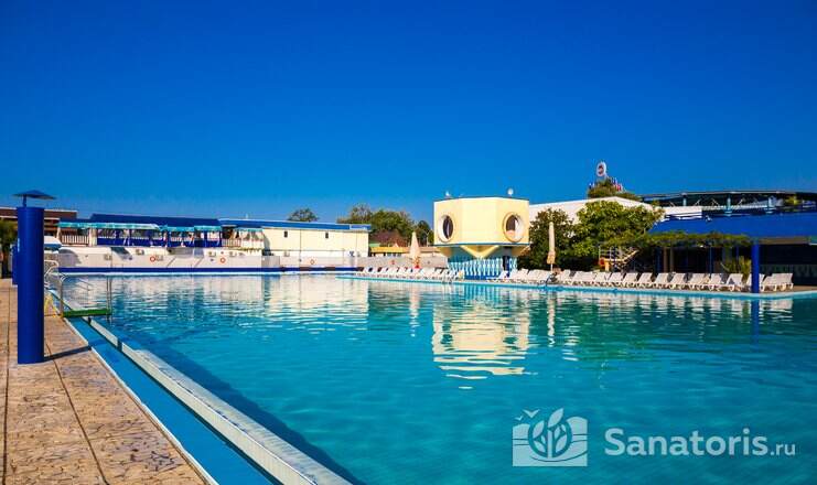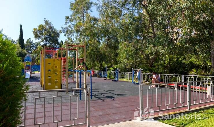 Изюминкой санатория является развитая детская инфраструктура. Здесь обустроены игровые городки, детские комнаты, аттракционы и батуты. Во взрослом бассейне предусмотрено отдельное место для детей. Разнообразные водные горки точно понравятся юным туристам.