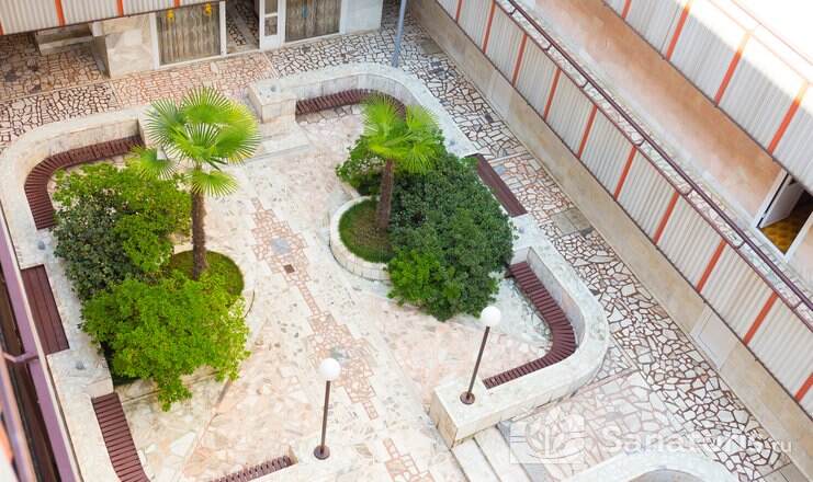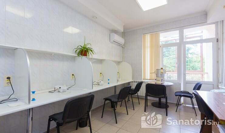 Пансионат располагает собственным медицинским корпусом. Здесь проводят аппаратный и ручной массаж, косметологические процедуры. Есть источник целебной воды.