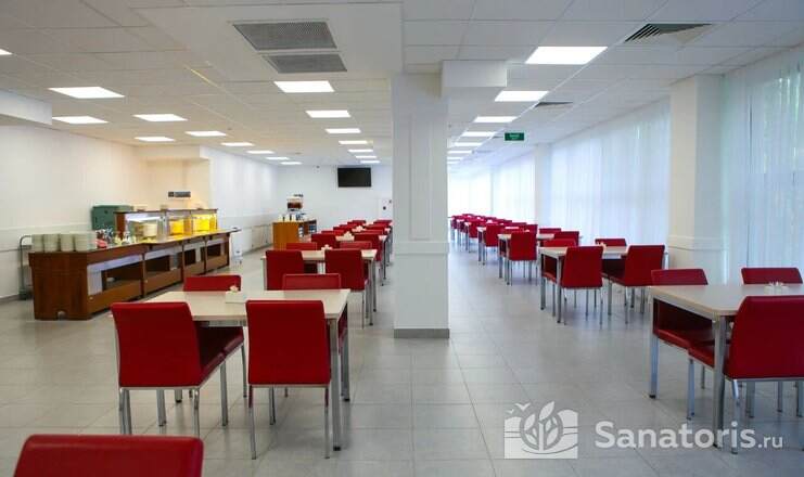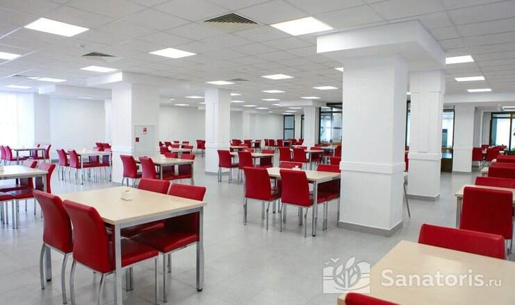 Пищевой блок находится в соседнем здании. Гостей обеспечивают комплексным питанием три раза в день.