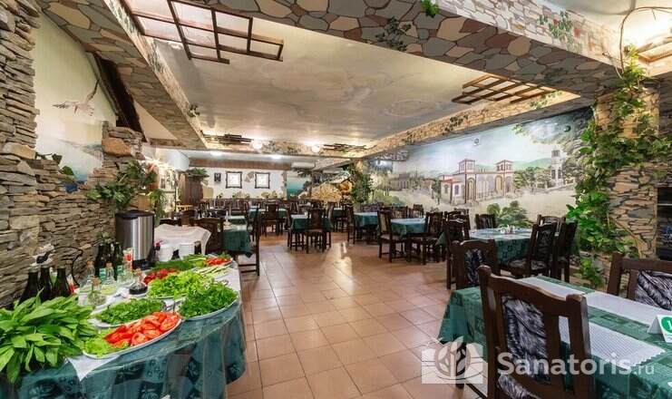 Питание осуществляется в пищевом блоке, где есть большой обеденный зал. Блюда заказывают по предоставленному меню. Дополнительно предоставляется детское питание.