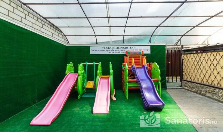 Для детей на свежем воздухе оборудована игровая зона с качелями и горками. В отеле есть детская комната, где за малышами следят опытные няни. Так же в наличии имеется большой выбор настольных игр.