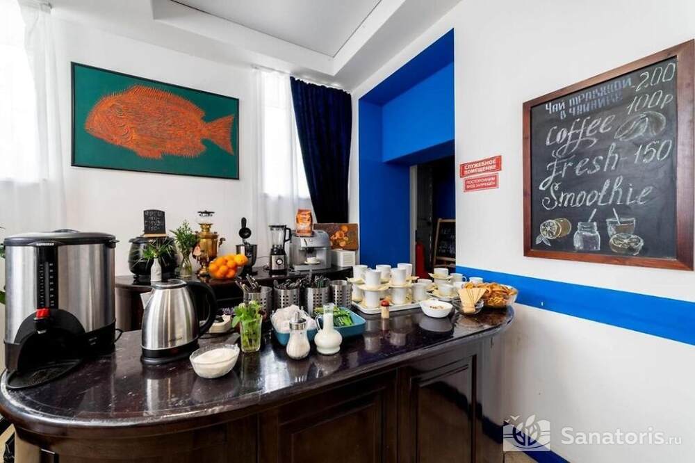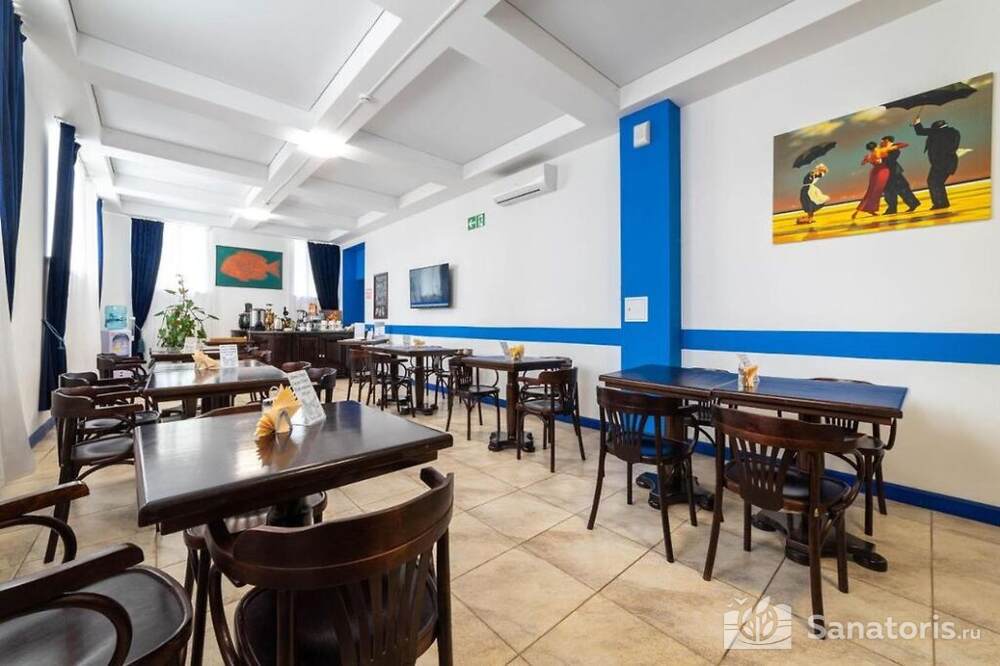 Непосредственно в отеле находится столовая. Но поесть в ней можно лишь во время, отведённое для приёма пищи.