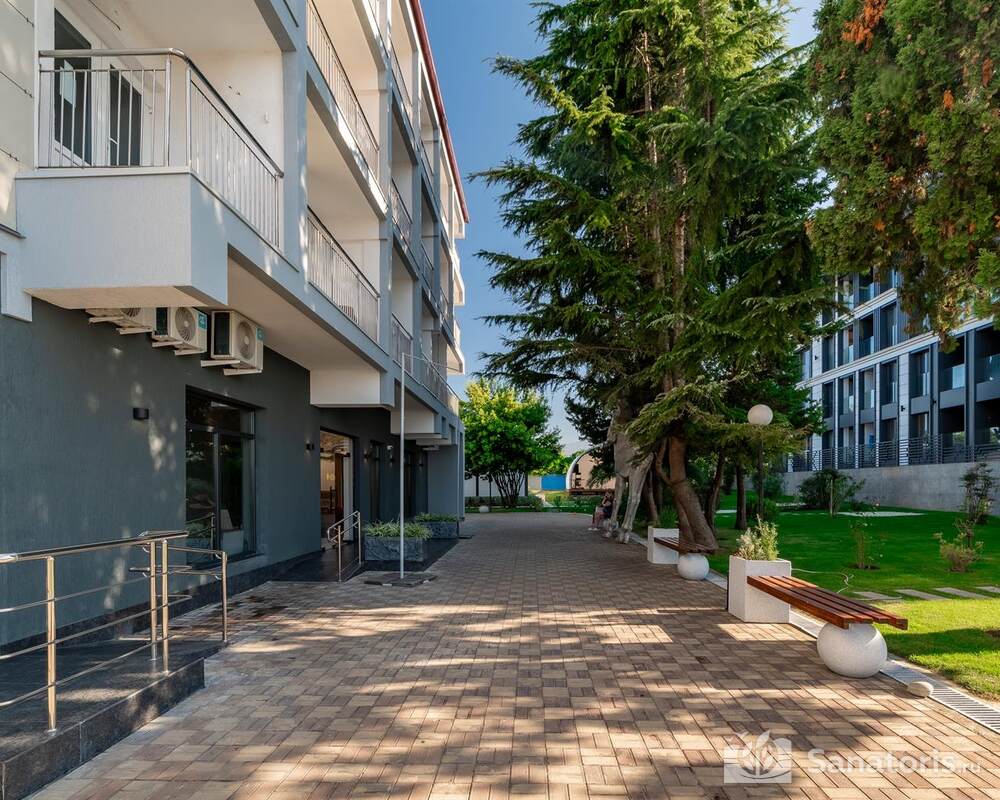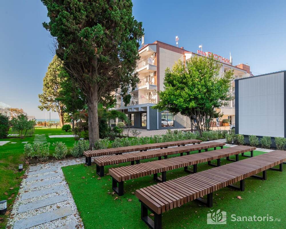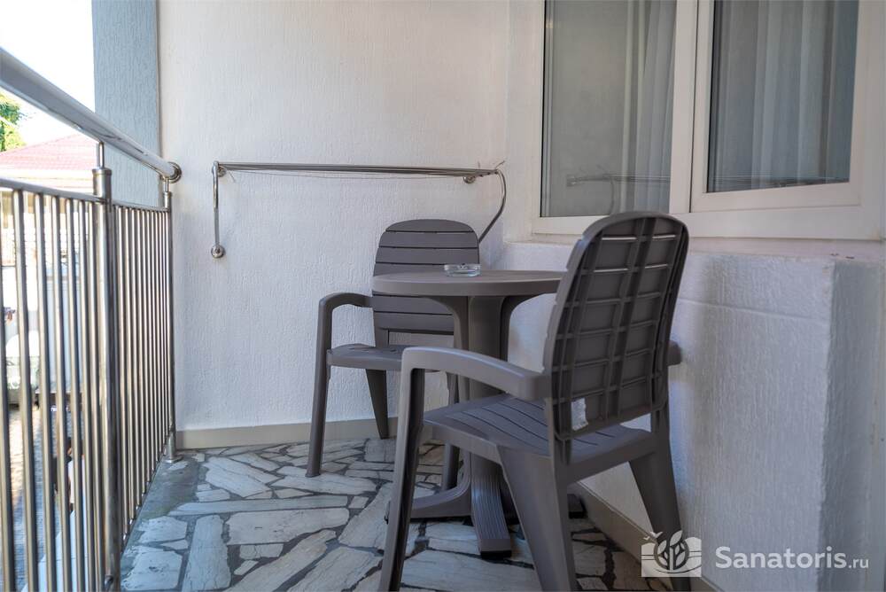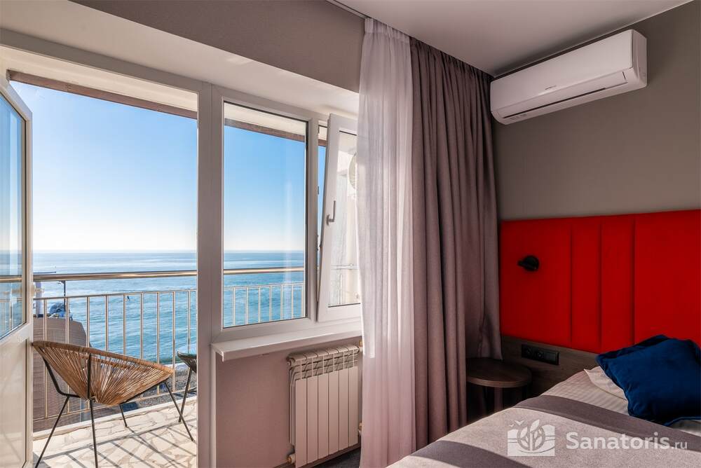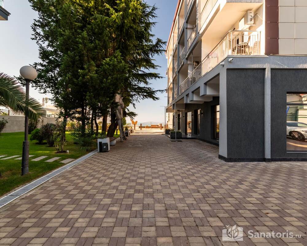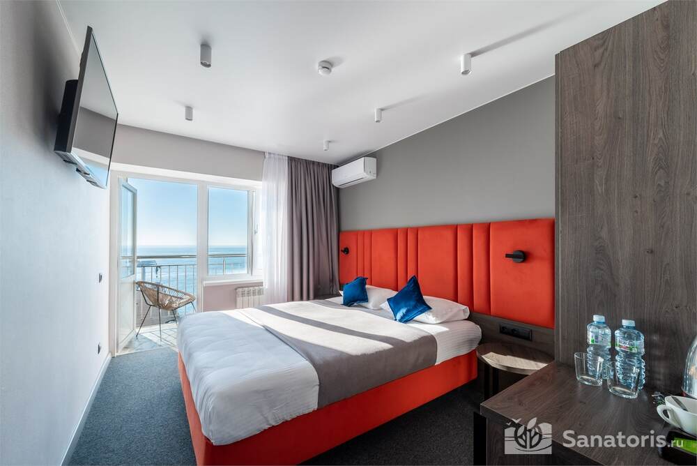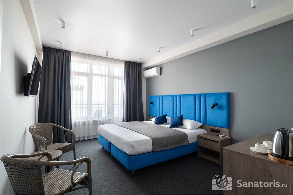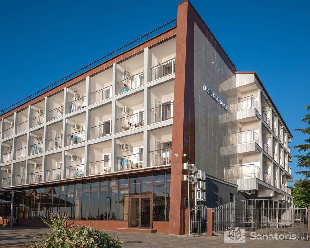 Гостиница состоит из 4 этажей. Она расположена на ухоженной территории, где произрастает много зелени. Одновременно в отеле могут проживать 150 гостей. Для этого предусмотрены апартаменты на любой вкус и кошелек. Кроме этого есть номера для маломобильных людей. Интерьер номеров выполнен в пастельных тонах. Имеются балконы, которые открывают живописную морскую панораму.